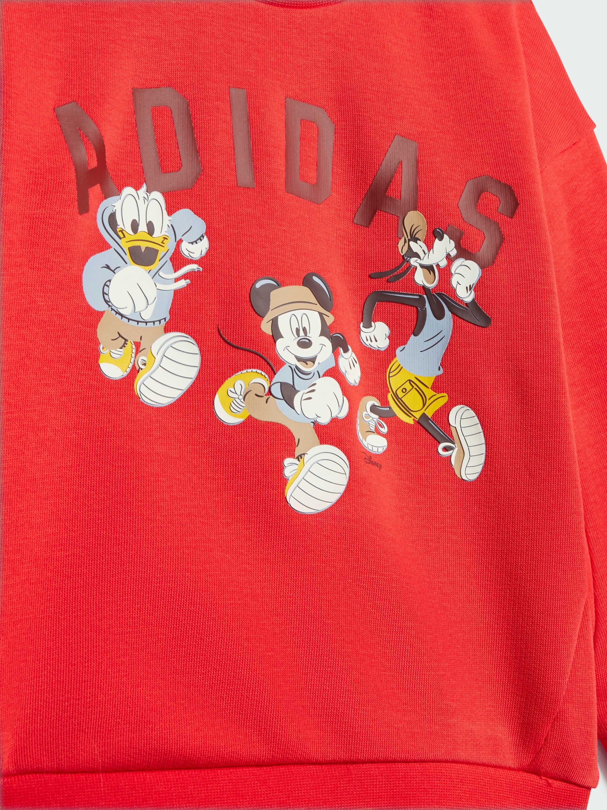 Характеристики 77% хлопок, 23% переработанный полиэстер @Disney Рифленый круглый вырез горловины Стандартный крой Толстовка: Рифленые манжеты и подол Описание Микки Маус и его друзья любят приключения, и твой малыш тоже. Этот комплект из джоггеров и свитшота от adidas идеально подходит для совместных приключений. Мягкий материал френч-терри дарит уют и комфорт на весь день.