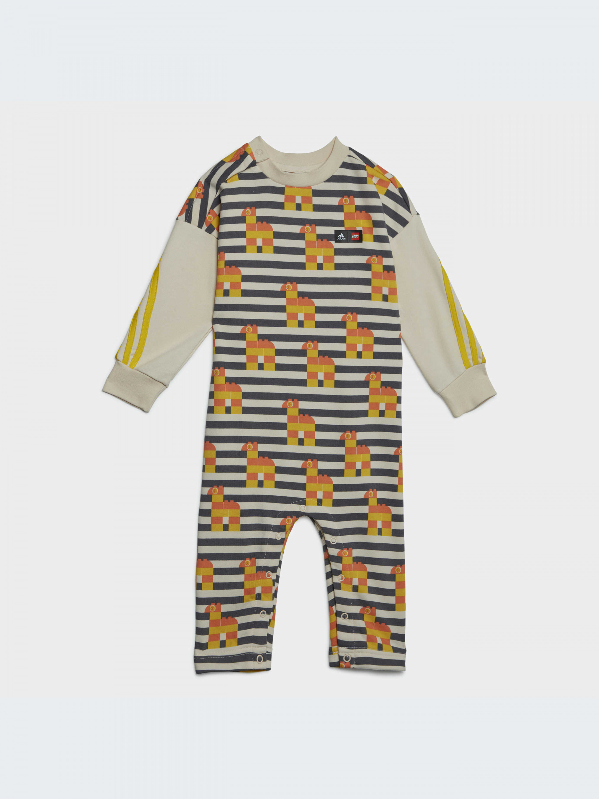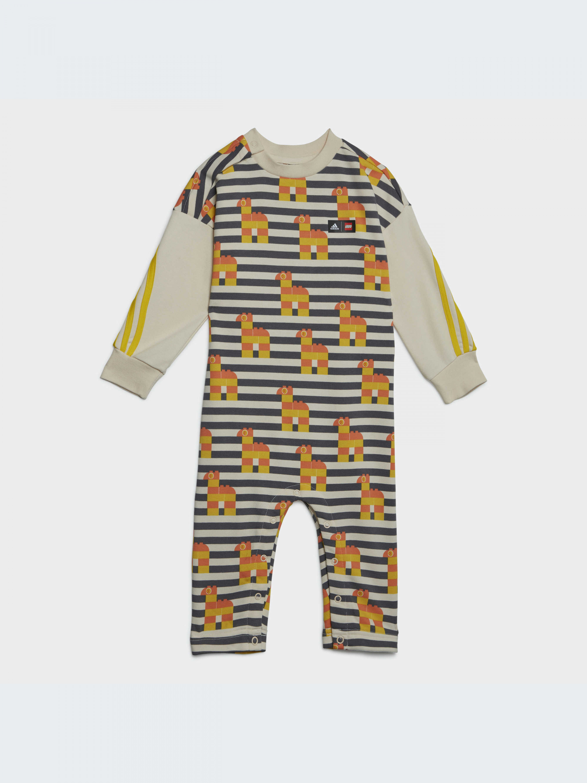 Животные LEGO® весело маршируют по этому комбинезону. Как только они начнут ходить, твой малыш последует их примеру, двигаясь с полной свободой. Этот комбинезон adidas для малышей можно носить как с обувью, так и босиком, в зависимости от того, чем ты будешь заниматься в течение дня. Он изготовлен из хлопка и полиэстера, что делает его мягким на ощупь. Застежки на кнопках вдоль ножек позволяют быстро и без лишних хлопот сменить подгузник.