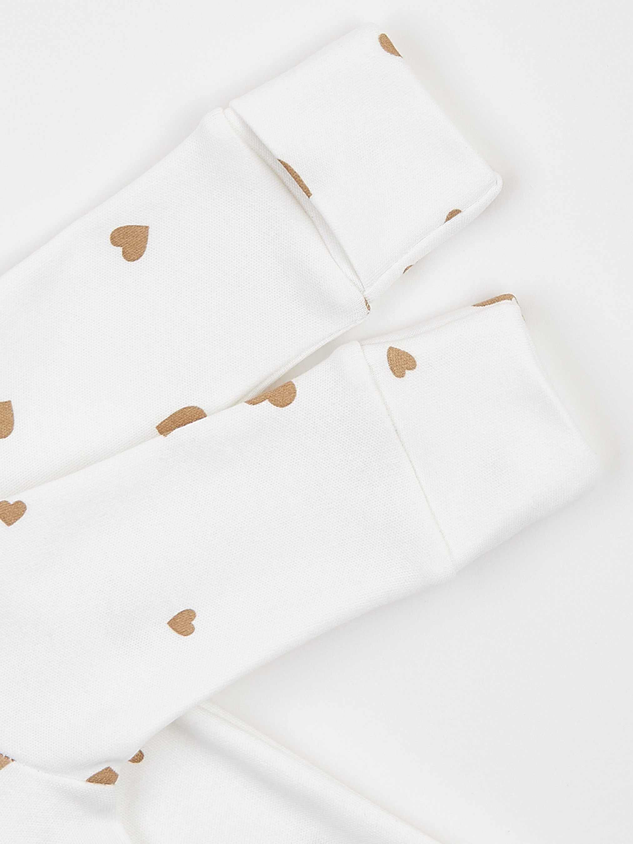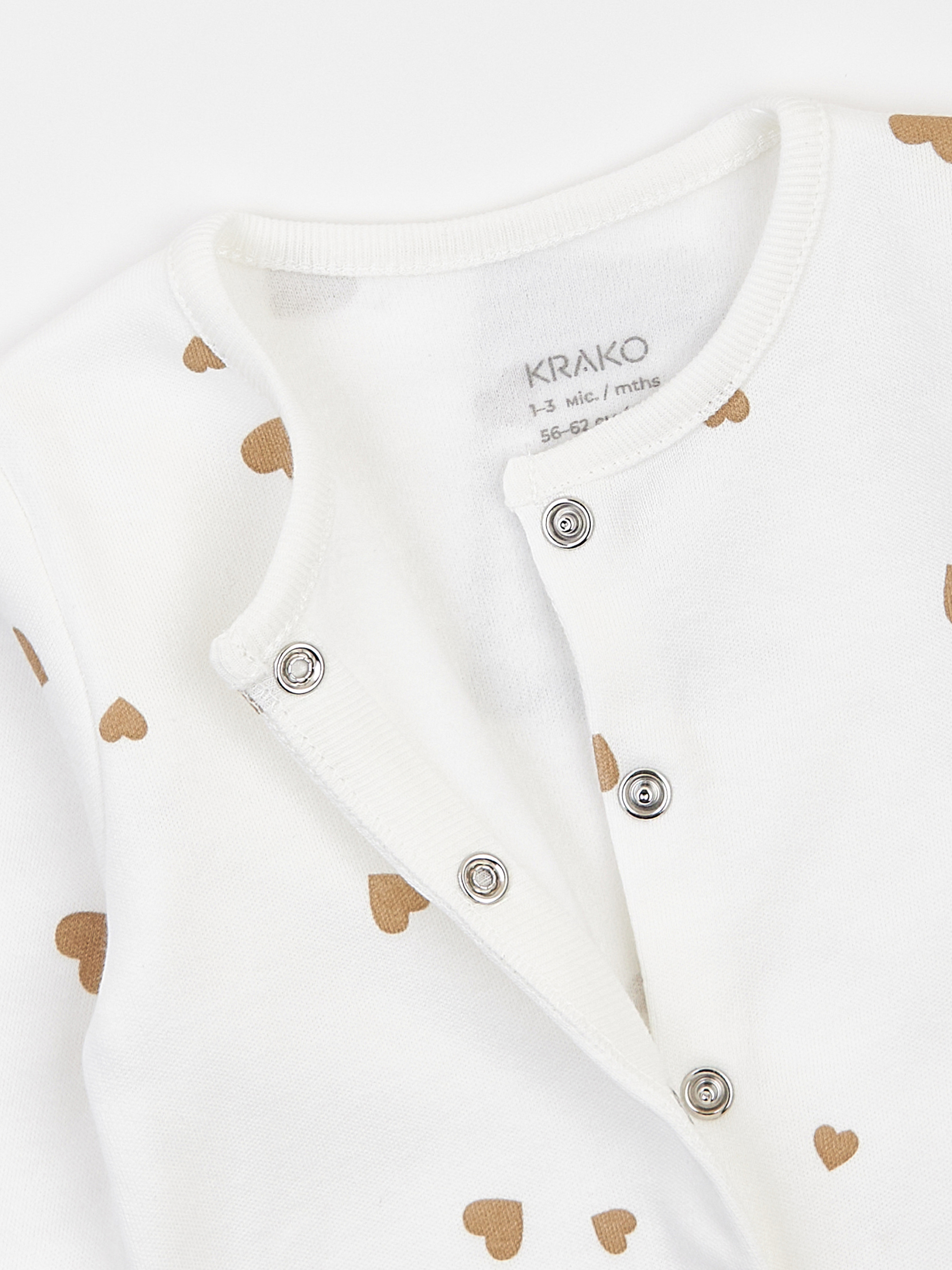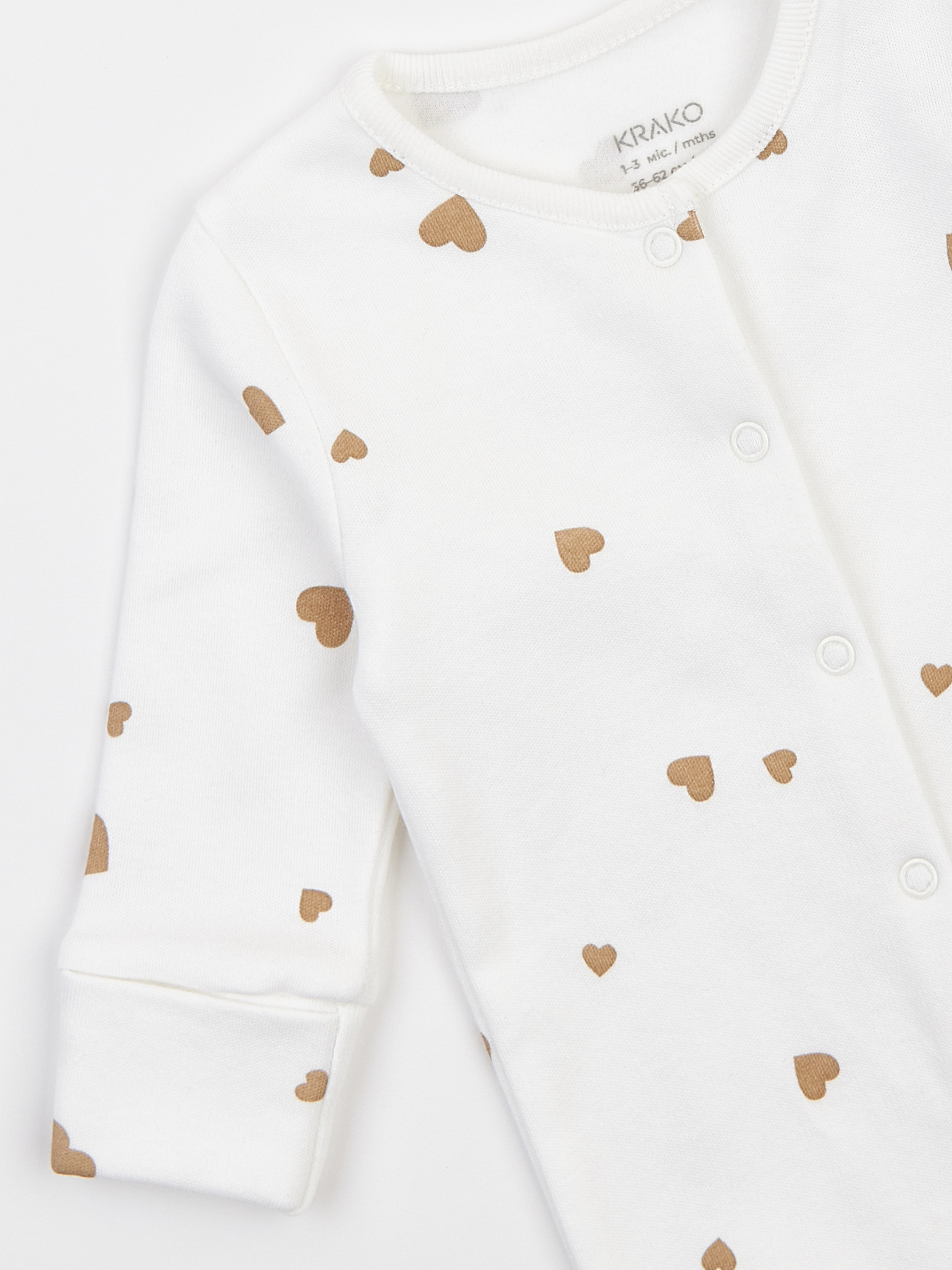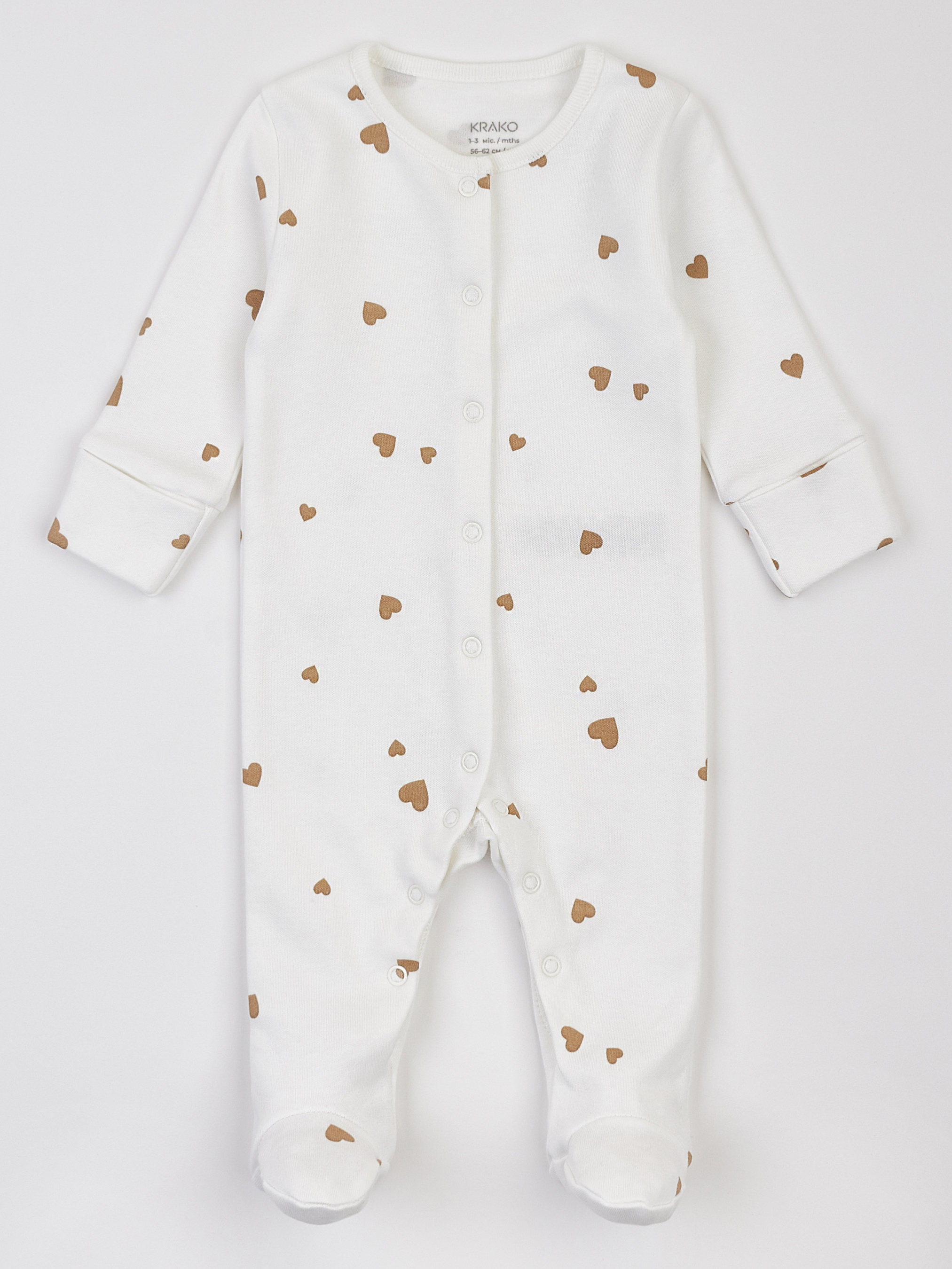 Молочный утеплённый человечек для новорождённых с принтом «Бежевые сердечки» Молочный детский человечек с сердечками создан для уюта и тепла в прохладные дни. Лёгкий начёс с внутренней стороны делает ткань приятной к телу, мягко окутывает малыша и помогает поддерживать комфортную температуру во время сна и отдыха. Человечек для новорождённых 0–1 мес. имеет внешние швы и плоский плечевой шов без утолщений, чтобы сверхчувствительная кожа ребёнка была надёжно защищена от раздражений. Сертифицированный европейский 100% хлопок с лёгким начёсом сочетает тепло, мягкость и безопасность, не вызывает аллергий и подходит детям с повышенной чувствительностью. Удобный крой: утеплённый человечек застёгивается на безникелевые кнопки, что упрощает смену подгузника и переодевание. В моделях до 3 месяцев предусмотрены отворотные манжеты-«царапки» для защиты ручек от царапин. Идеален для прохладных дней: удерживает тепло, позволяет коже дышать и обеспечивает комфорт днём и ночью. Безопасные материалы: все ткани соответствуют международному стандарту OEKO-TEX Standard 100®.