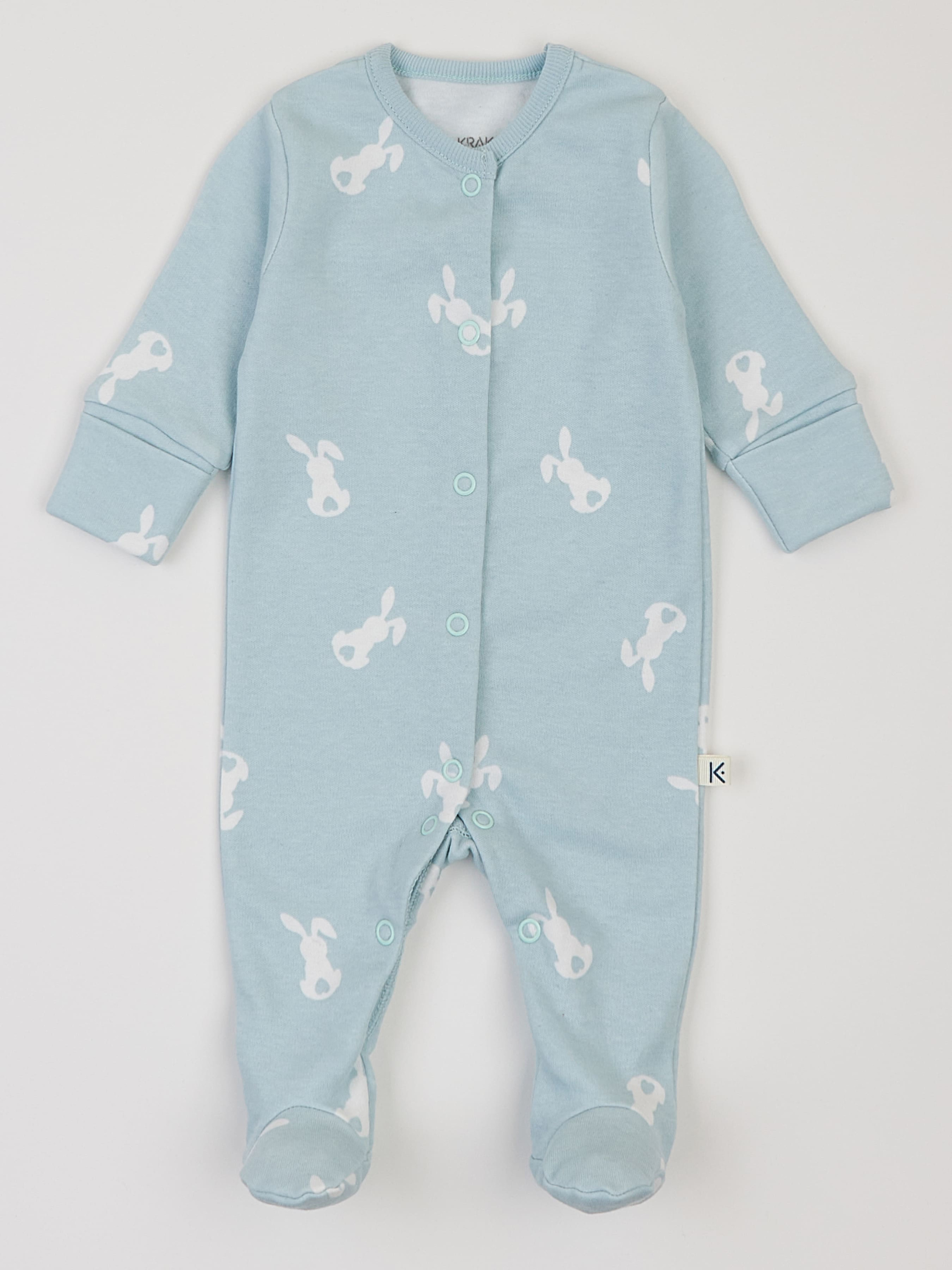 Утепленный человечек KRAKO – это про тепло, комфорт и практичность в прохладные дни. Чтобы ваш малыш чувствовал себя тепло и уютно даже в прохладные дни и ночи, комбинезон имеет легкий начес с внутренней стороны ткани. Это делает его не только чрезвычайно мягким на ощупь, но и помогает сохранять тепло, обеспечивая ребенку комфортный и спокойный сон. Комбинезон имеет удобно расположенные кнопки вдоль всего изделия, что облегчает переодевание и замену подгузника. Это позволяет быстро справляться с ежедневными потребностями малыша, не причиняя ему лишнего дискомфорта. Человечки для детей до 3 месяцев оснащены манжетами с “царапками”, что позволяет закрывать ручки малыша и предотвращать случайные царапины. Ментоловый цвет с милым принтом зайчиков подходит как для мальчиков, так и для девочек, добавляя образу особого очарования. 100% европейский хлопок сертифицирован по стандарту OEKO-TEX Standard 100® - гарантирует безопасность и гипоаллергенность.