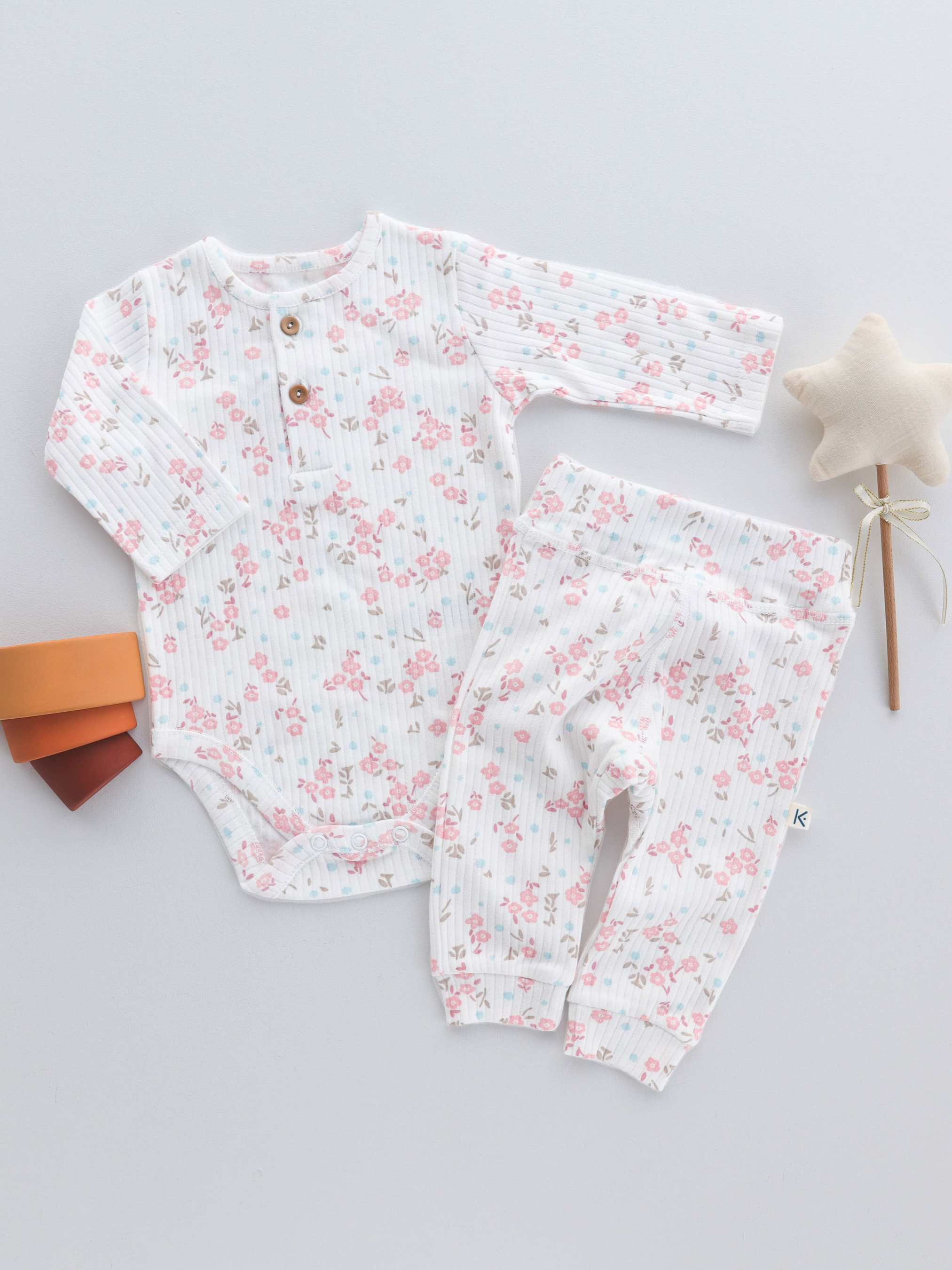 Этот комплект — воплощение нежности, комфорта и стиля. Идеально подходит для первых фотосессий, праздничных моментов и на каждый день. Белый фон с розовыми цветочными акцентами смотрится очень эстетично как вживую, так и на фото. В набор входят бодик и штанишки, которые обеспечивают комфортную посадку и свободу движений вашему малышу. Изготовлен из сертифицированного европейского хлопка OEKO TEX Standard 100® — мягкого, дышащего и безопасного для нежной детской кожи. Каждая деталь продумана: Мягкая фактурная ткань выглядит нарядно Гипоаллергенные пуговицы без никеля из Германии — для безопасности и удобства Фирменная хлопковая бирка — элегантный акцент Этот комплект обязательно станет любимым в гардеробе вашего малыша Сертификат OEKO TEX Standard 100; Фурнитура: безникелевая (Германия); Вид ткани: интерлок; Состав: 100% хлопок; Цвет основной ткани: белый Принт: розовые цветы