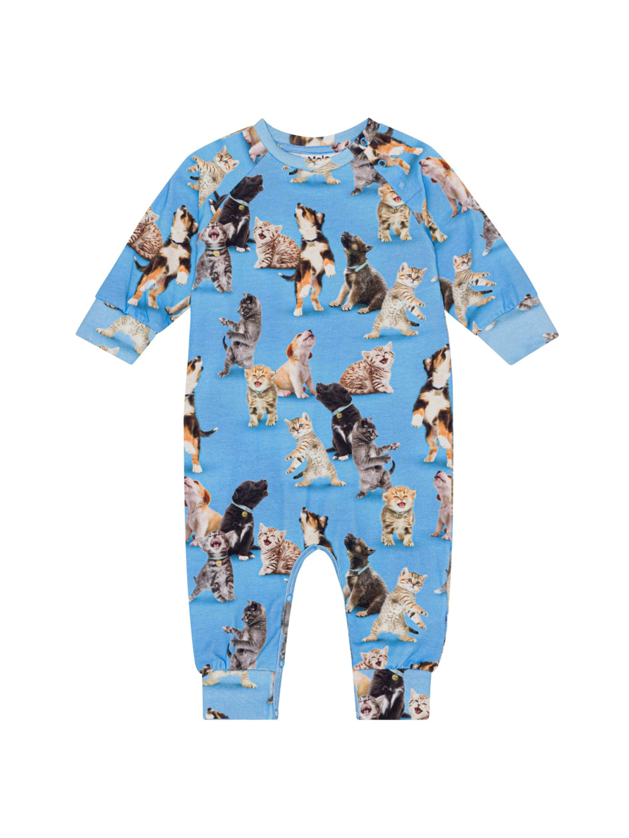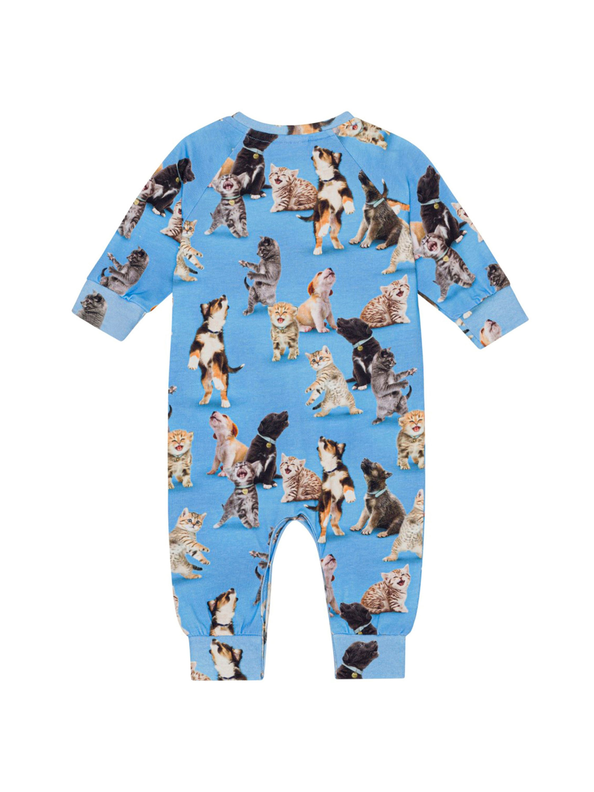 Комбинезон Molo "Fairfax Joy of Music". Особенности: материал – organic cotton*; декорировано милым принтом в виде щенков и котят; эластичные манжеты на рукавах и по низу; на одном плече застежки – кнопки; кнопки внизу для быстрого переодевания и смены подгузника; сертифицировано GOTS**. *Organic cotton (органический хлопок) – хлопок, выращиваемый без использования вредных химикатов и губительного воздействия на природные ресурсы планеты. **Сертификация GOTS гарантирует, что продукт не содержит опасных химикатов (сертификат GOTS Ecocert Greenlife, №197496). Продукция производится в соответствии с самыми строгими социальными и экологическими стандартами на протяжении всего процесса производст