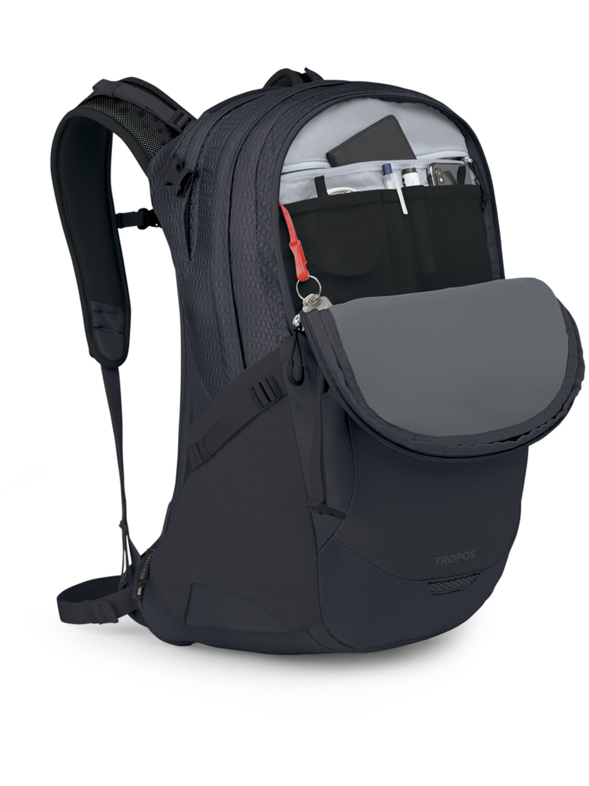 Osprey Tropos – первоклассный универсальный рюкзак, разработанный специально для повседневного использования. Вентилируемая задняя панель AirSpeed с подвесной сеткой обеспечивает максимальный комфорт при ношении даже в жару. Изготовлен из переработанных материалов, эко-френдли. Модель оснащена мягким отделением для ноутбука с прямым доступом на молнии, чтобы ваши гаджеты оставались всегда под рукой, а также интегрированной подставкой Kickstand, благодаря которой рюкзак постоянно сохраняет вертикальное положение. Кроме того, подставка исключает самопроизвольный переброс рюкзака, что помогает защитить его содержимое. Фронтальное отделение-органайзер, передний вертикальный карман на молнии и боковые сетчатые карманы гарантируют удобную организацию личных вещей и быстрый доступ к ним. Применение: повседневное использование в городе, офис, университет. Особенности: - вместительный и функциональный - задняя панель с подвесной сеткой AirSpeed для эффективной вентиляции и комфорта. - из переработанных материалов, эко-френдли - мягкие плечевые лямки - мягкое, защищенное от ударов отделение для ноутбука (до 17 дюймов) с прямым доступом на молнии - карман со специальной подкладкой для хранения очков и гаджетов без риска повреждения - карман-органайзер на передней панели - фронтальный вертикальный карман на молнии - эластичные боковые карманы из сетки - точка крепления фонарика - интегрированная подставка Kickstand, сохраняет рюкзак в вертикальном положении и обеспечивает легкий доступ - сигнальный свисток на грудной стяжке - съемный бедренный пояс - карман с карабином для ключей Технические характеристики: Материал: bluesign approved 210D recycled honey comb contrast nylon, PFC/PFAS-free DWR Объем: 32 л Вес: 1,29 кг Максимальные размеры: 54x32x28 см Диагональ ноутбука: 17''