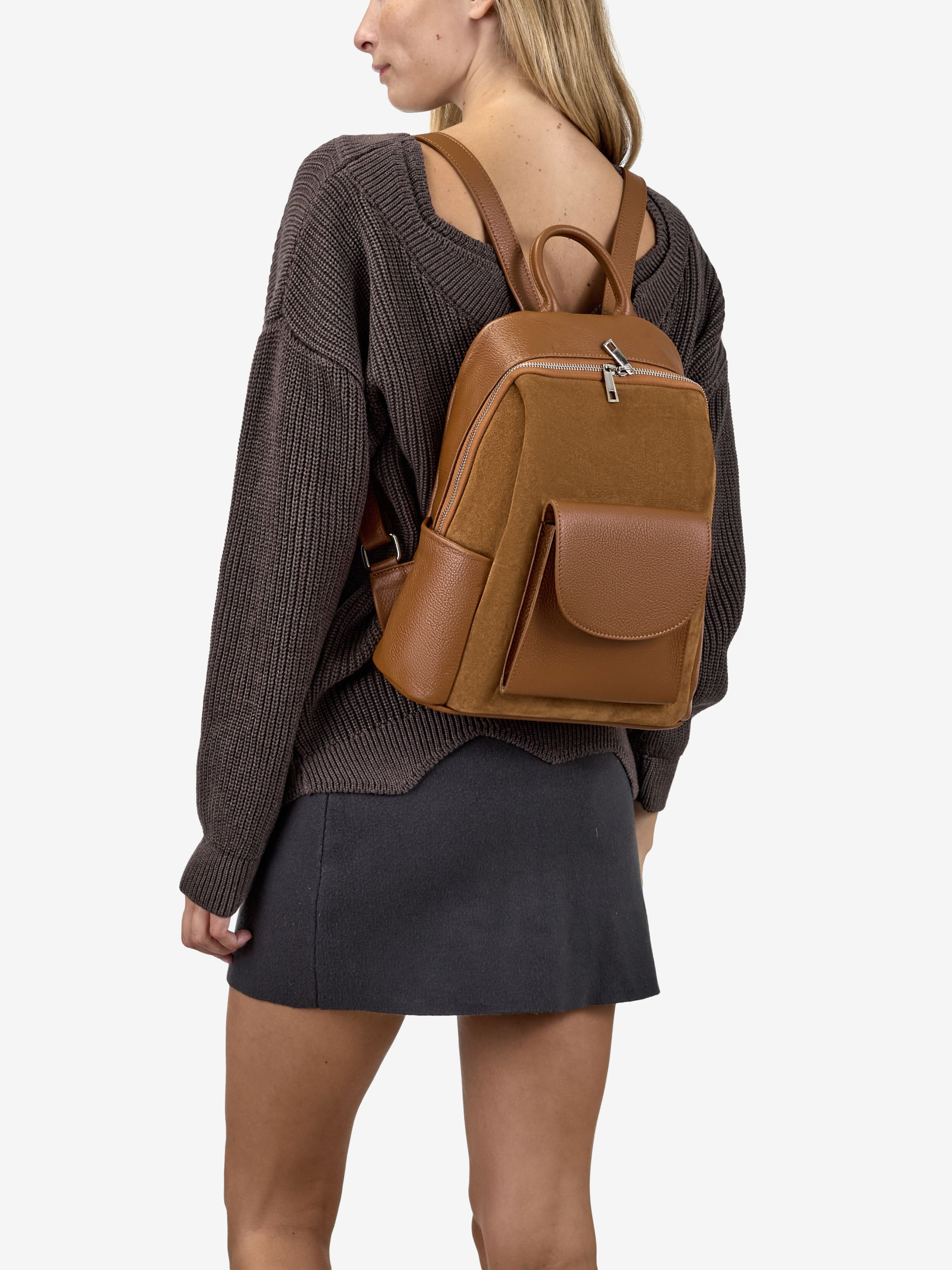 Детали: Материал: 100% натуральная замша, натуральная кожа флотар Фурнитура золотистого цвета Размеры (Ш x В x Г) - 34 x 30 x 12 см Внутри 1 отделение и карманчик на молнии для мелочей Спереди карманчик под клапаном на магните. По бокам два карманчики без застежки. Сзади на спинке карманчик на молнии. Подкладка: хлопок Застежка: клапан на магните, молния Высота ручек 8 см