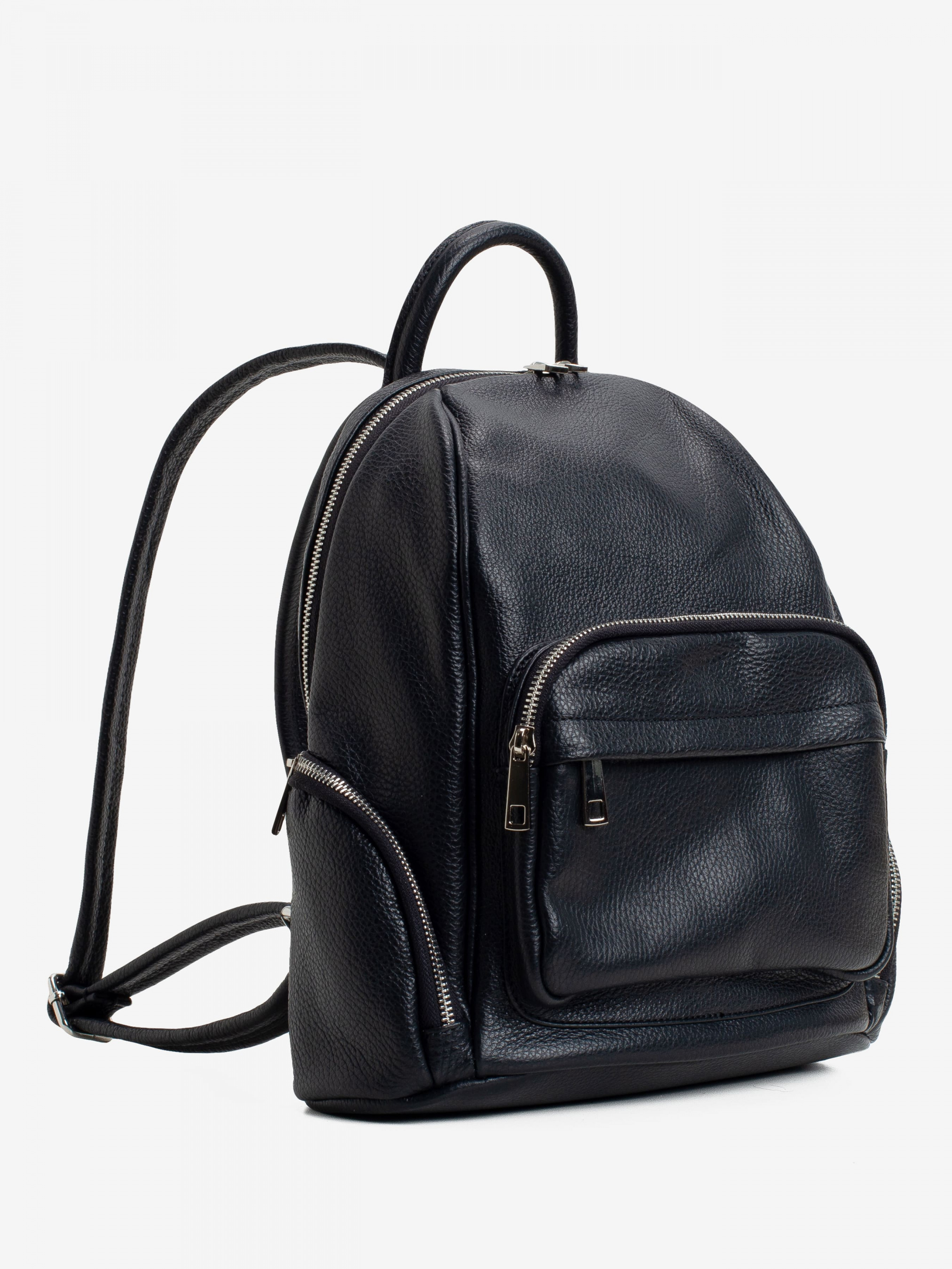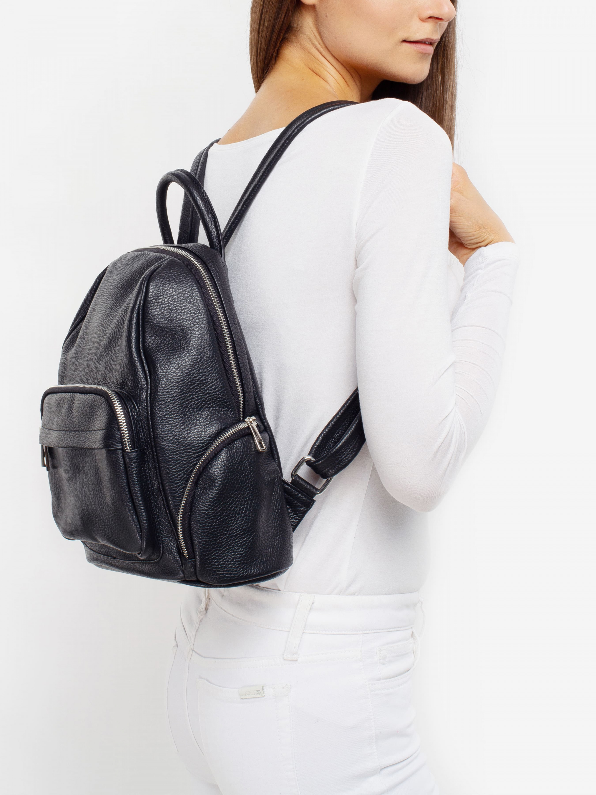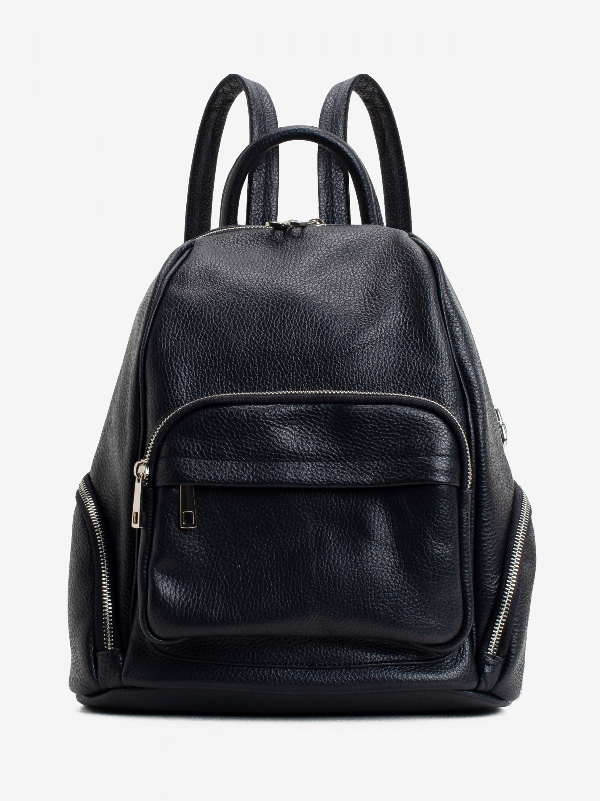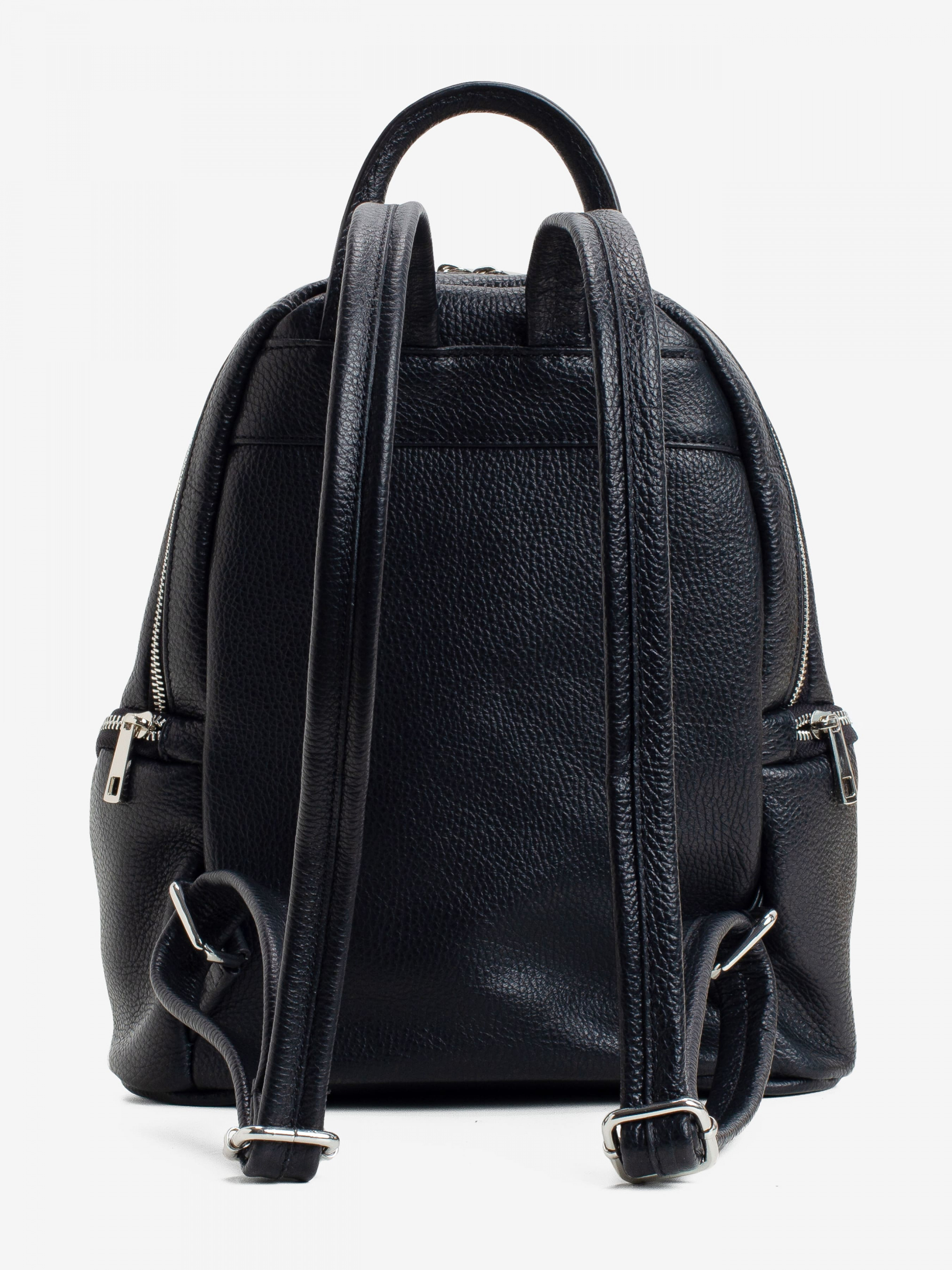 Детали: - Материал: 100% натуральная кожа - Кожа имеет фактуру флотар - Фурнитура серебристого цвета - Размеры (Ш x В x Г) - 29 x 33 x 14 см - Внутри: 1 отделение и 2 карманчика для мелочей, один из них на молнии - Снаружи: 3 кармана на молнии однин впереди и два по бокам - Плечевые ремни регулируются - Подкладка: 100% хлопок - Застежка: молния