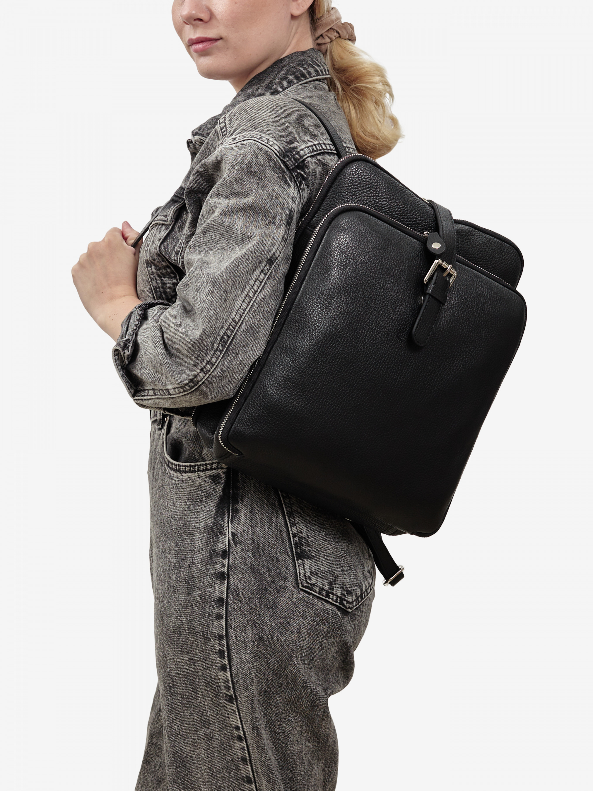 Детали: Материал: 100% натуральная кожа Кожа имеет фактуру флотар Фурнитура серебристого цвета Размеры (Ш x В x Г) - 28 x 34 x 10 см Внутри: 3 раздельных отделения, и 2 карманчик для мелочей Снаружи: сзади на спинке карманчик на молнии Плечевые ремни регулируются Подкладка: 100% хлопок Застежка: молния Спереди дополнительная застежка - хлястик на магните