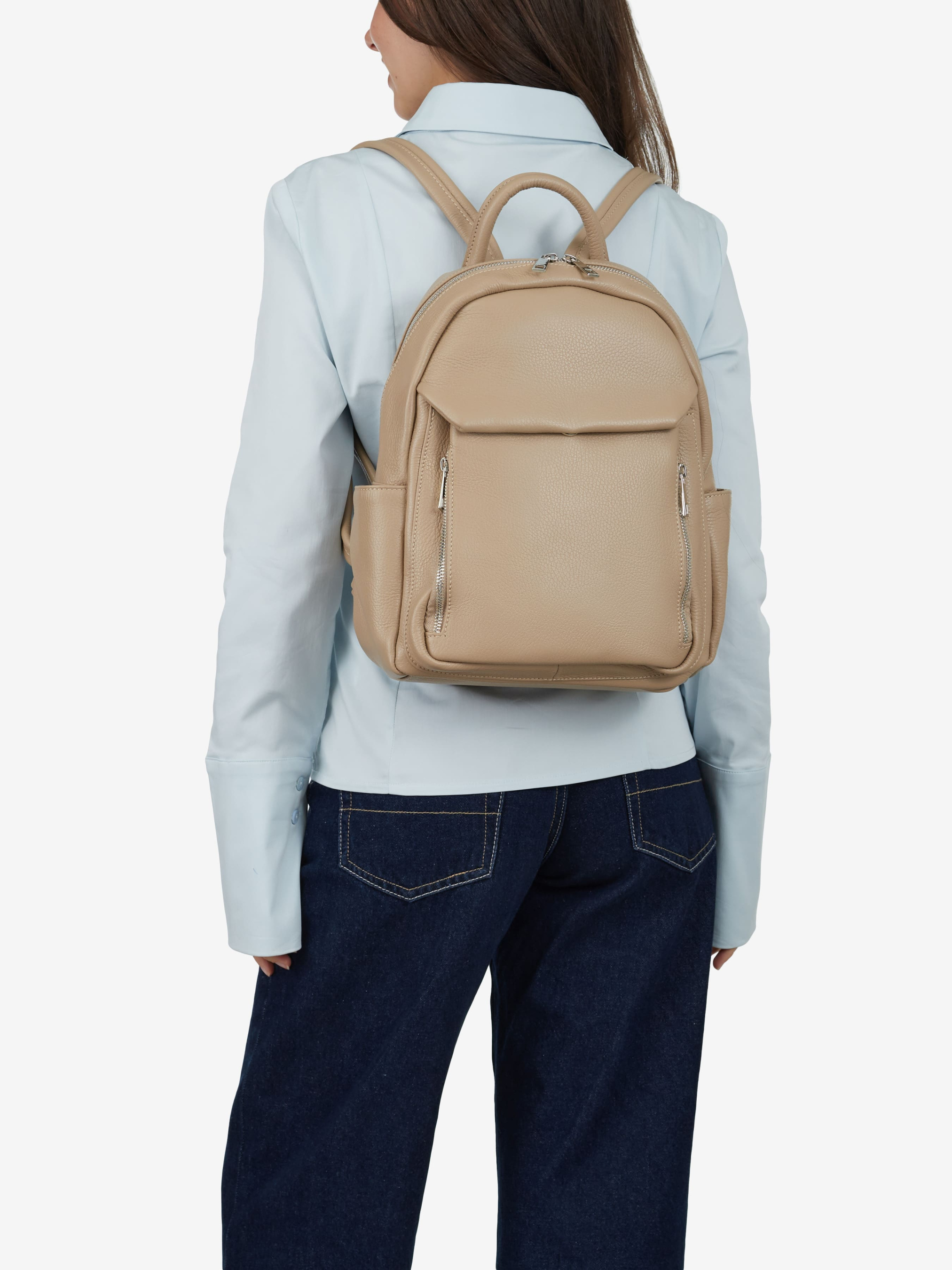 Детали: Материал: 100% натуральная кожа флотар Фурнитура серебристого цвета Размеры (Ш x В x Г) - 28 х 32 х 12 см Внутри 1 отделение и 2 карманчика для мелочей, один из них на молнии Спереди есть 1 карманчик с клапаном на магните и 2 карманчика на молнии По бокам карманчики без застежки Подкладка: хлопок Застежка: молния Высота ручки 9 см