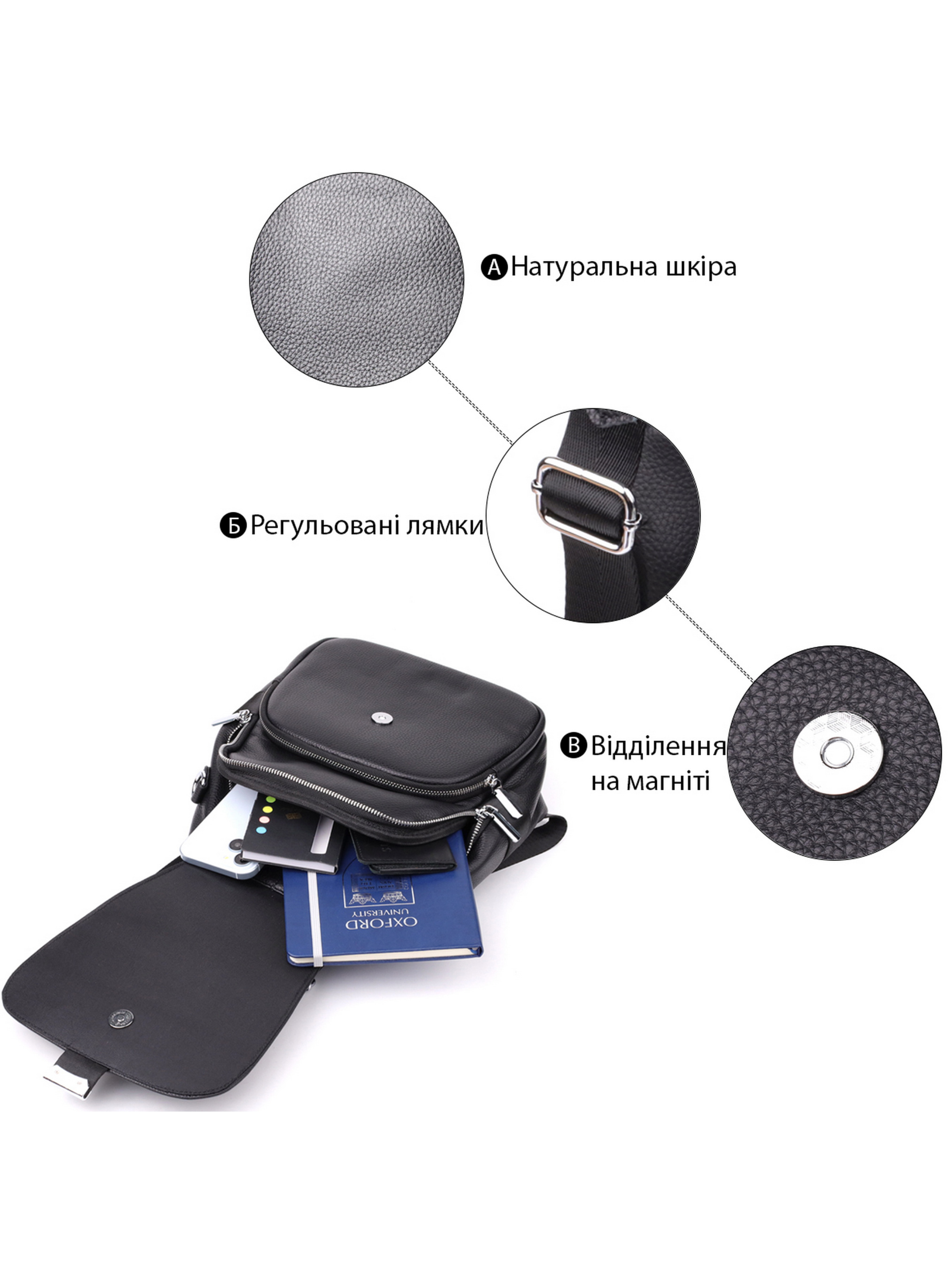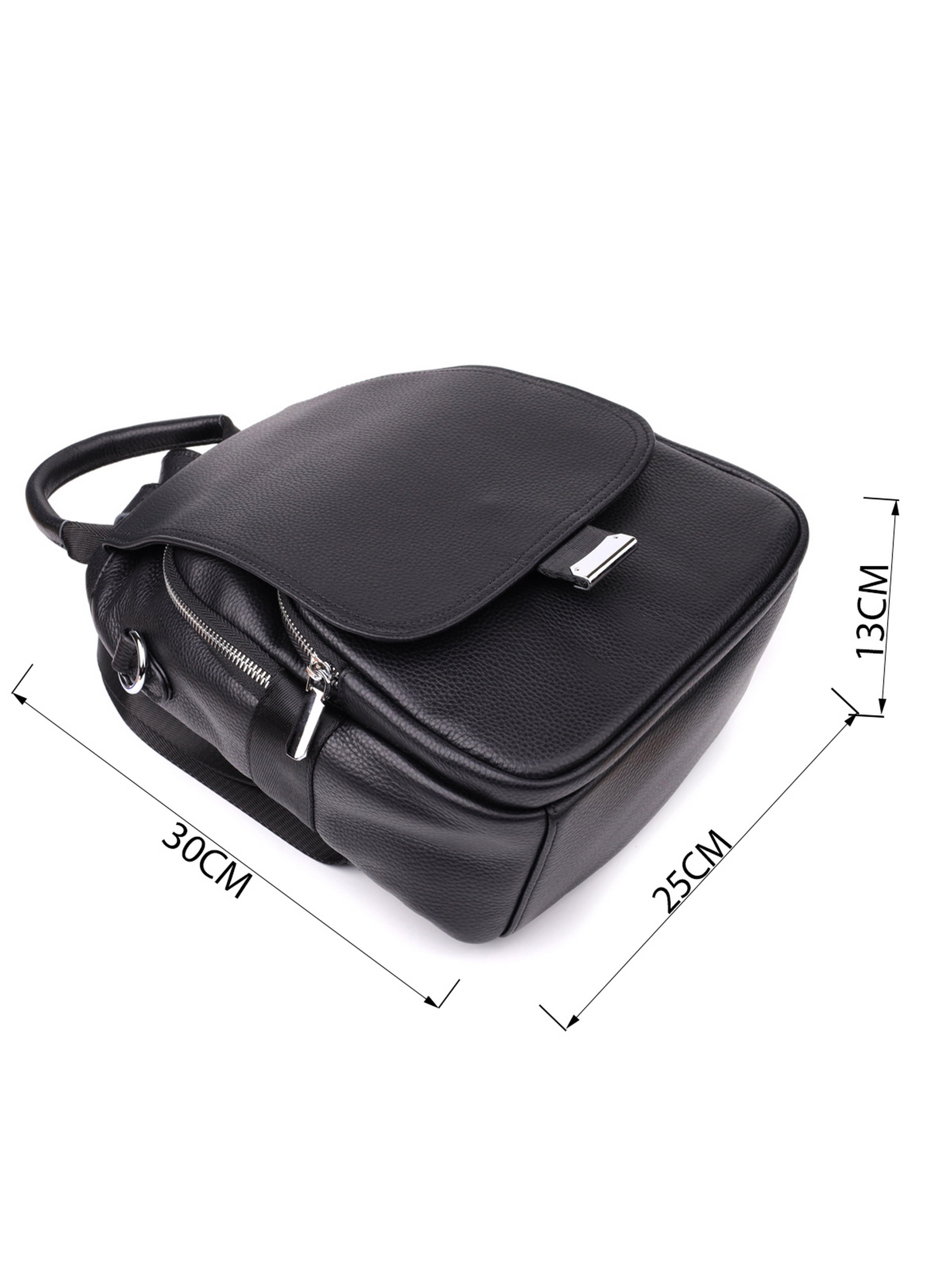 Цвет: черный; Материал: натуральная кожа высокого качества; Размер (ШхВхГ, см): 25х30х13см; Страна производитель: Китай. Бренд: Vintage. Особенности: - одно основное отделения на молнии; - два кармана на молниях внутри; - карман открытого типа внутри; - накладной карман, что закрывается на молнию, на лицевой стороне; - клапан на магните что закрывает основное отделение и накладной карман; - карман на молнии на тыльной стороне; - кожаная ручка для переноса; - кожано-текстильные регулируемые лямки; - текстильный ремешок чтобы носить как сумку. Женский кожаный рюкзак отличается стильным дизайном и удобной функциональностью. Основное отделение на молнии обеспечивает надежное хранение личных вещей, внутри которого находятся два кармана на молниях и один открытого типа для удобной организации. Накладной карман на лицевой стороне закрывается на молнию и дополнительно защищён клапаном на магнитах, который также закрывает основное отделение. На тыльной стороне расположен карман на молнии для быстрого доступа к необходимым предметам. Для комфортной переноски предусмотрена прочная кожаная ручка, кожано-текстильные регулируемые лямки, а также текстильный ремешок, позволяющий носить рюкзак как сумку. Эта модель отлично подойдет для повседневного использования, сочетая удобство и современный стиль.