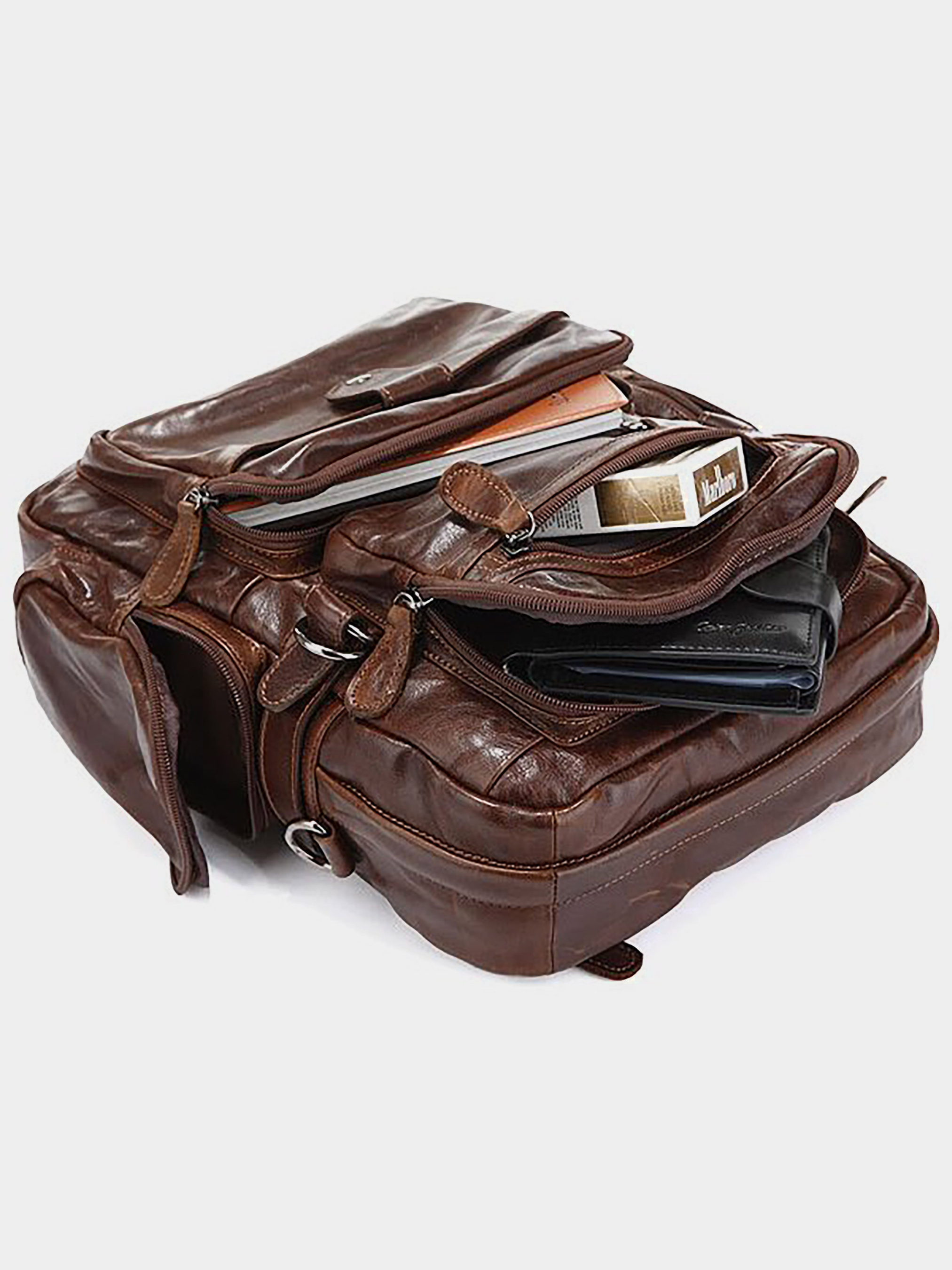 Цвет: коричневый; Материал: натуральная кожа высокого качества; Размеры: 25,5 на 36 на 10 см. Эксклюзивный рюкзак-трансформер из натуральной кожи темно-коричневого цвета. Особенностью данной модели является то, что ее можно носить в руке, через плечо, а также за спиной. Кроме того этот рюкзак имеет множество карманов и отделений делают его незаменимым для городского человека. Цвет фурнитуры: латунь. Рюкзак упакован в текстильный пылезащитный чехол белого цвета. Внутри: - 1-но большое отделение; - потайной карман на молнии на задней стенке; - 2 накладных кармана на передней стенке.