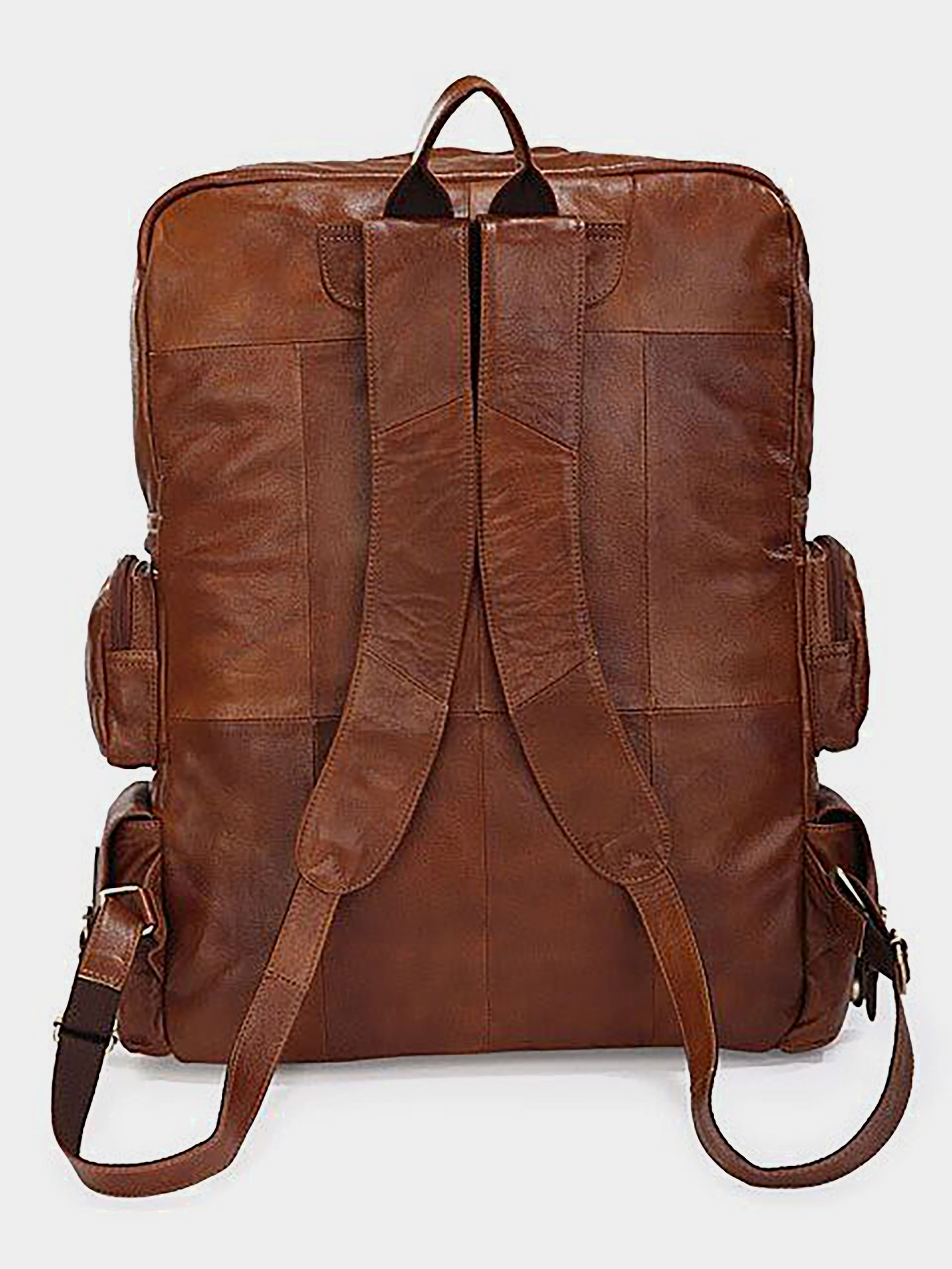 Размер(Ширина, Высота, Глубина, см): 36Х53,5Х11,5; Материал: натуральная кожа высокого качества; Цвет: коричневый. Большой рюкзак из натуральной кожи. Благодаря своим огромным размерам в такой аксессуар поместится практически все, что нужно для не длительной командировки или путешествия. Стильного внешнего виду аксессуару придает благородно коричневый цвет. Высокое качество пошива гарантирует длительный срок службы изделия. Характеристики: - 3 больших кармана на молнии на лицевой стороне; - 4 отделения по бокам рюкзака; - внутри: 1-но большое отделение, отделение на молнии (на задней стенке), 2 кармана для мобильных телефонов; - удобная ручка и наплечные ремни из кожи; - подкладка из прочного текстильного материала коричневого цвета.