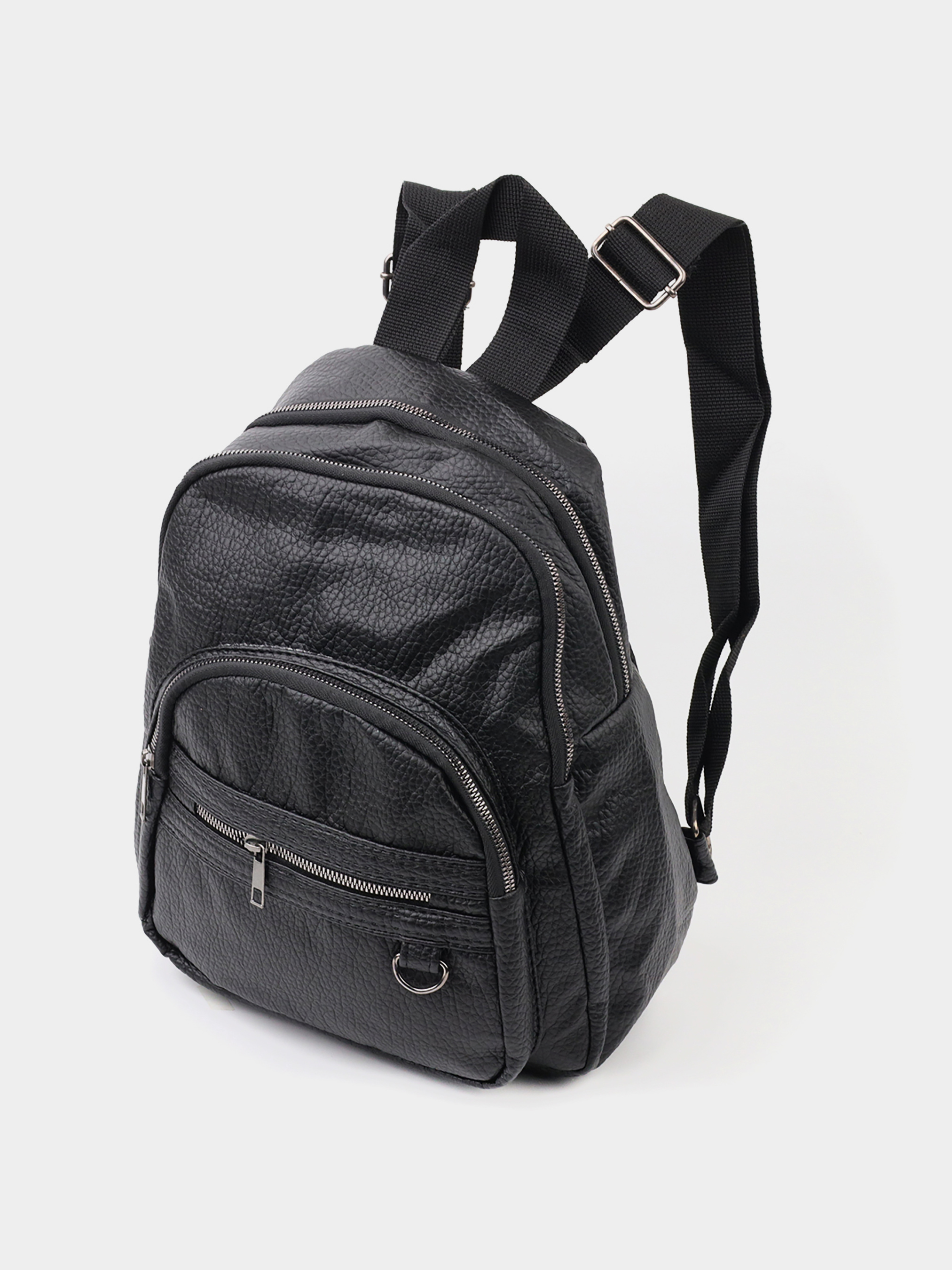 Материал: эко-кожа; Цвет: черный; Размеры (ШхВхГ, см): 25х31х14 см; Страна производитель: Китай. Особенности: - два основных отделения на молнии; - один накладной карман на молнии на лицевой стороне; - один встроенный карман на молнии на лицевой стороне; - ручка для носки в руках; - подкладка из ткани. Практичный рюкзак на два отделения из эко- кожи высокого качества. Рюкзак очень вместительный. Изделие имеет очень практичный функционал. Рюкзак подойдет для городских прогулок и для носки каждый день. Закрывается рюкзак на молнию. Внутри - качественная подкладка. Рюкзак из эко-кожи - бюджетное решение для вашего комфорта.