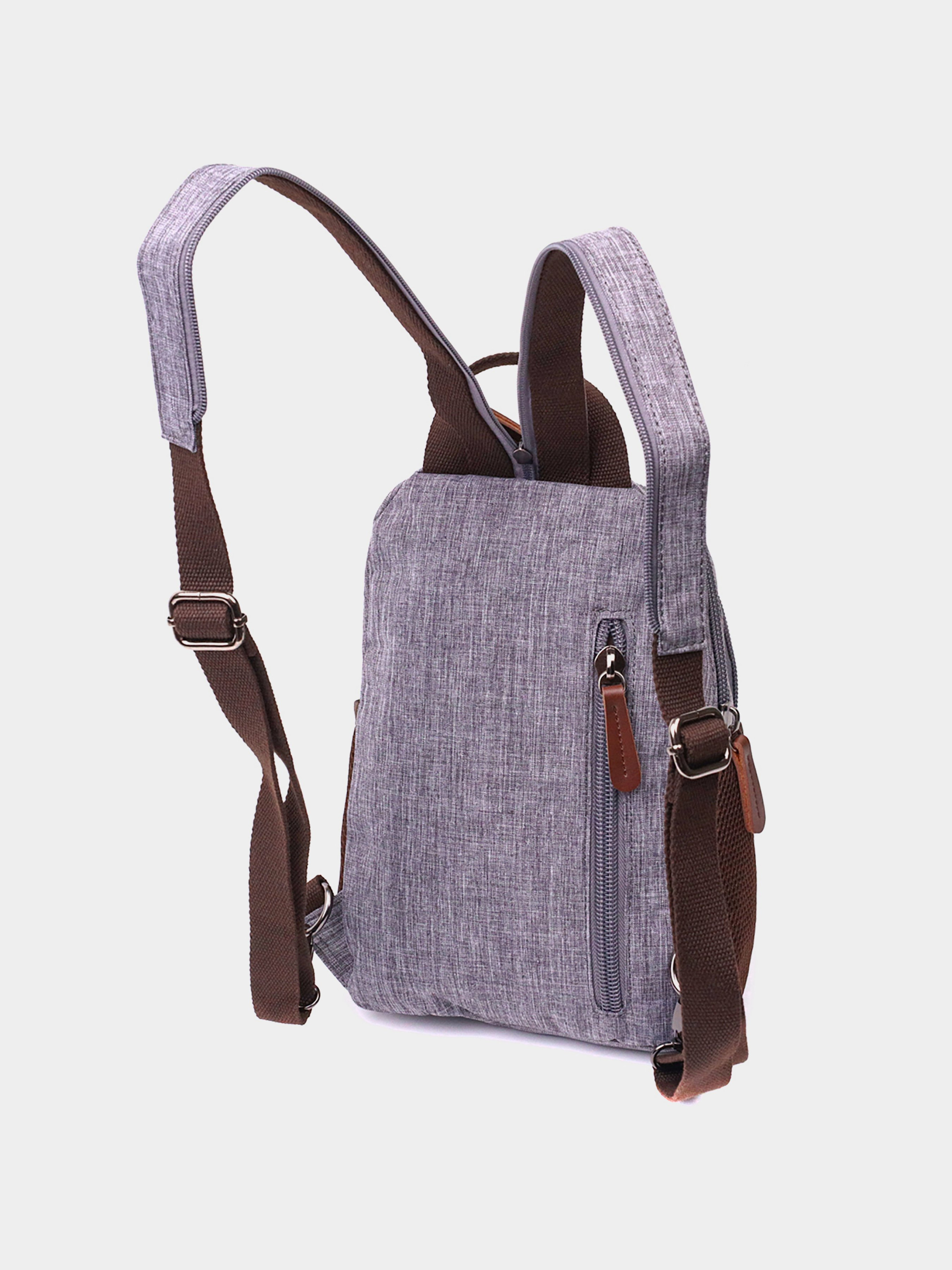 Материал: полиэстер; Цвет: серый; Размеры (ШхВхГ, см): 19х28х10 см; Страна производитель: Китай; Бренд: Vintage. Описание: - одно основное отделение на молнии; - открытый карман и потайной карман на молнии внутри; - два накладных кармана, разных размеров, что закрываются на молнии, на лицевой стороне; - два сетчатых боковых кармана; - вертикальный карман, что закрывается на молнию, на тыльной стороне; - ручка для носки в руках; - текстильные регулируемые плечевые ремни, что соединяются молнией; - подкладка из коричневой ткани. Практичный рюкзак для мужчин на каждый день из крепкого полиэстера. Имеет простой дизайн, множество карманов разных по размеру, носить эту модель можно в руке, на спине, а также как сумку-рюкзак через плечо. В аксессуаре использована качественная фурнитура, которая прослужит Вам не один год. Стоит также отметить, что модель совсем неприхотлива в уходе и легко стирается. Рюкзак с регулируемыми текстильными лямками. Если вам нужен качественный рюкзак не на один год – рекомендуем вам данную модель.