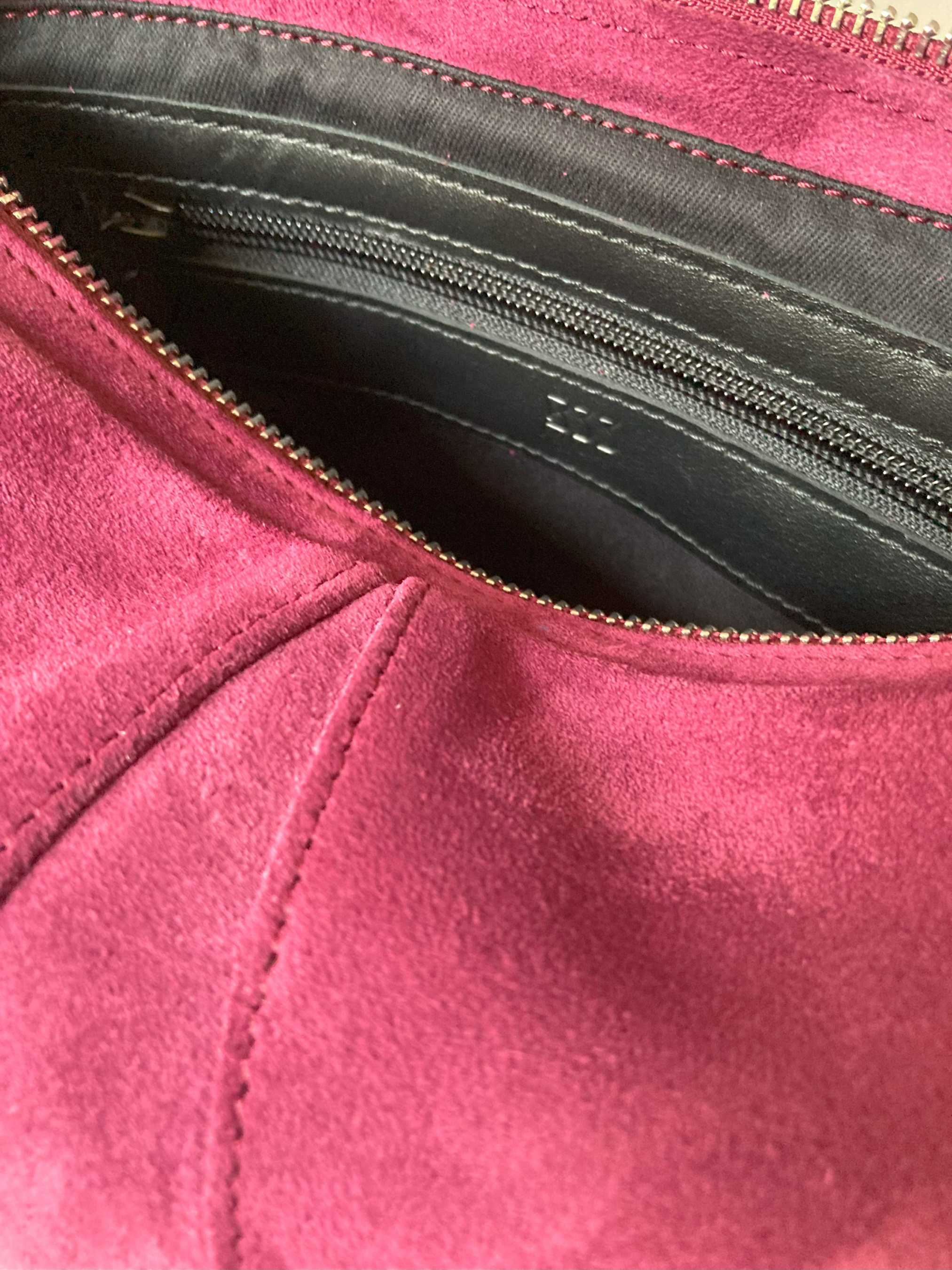 Розмір 30х17х9см. Ремінець регулюється, максимальна довжина 130 см. Всередині кишеня на блискавці. Дно всередині шкіряне. Сумочка із натуральної замші, м'яка. Застібка - блискавка.