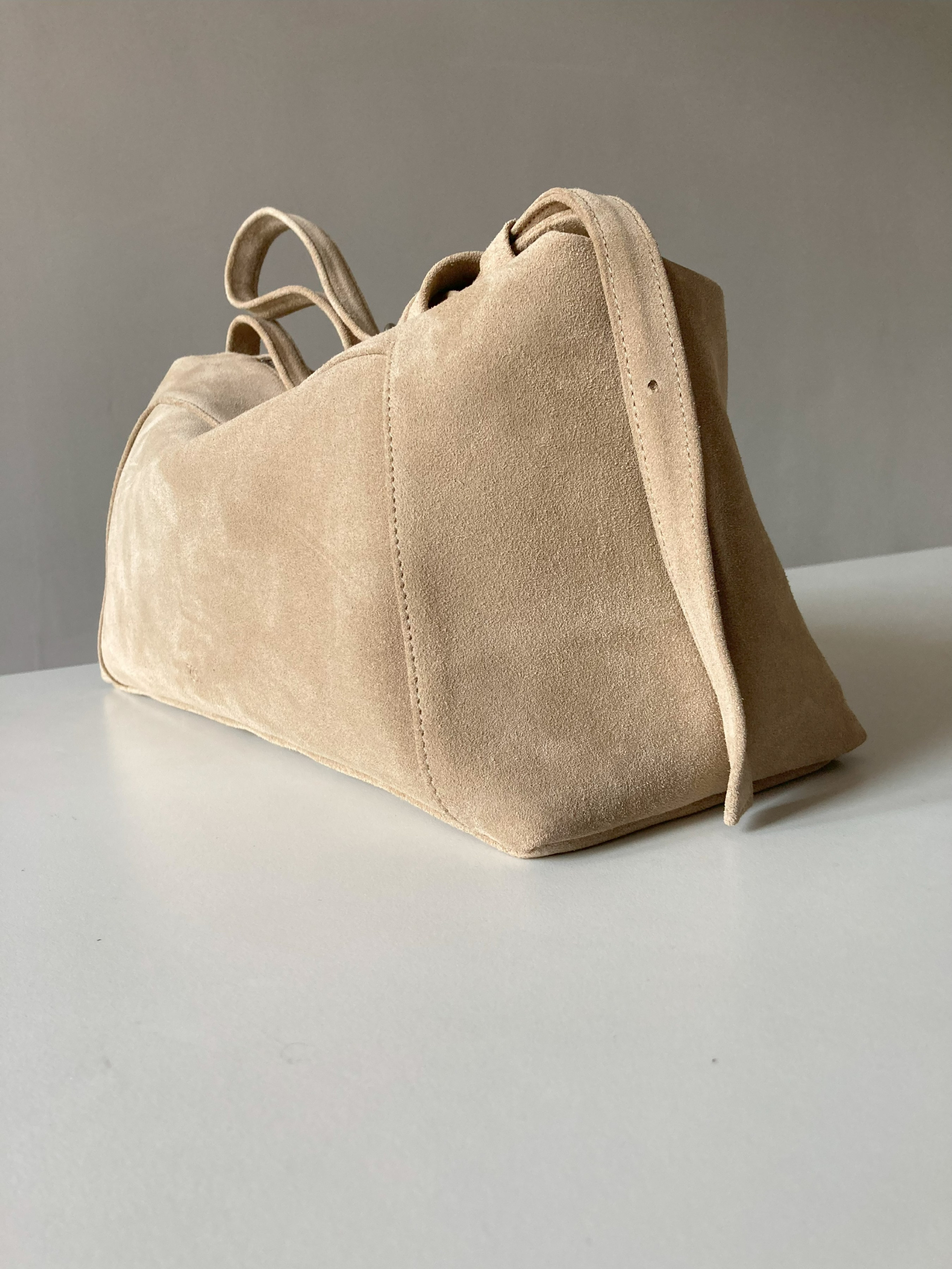 Розмір 30х17х9см. Ремінець регулюється, максимальна довжина 130 см. Всередині кишеня на блискавці. Дно всередині шкіряне. Сумочка із натуральної замші, м'яка. Застібка - блискавка.