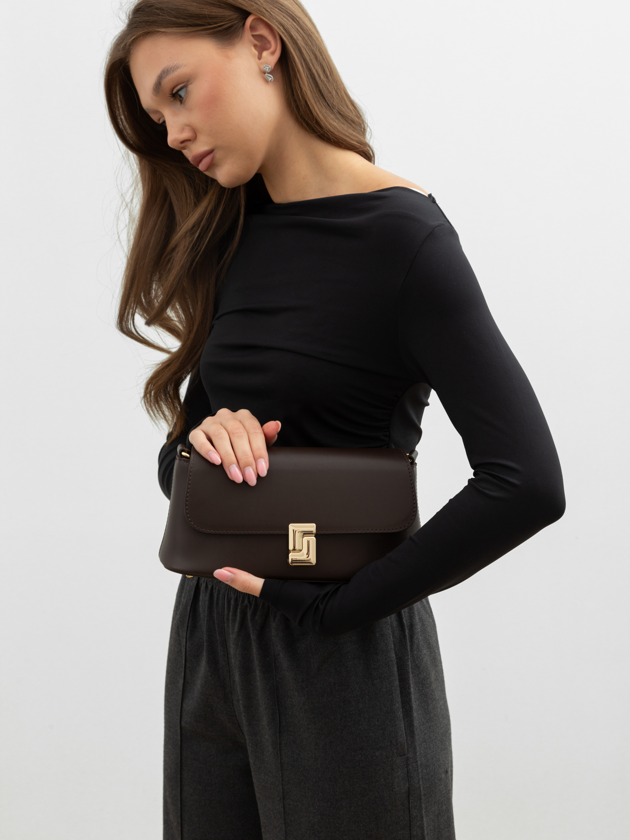 Жіноча сумка SYM-24-83 — стильна та елегантна сумка, виготовлена з високоякісної еко-шкіри. Вона підходить для будь-якого сезону та стане чудовим доповненням до вашого повсякденного образу. Виготовлена зі 100% еко-шкіри — матеріал, що є екологічно чистим і стійким, імітує натуральну шкіру, але є більш доступним та зручним.Розмір: 25 х 11 х 9 см — компактний, але вмісткий розмір, ідеальний для зберігання основних речей.Кількість відділень: 2 — зручне розділення простору для організації ваших речей.Підкладка: Так — наявність підкладки надає сумці додаткову міцність і покращує її вигляд зсередини. Властивості: - Екологічний матеріал: Сумка виготовлена з 100% еко-шкіри, що робить її більш екологічною та доступною.- Компактний дизайн: Завдяки розміру та кількості відділень, сумка є вмісткою та зручною для щоденного використання.- Універсальні кольори: Чорний і шоколадний кольори підходять до будь-якого одягу, від класичного до casual стилю.- Зручність: Легка в догляді та практична для носіння завдяки кнопці на застібці та підкладці. Ця сумка є ідеальним вибором для тих, хто цінує стиль, практичність та екологічність у своїх аксесуарах.