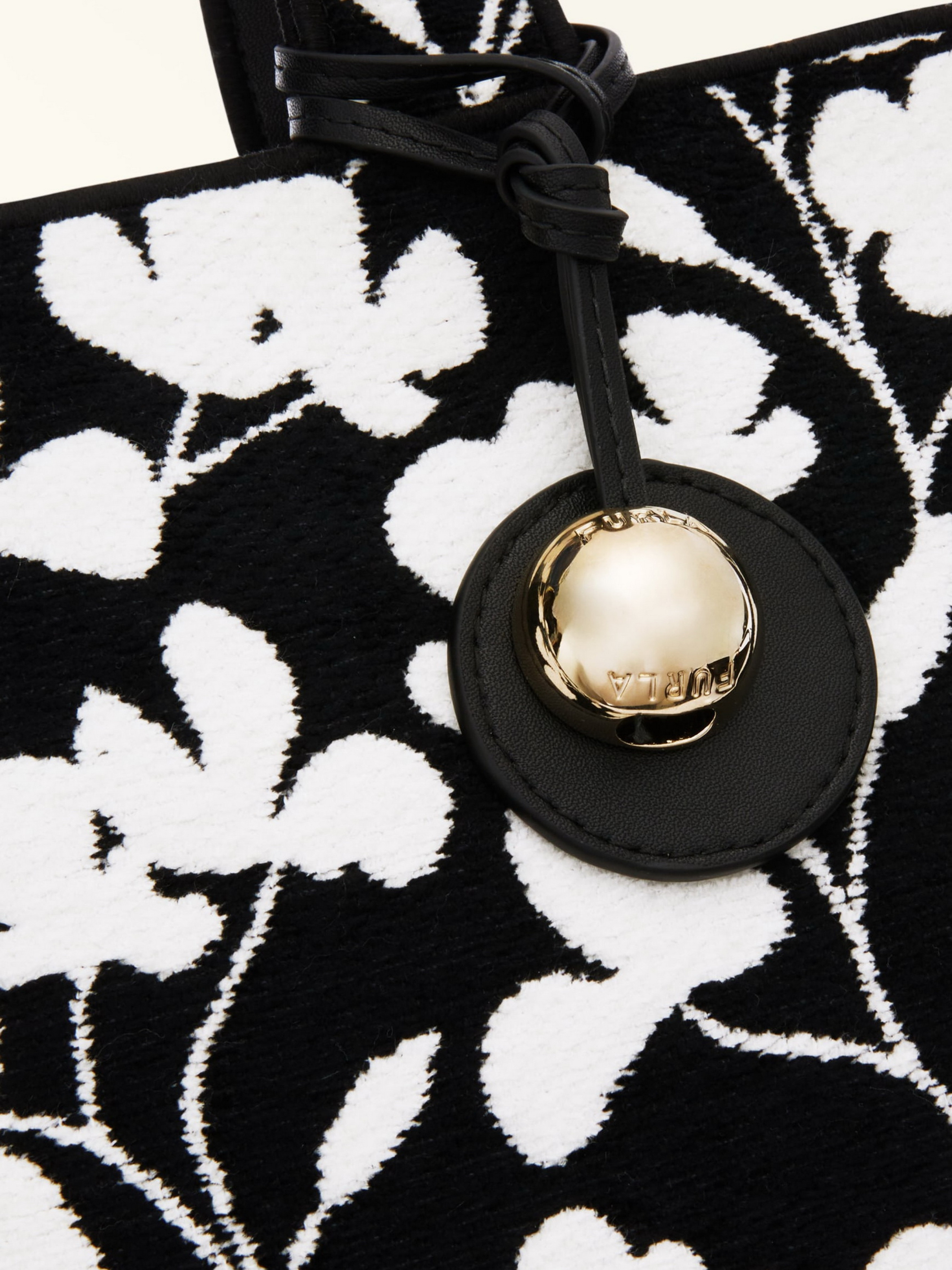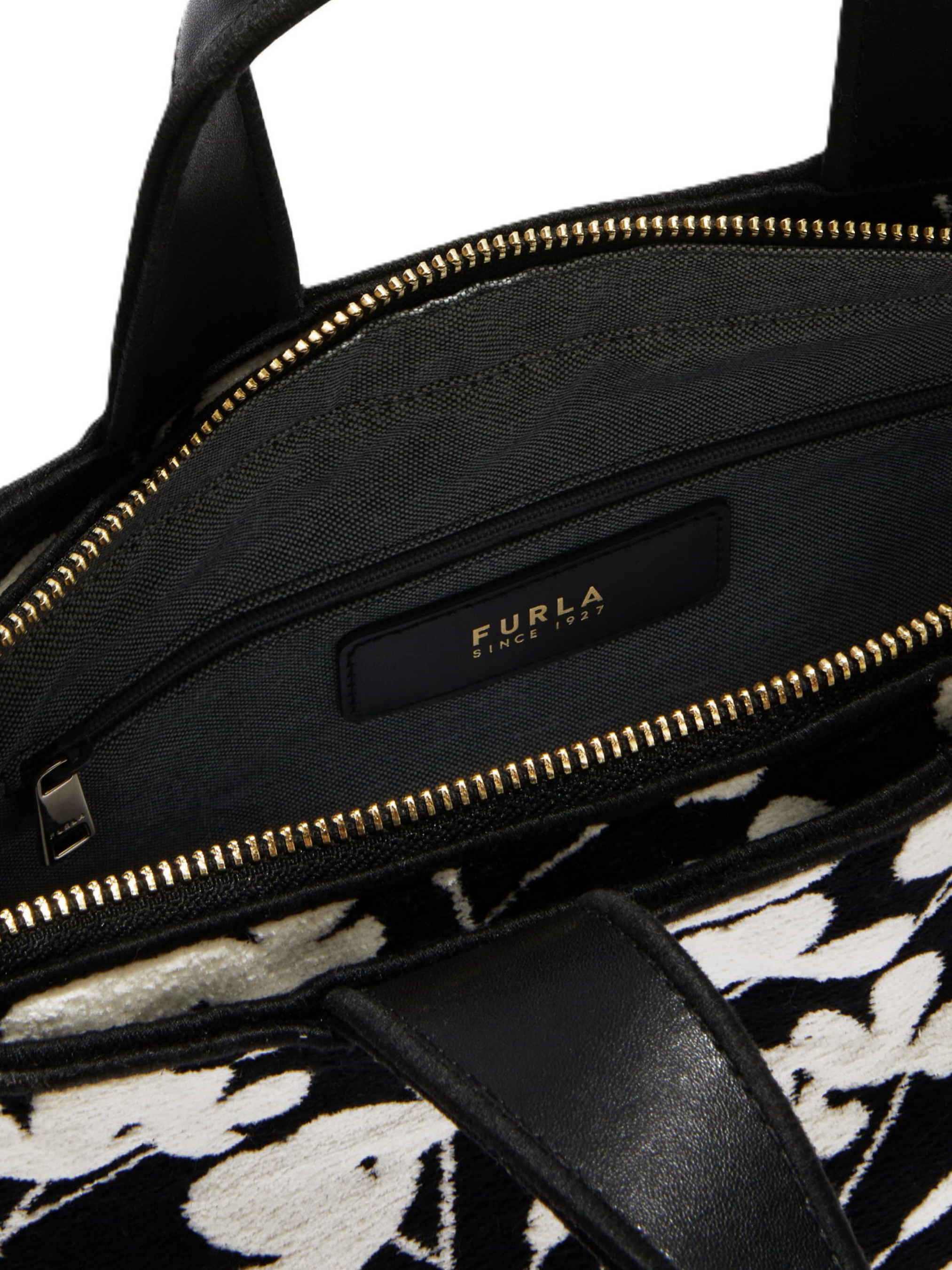 Сумка Furla ALISSA S TOTE. Сумка маленького размера. Закрывается на молнию. Имеет две ручки и съемный регулируемый ремень длиной 113 см. Внутри одно отделение и карманы. Четкие линии подчеркиваются круглой кожаной биркой, завязанной вокруг ручки и украшенной фурнитурой Sfera. Изготовлена из насыщенного жаккардового шенилла, имеет тиснение цветов японской магнолии, создающее контраст светлого и темного цвета. Размер: 26,5 x 19,5 x 12.