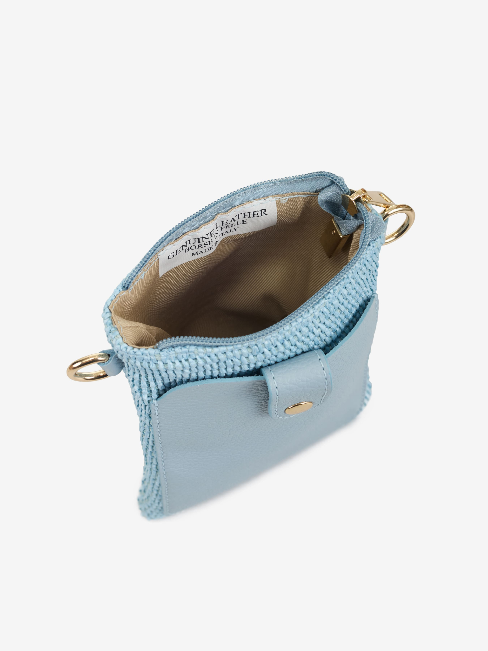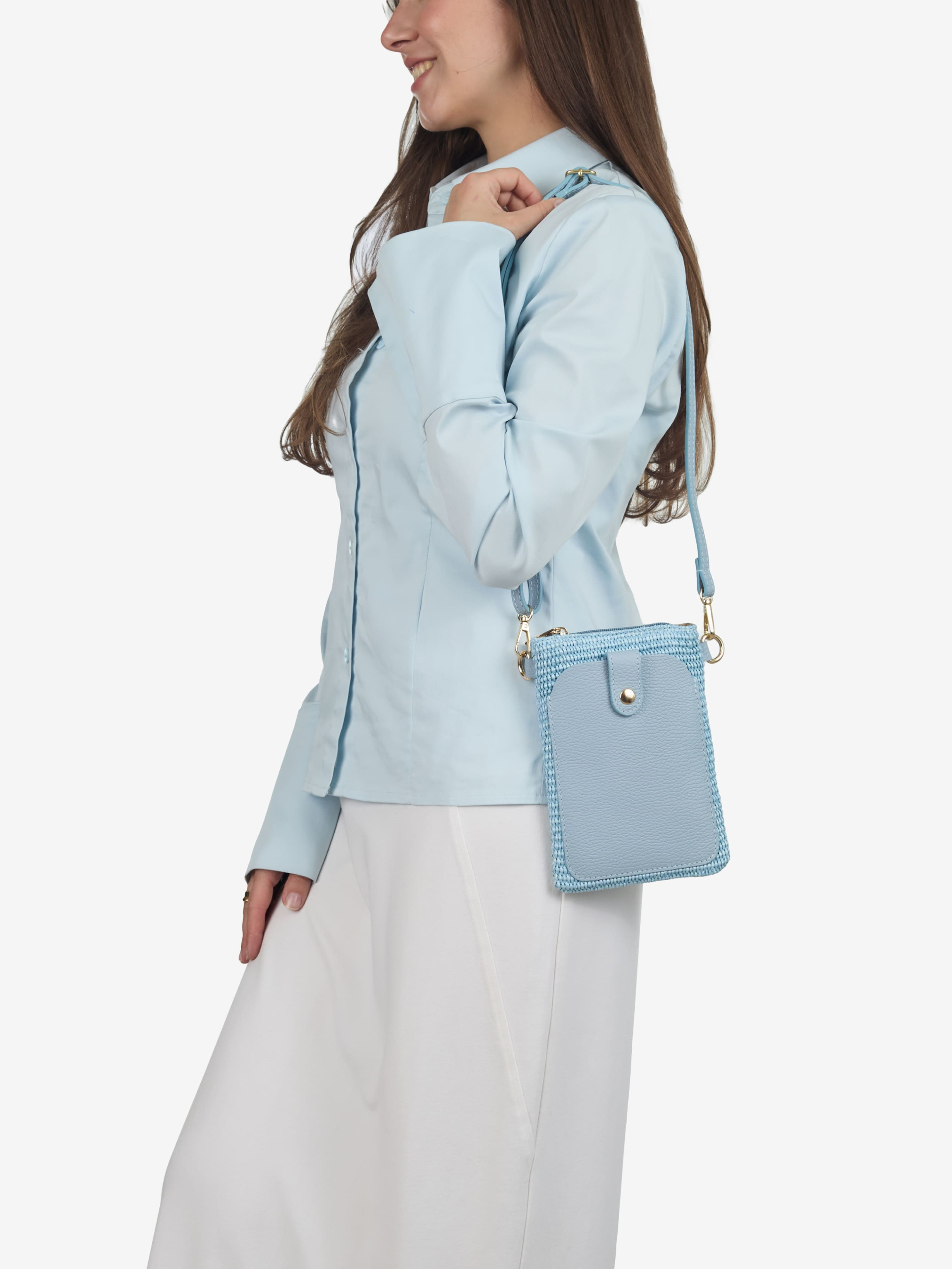 Детали: Материал: 100% натуральная кожа флотар, бумажная солома Фурнитура золотистого цвета Размеры (Ш x В x Г) - 13 x 20 x 4 см Внутри 1 отделение Спереди карманчик на магните Подкладка: хлопок Застежка: молния Ремешок кожаный, съемный, регулируется, максимальная длина 115 см
