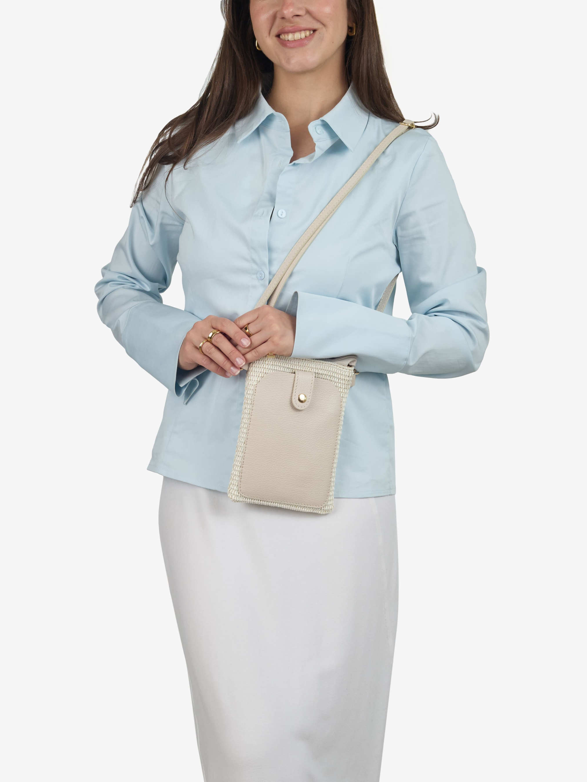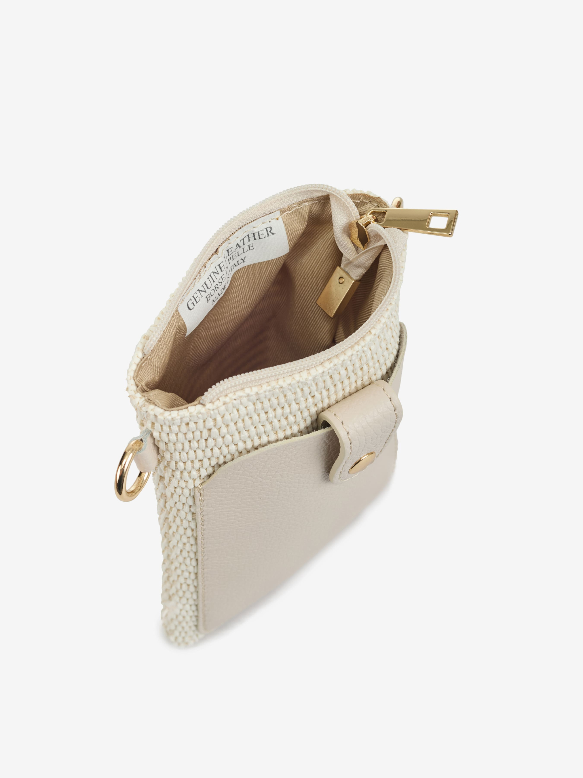 Детали: Материал: 100% натуральная кожа флотар, бумажная солома Фурнитура золотистого цвета Размеры (Ш x В x Г) - 13 x 20 x 4 см Внутри 1 отделение Спереди карманчик на магните Подкладка: хлопок Застежка: молния Ремешок кожаный, съемный, регулируется, максимальная длина 115 см