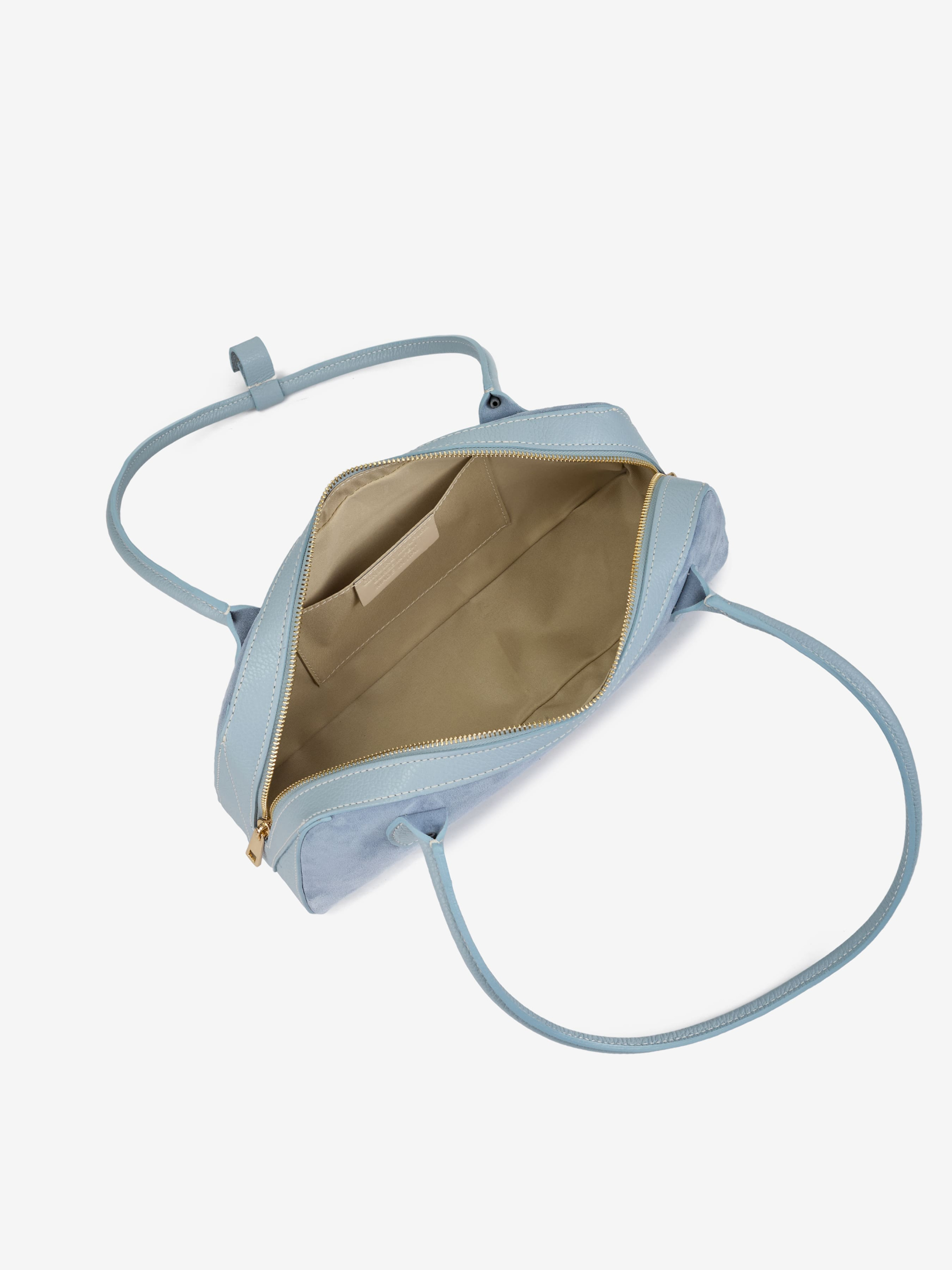 Детали: Материал: 100% натуральная замша, натуральная кожа флотар Фурнитура золотистого цвета Размеры (Ш x В x Г) - 34 x 17 x 8 см Внутри 1 отделение и 1 карманчик без застежки Подкладка: хлопок Застежка: молния Высота ручек 25 см Ремешок кожаный, съемный, регулируется, максимальная длина 120 см