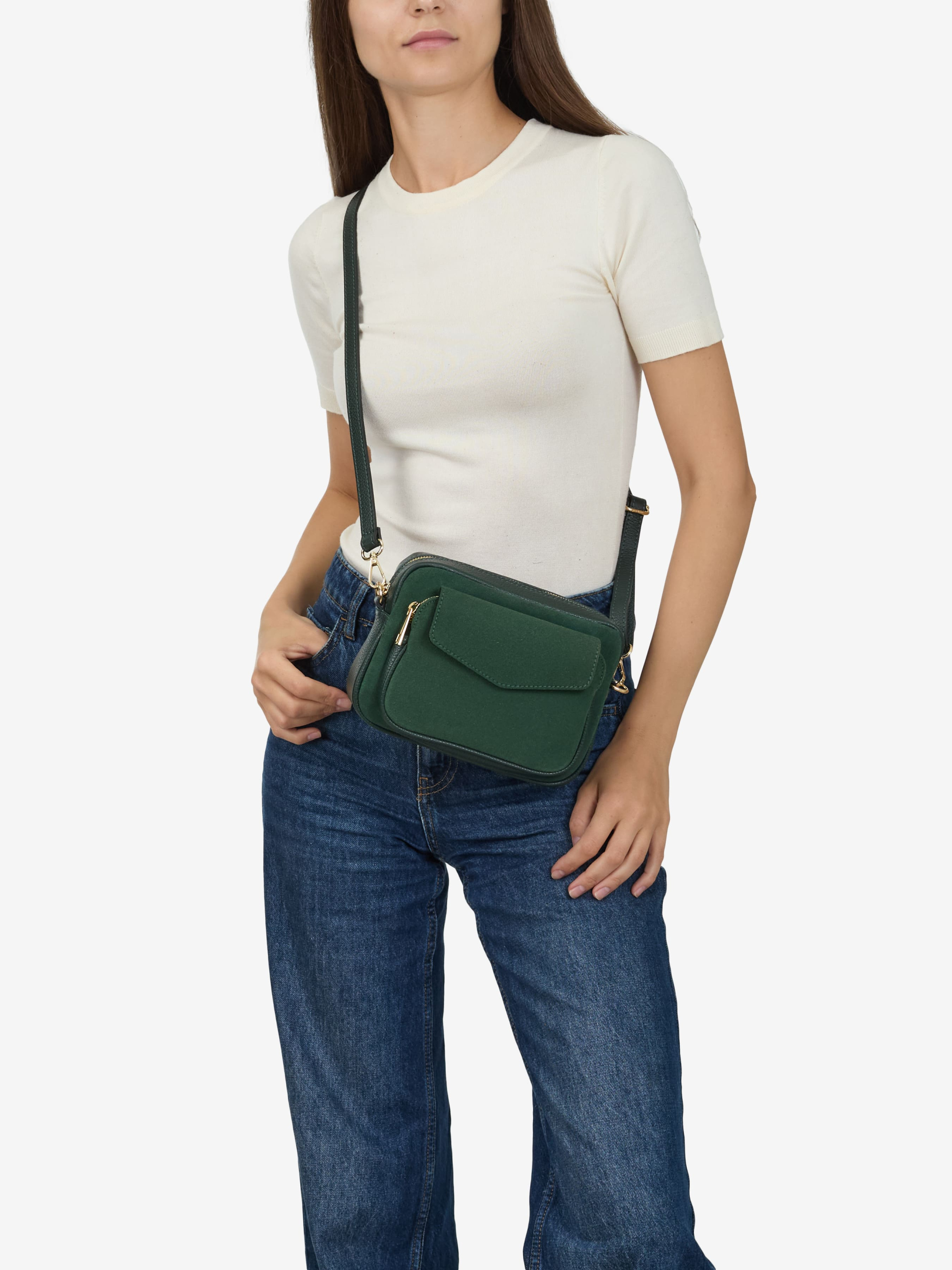 Детали: Материал: 100% натуральная замша, натуральная кожа флотар Фурнитура золотистого цвета Размеры (Ш x В x Г) - 21 x 17 x 8 см Внутри 1 отделение и карманчик на молнии для мелочей. Спереди карманчик на молнии под клапаном на магните Подкладка: хлопок Застежка: молния Ремешок кожаный, съемный,регулируется, максимальная длина 120 см