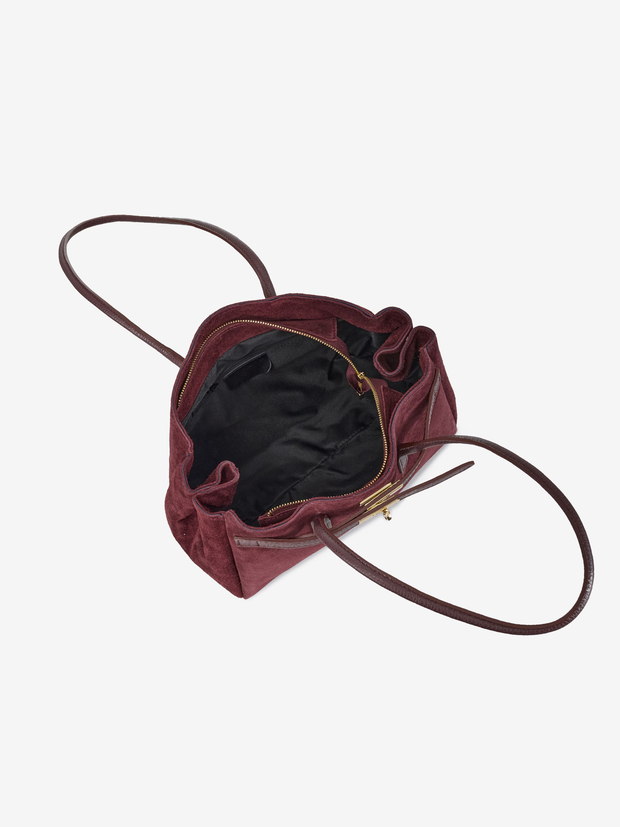 Детали: Материал: 100% натуральная замша, натуральная кожа флотар Фурнитура золотистого цвета Размеры (Ш x В x Г) - 32 x 25 x 10 см Внутри 1 отделение и карманчик на молнии для мелочей. По бокам есть кнопки для увеличения ширины сумки Подкладка: хлопок Застежка: молния Высота ручки 23 см