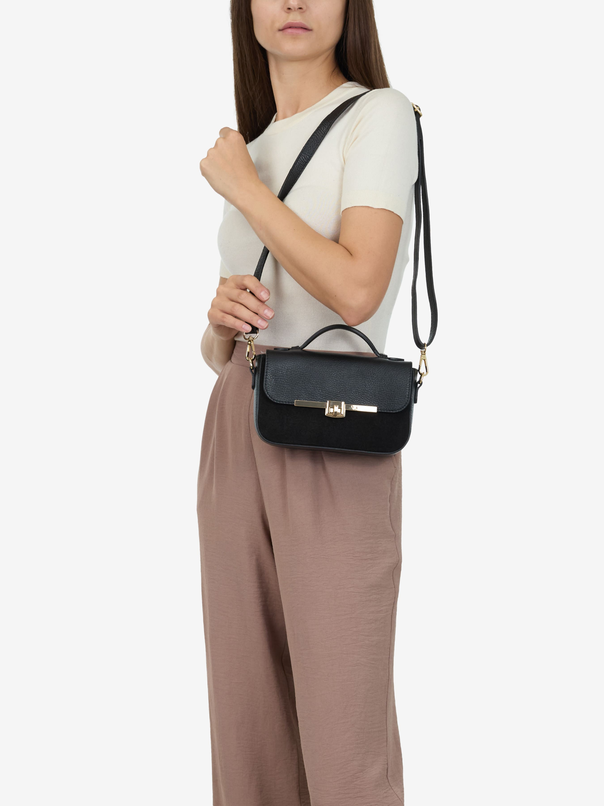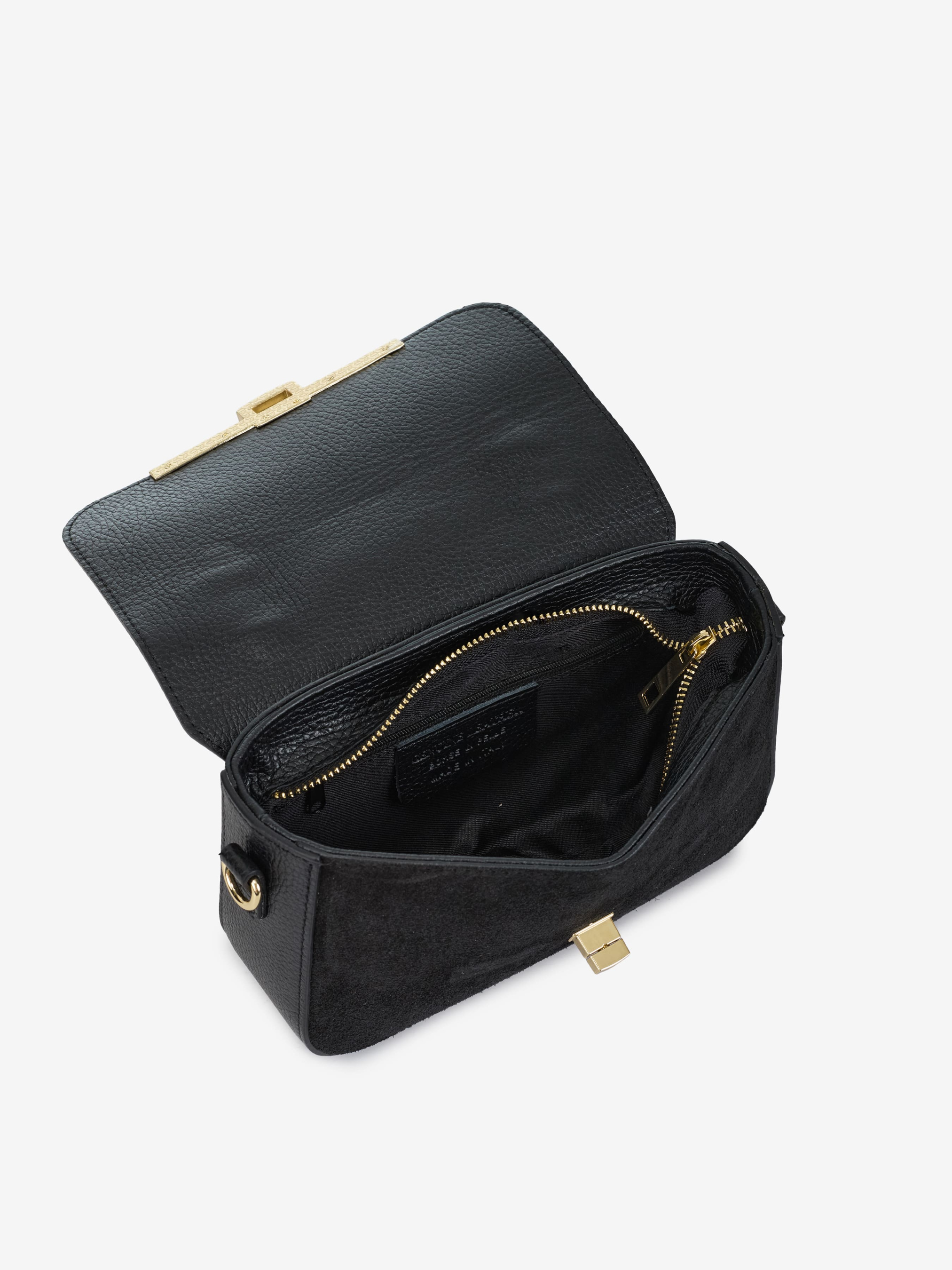 Детали: Материал: 100% натуральная замша, натуральная кожа флотар Фурнитура золотистого цвета Размеры (Ш x В x Г) - 22 x 14 x 6 см Внутри 1 отделение и карманчик на молнии для мелочей. Сзади карманчик на молнии Подкладка: хлопок Застежка: молния, клапан на поворотном замке Высота ручки 4 см Ремешок кожаный, съемный,регулируется, максимальная длина 120 см