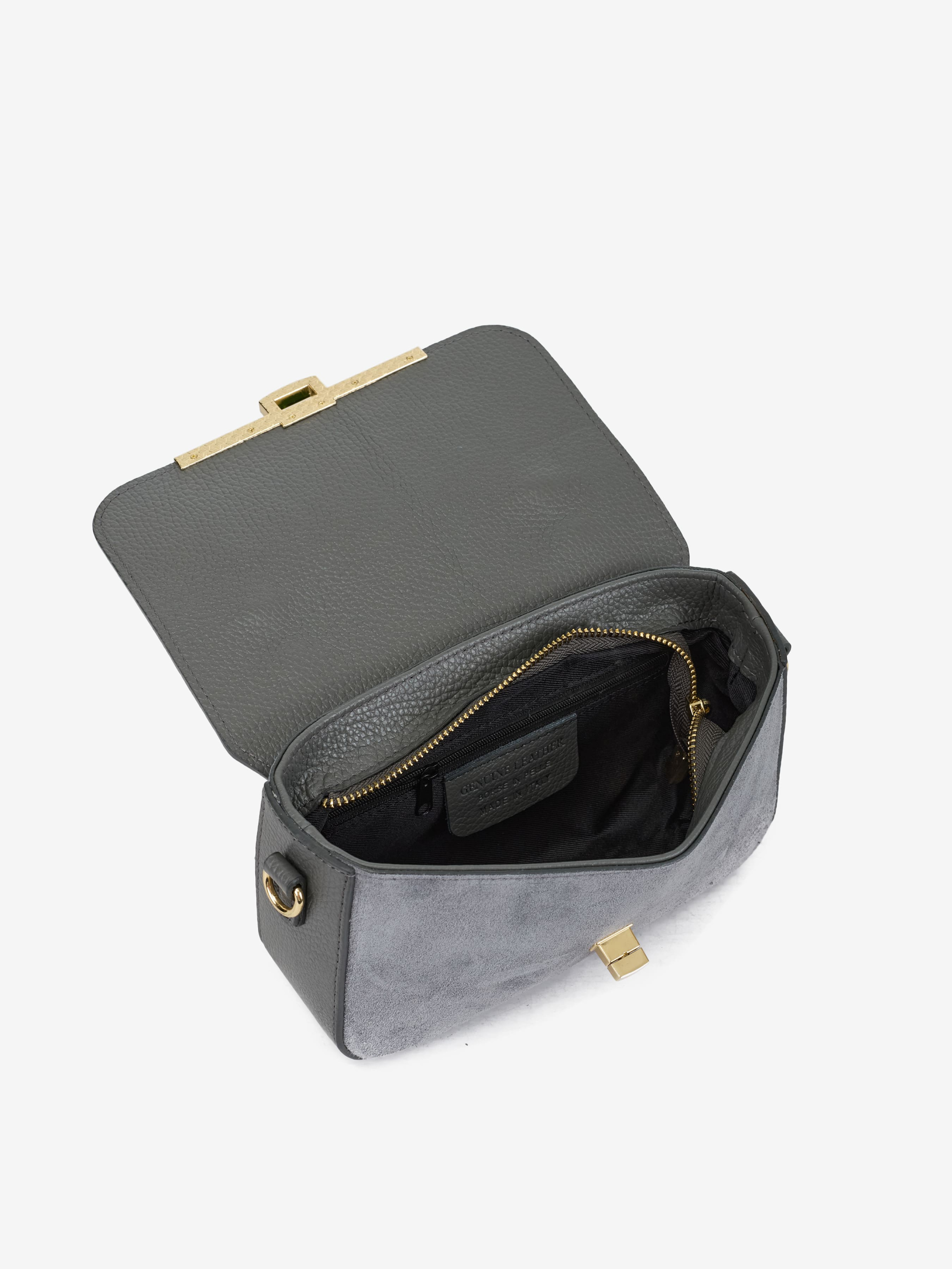 Детали: Материал: 100% натуральная замша, натуральная кожа флотар Фурнитура золотистого цвета Размеры (Ш x В x Г) - 22 x 14 x 6 см Внутри 1 отделение и карманчик на молнии для мелочей. Сзади карманчик на молнии Подкладка: хлопок Застежка: молния, клапан на поворотном замке Высота ручки 4 см Ремешок кожаный, съемный,регулируется, максимальная длина 120 см