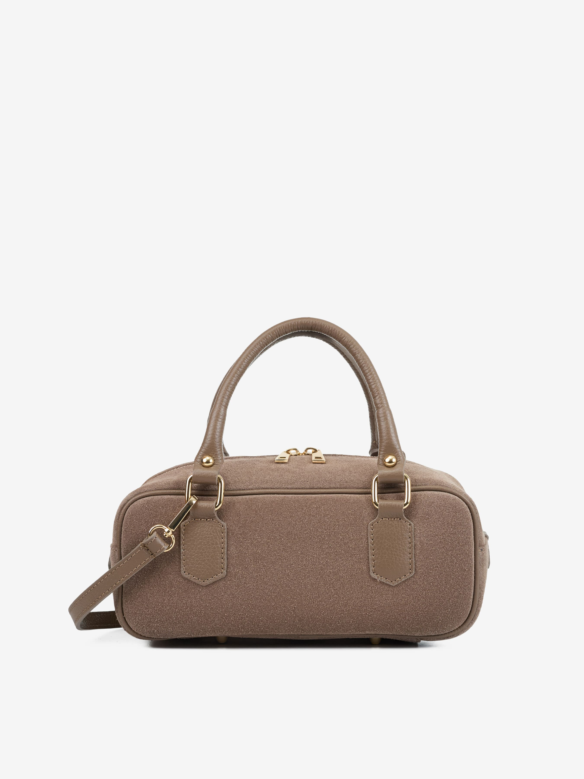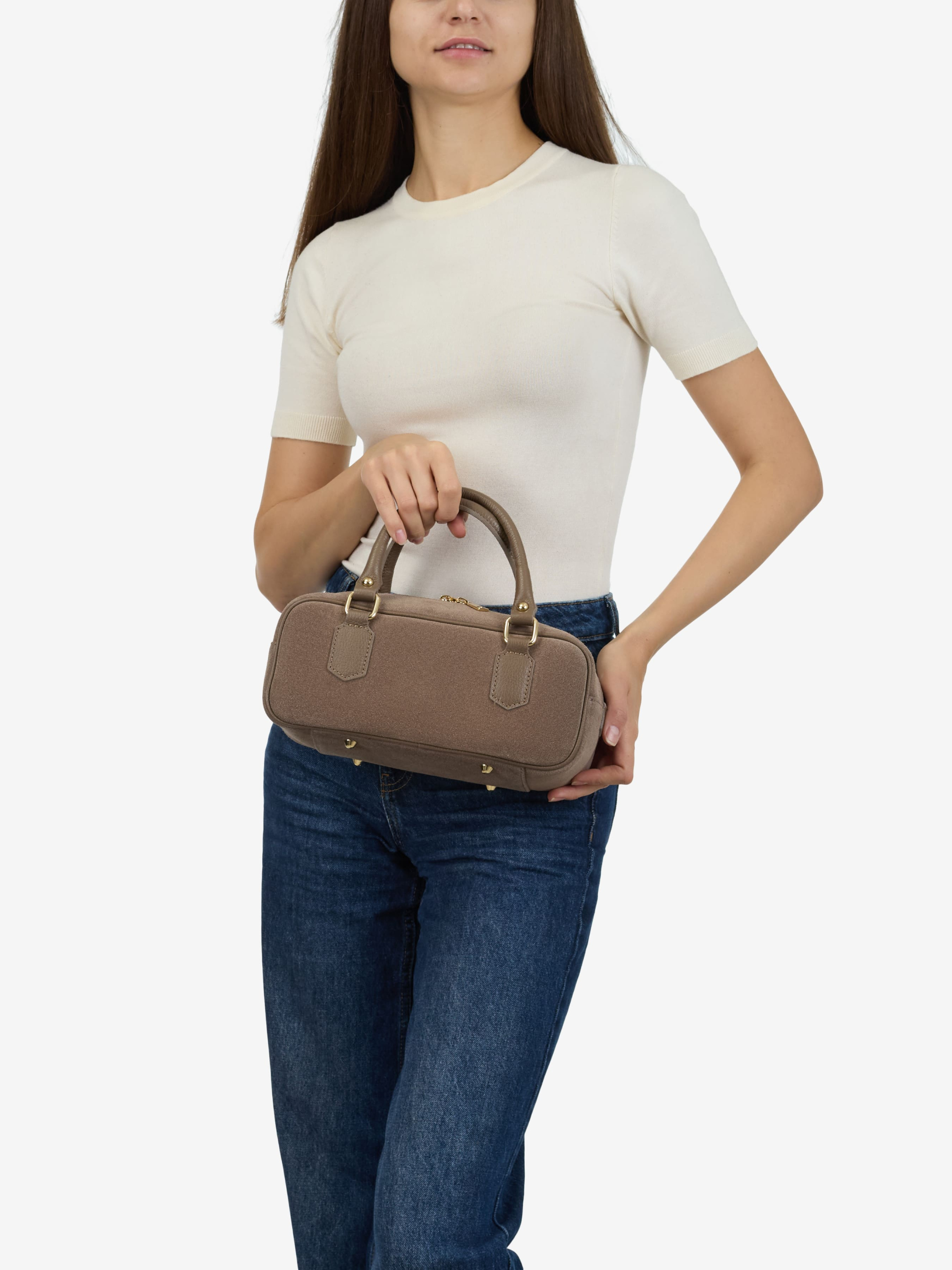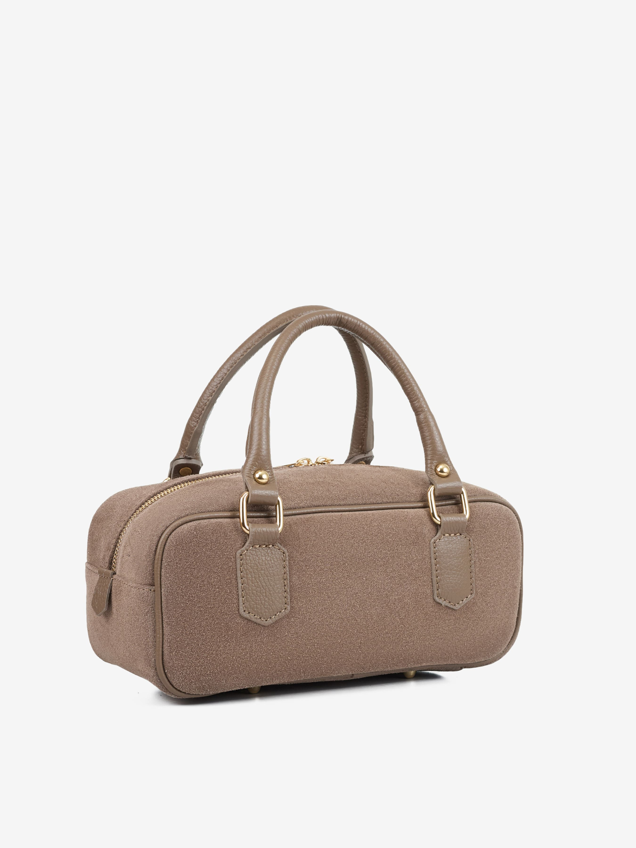 Детали: Материал: 100% натуральная замша, 100% натуральная кожа флотар Фурнитура золотистого цвета Размеры (Ш x В x Г) - 28х12х12 см Внутри 1 отделение Подкладка: хлопок Застежка: молния Ремешок кожаный, съемный, регулируется, максимальная длина 115 см Высота ручек 14 см