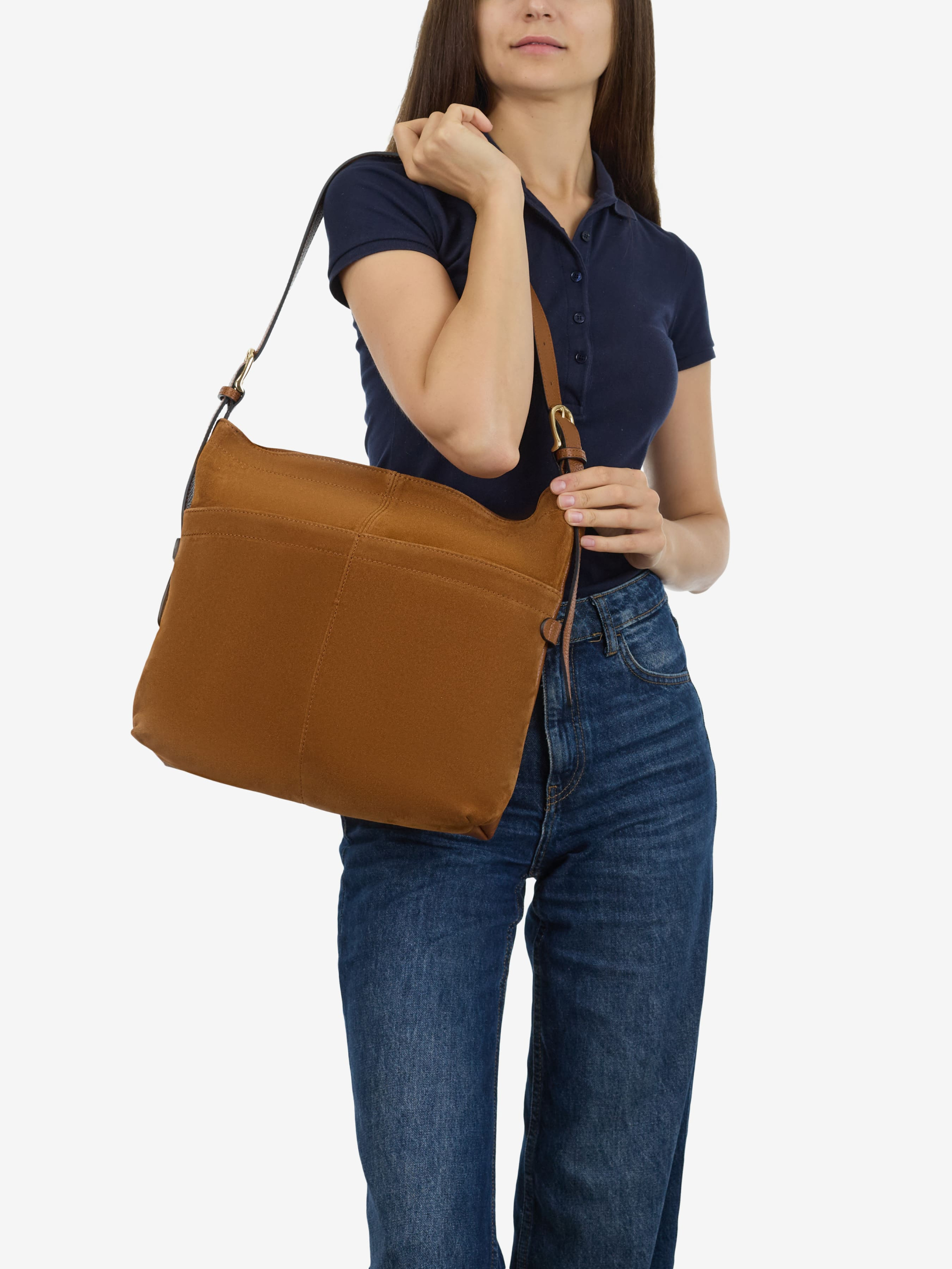 Детали: Материал: 100% натуральная замша, натуральная кожа флотар Фурнитура золотистого цвета Размеры (Ш x В x Г) - 37 х 34 х 11 см Внутри 1 отделения, 2 карманчика для мелочей, один на молнии , спереди два кармана без застежки Подкладка: хлопок Застежка: молния Ремешок кожаный, съемный, регулируется, максимальная длина 100 см