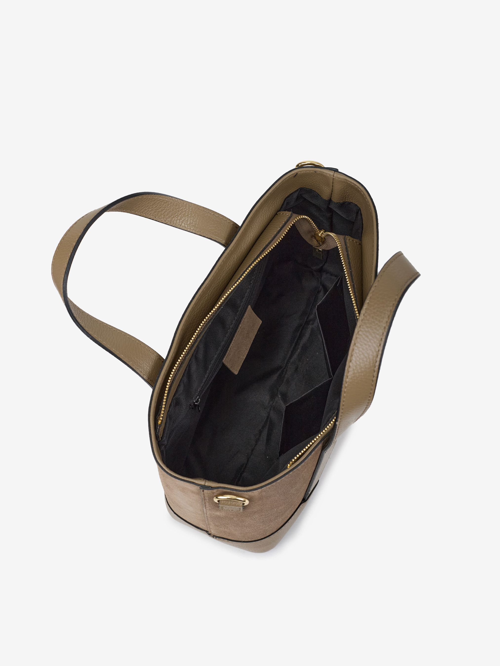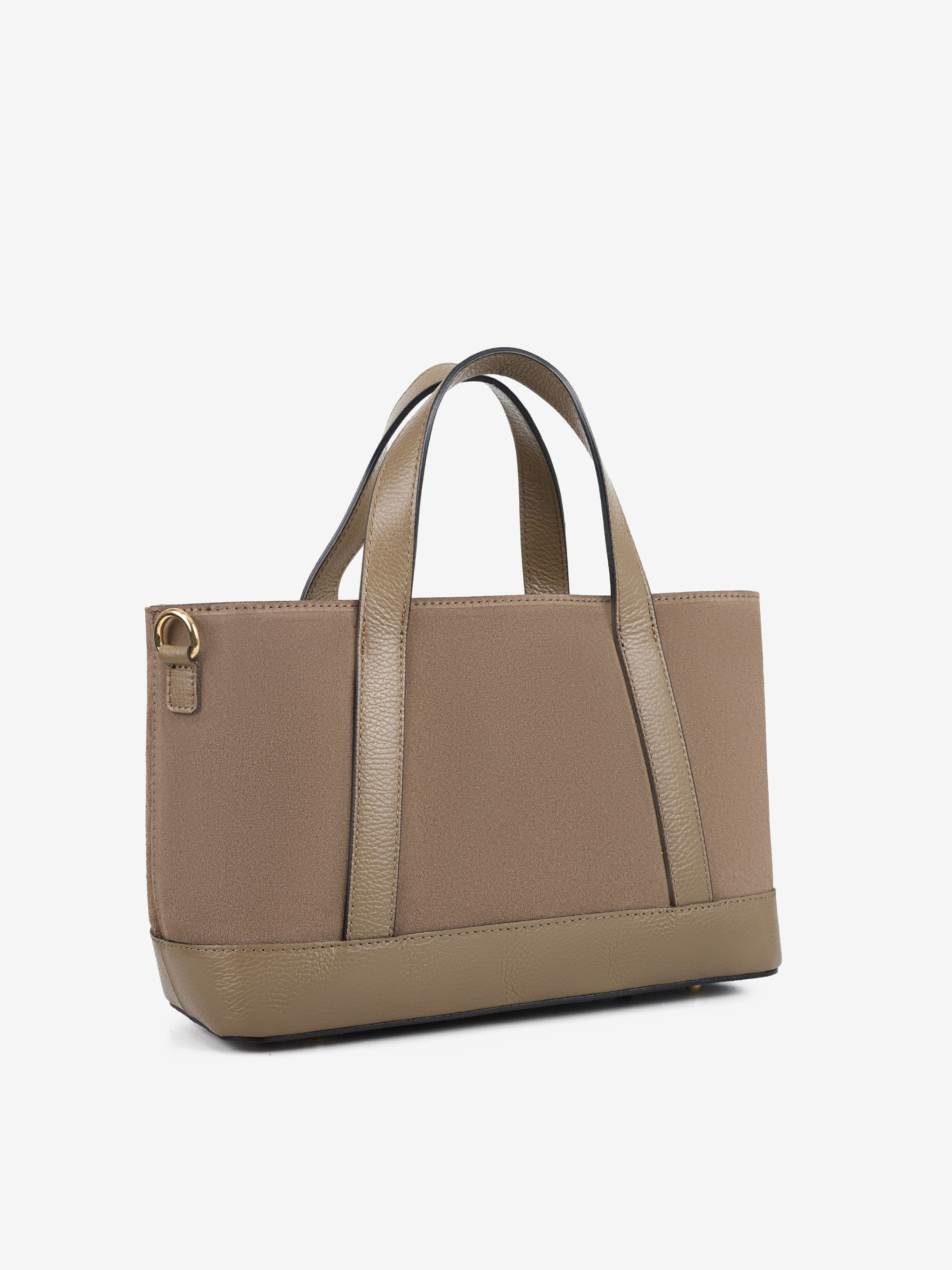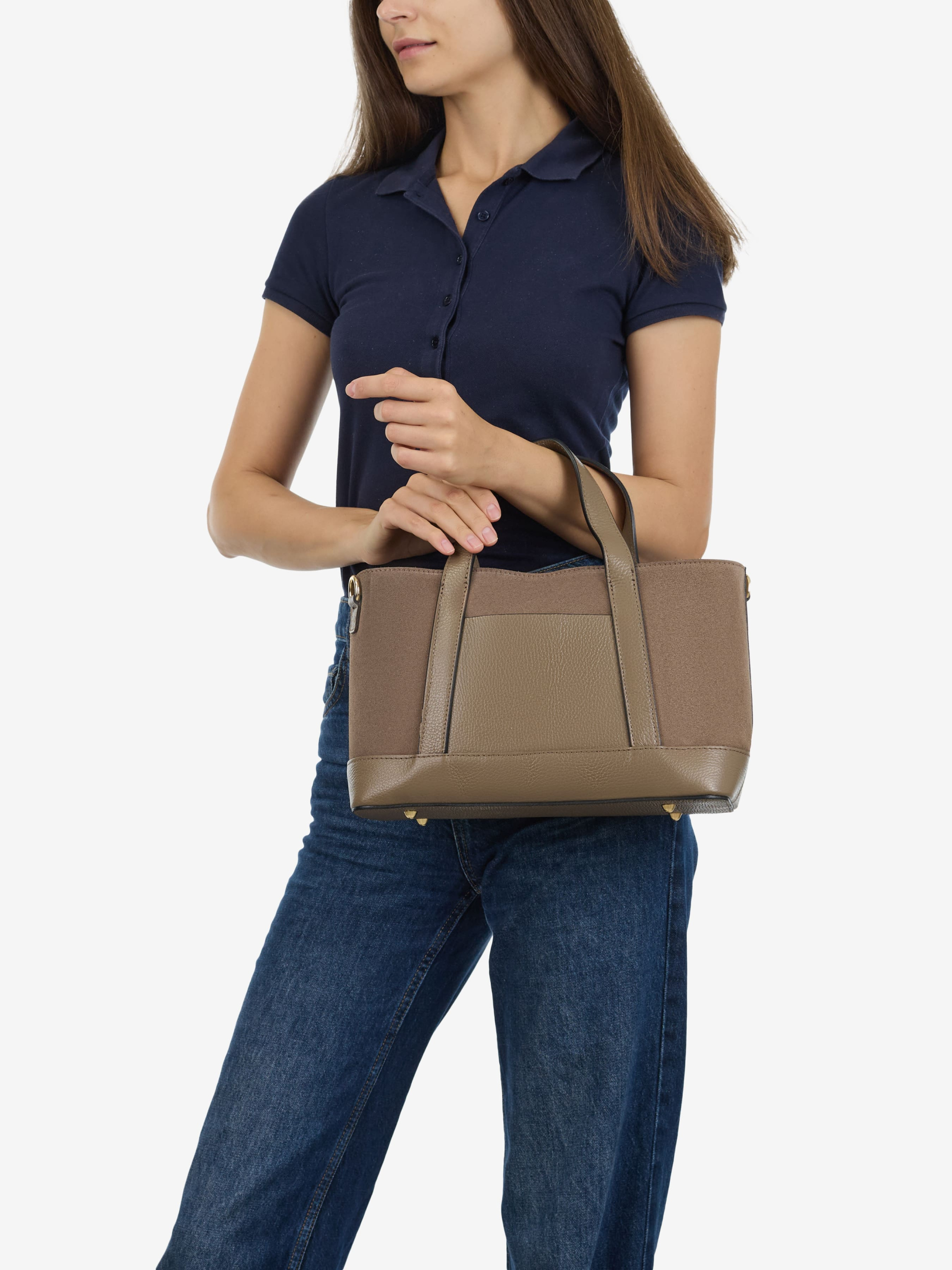 Детали: Материал: 100% натуральная замша, натуральная кожа флотар Фурнитура золотистого цвета Размеры (Ш x В x Г) - 32х21х12 см Внутри 1 отделение, 1 карманчик на молнии для мелочей, 2 карманчика без молнии, 1 карманчик спереди Подкладка: хлопок Застежка: молния Ремешок кожаный, съемный, регулируется, максимальная длина 110 см Высота ручки 12 см