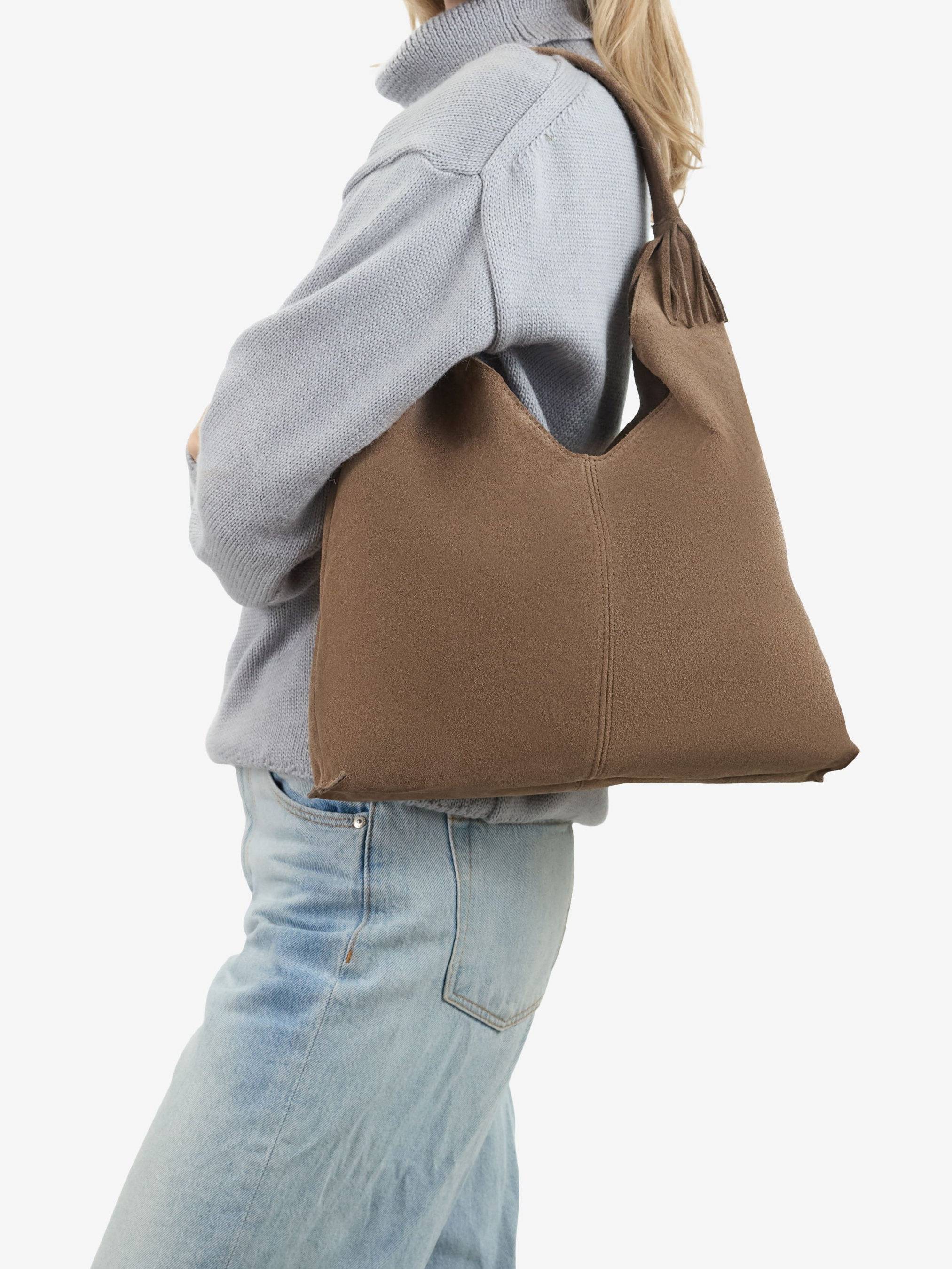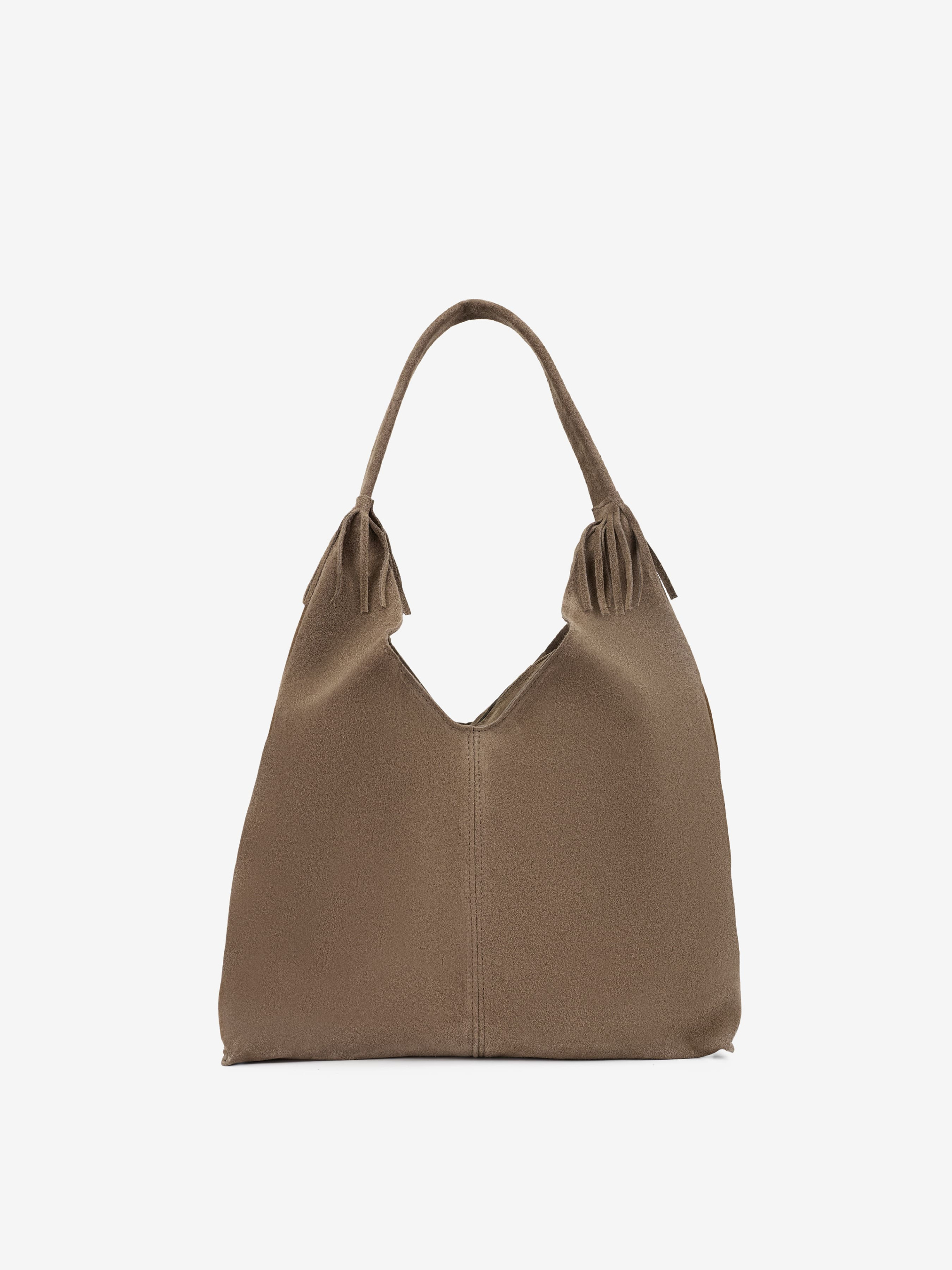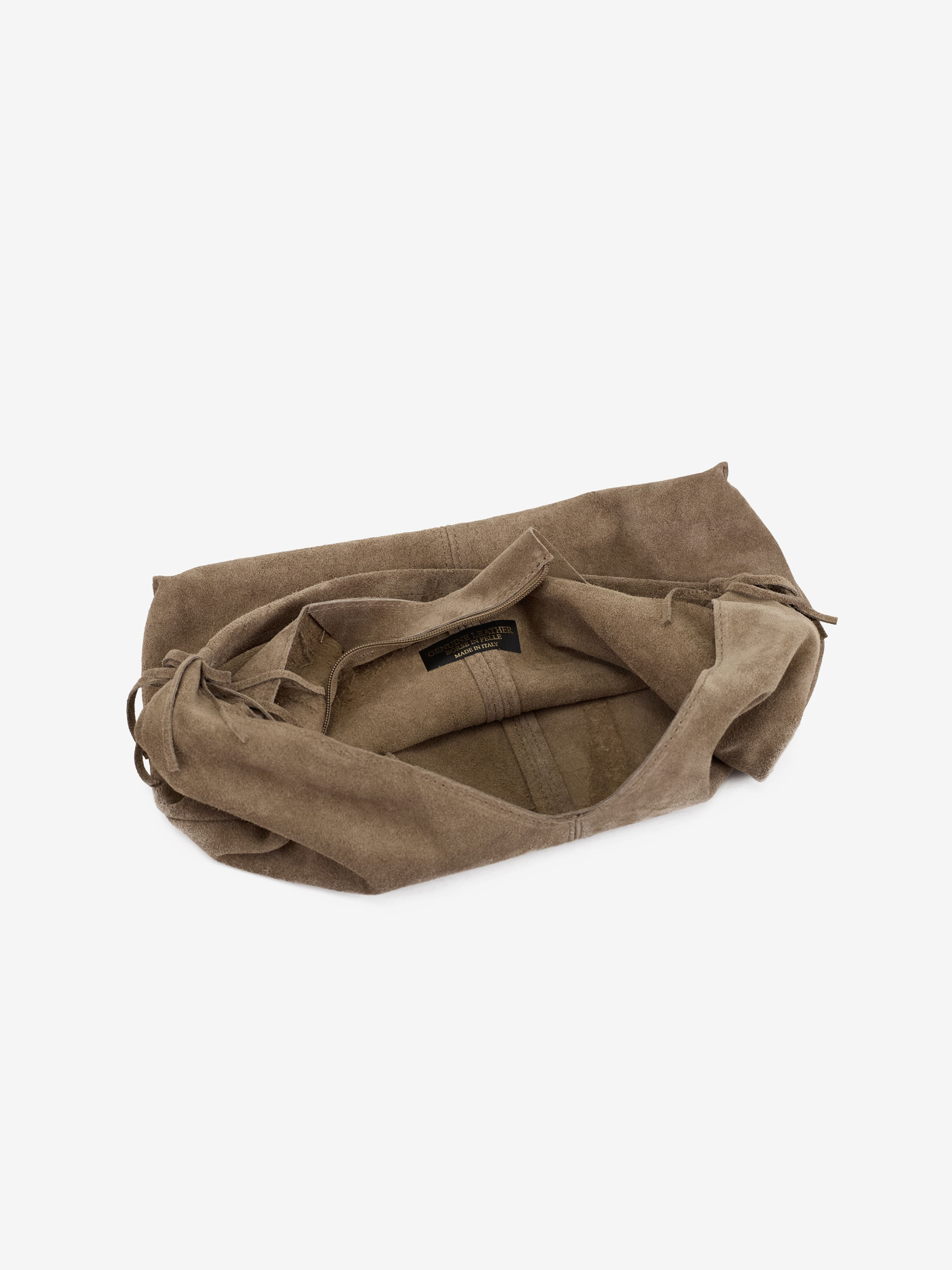 Детали: Материал: 100% натуральная замша Фурнитура золотистого цвета Размеры (Ш x В x Г) - 35 x 25 x 8 см Внутри 2 отделения, разделены карманом на молнии и 3 карманчика для мелочей, один на молнии Подкладка: хлопок Застежка: молния Высота ручки 18 см Ремешок кожаный, съемный, регулируется, максимальная длина 110 см