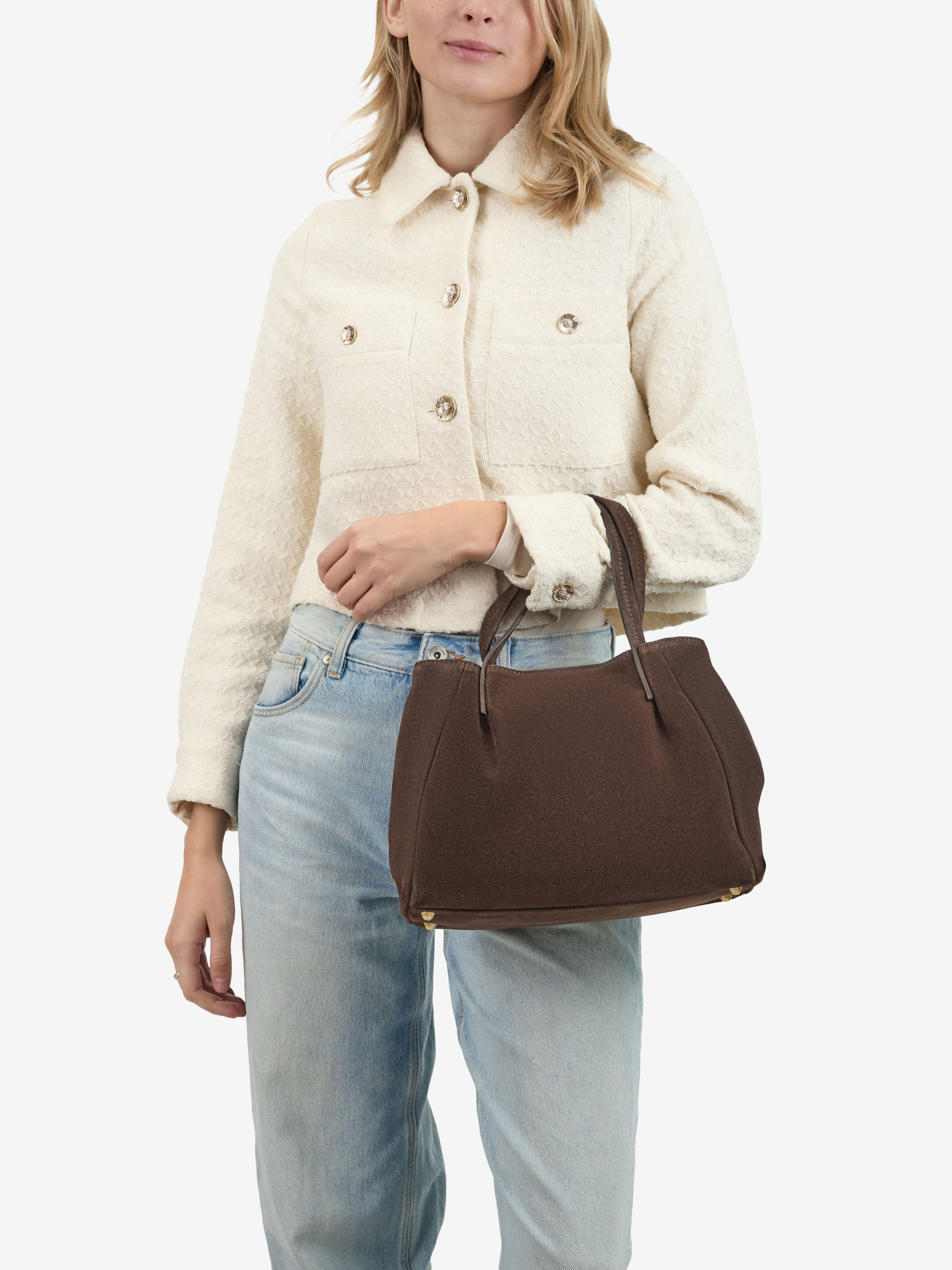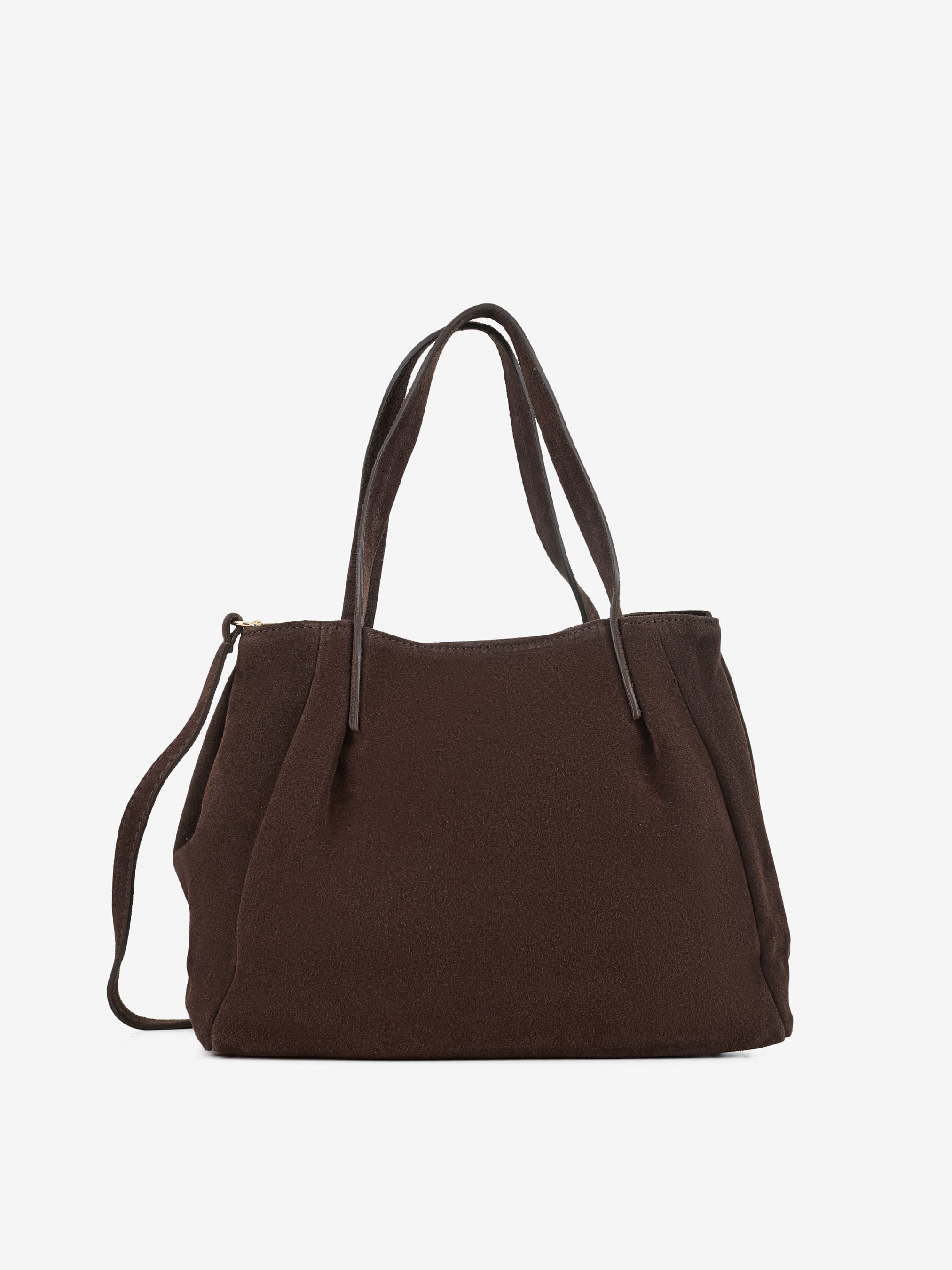 Детали: Материал: 100% натуральная замша Фурнитура золотистого цвета Размеры (Ш x В x Г) - 30 x 24 x 11 см Внутри 2 отделения, разделены карманом на молнии и 3 карманчика для мелочей, один на молнии Подкладка: хлопок Застежка: магнит Высота ручек 16 см Ремешок замшевый съемный, регулируется, максимальная длина 110 см