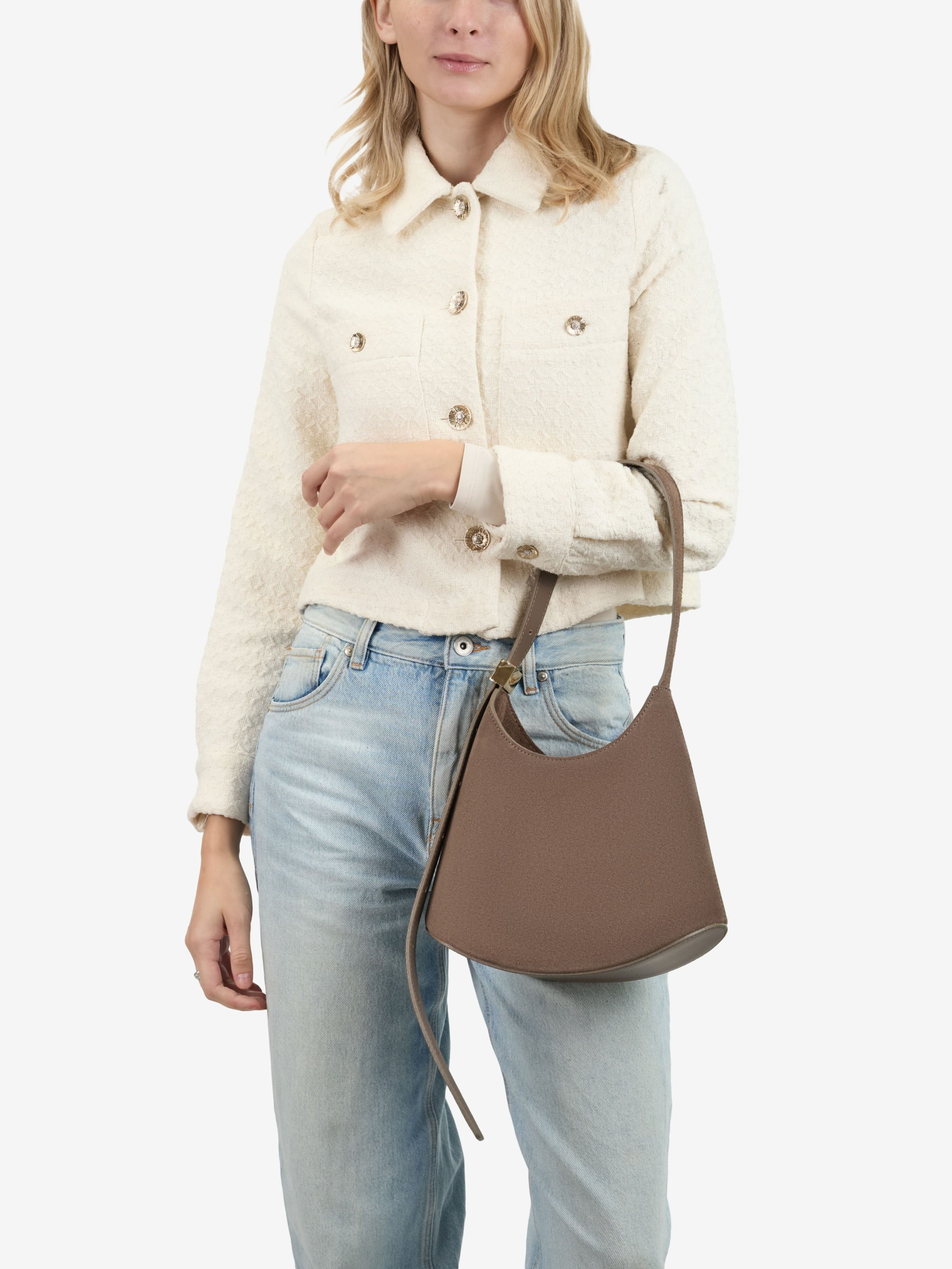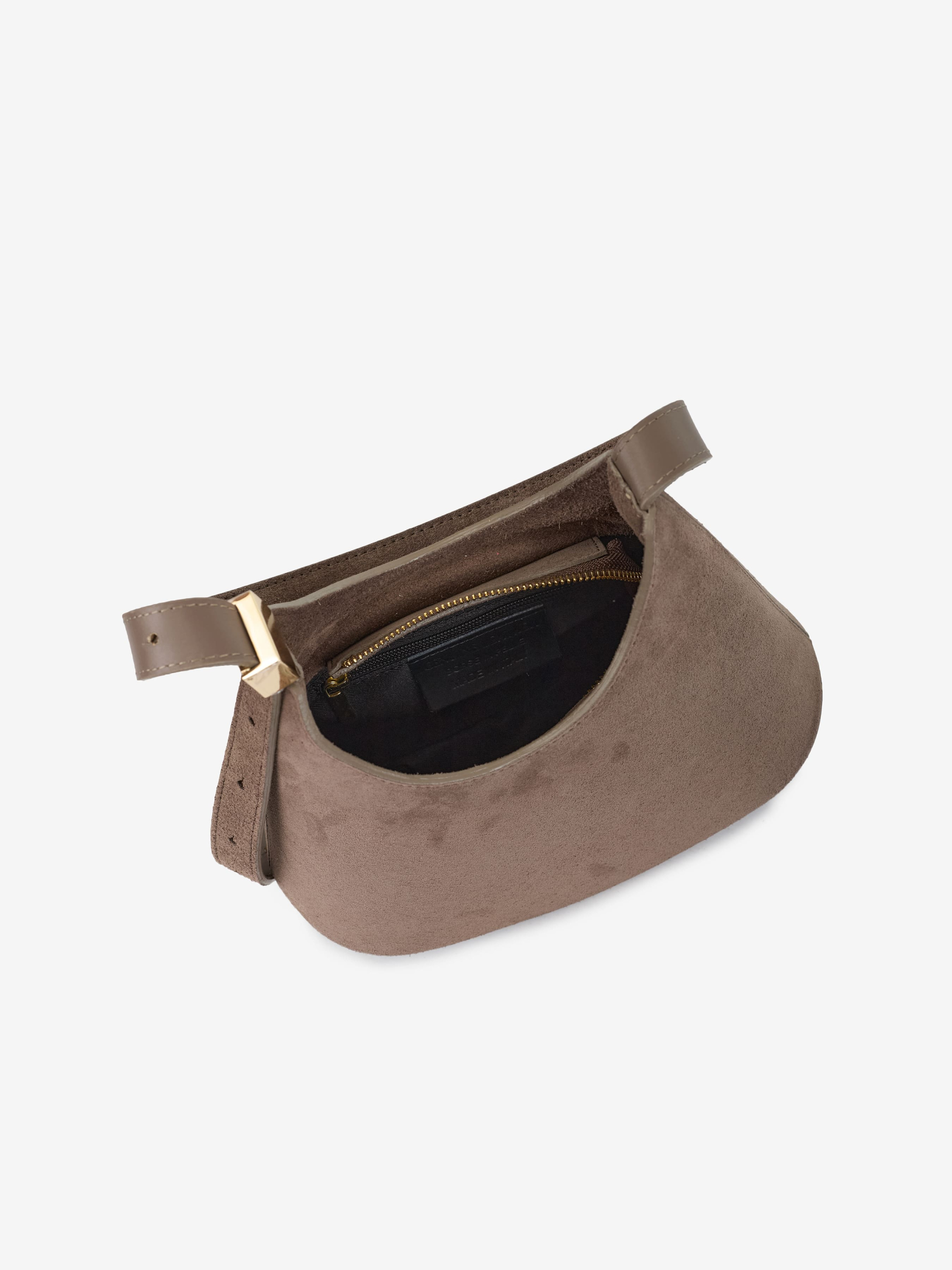 Детали: Материал: 100% натуральная замша Фурнитура золотистого цвета Размеры (Ш x В x Г) - 26 х 19 х 10 см Внутри 1 отделение, 2 карманчика для мелочей, один на молнии Подкладка: хлопок Застежка: молния Ремешок замшевый, несъемный, регулируется, максимальная длина 80 см