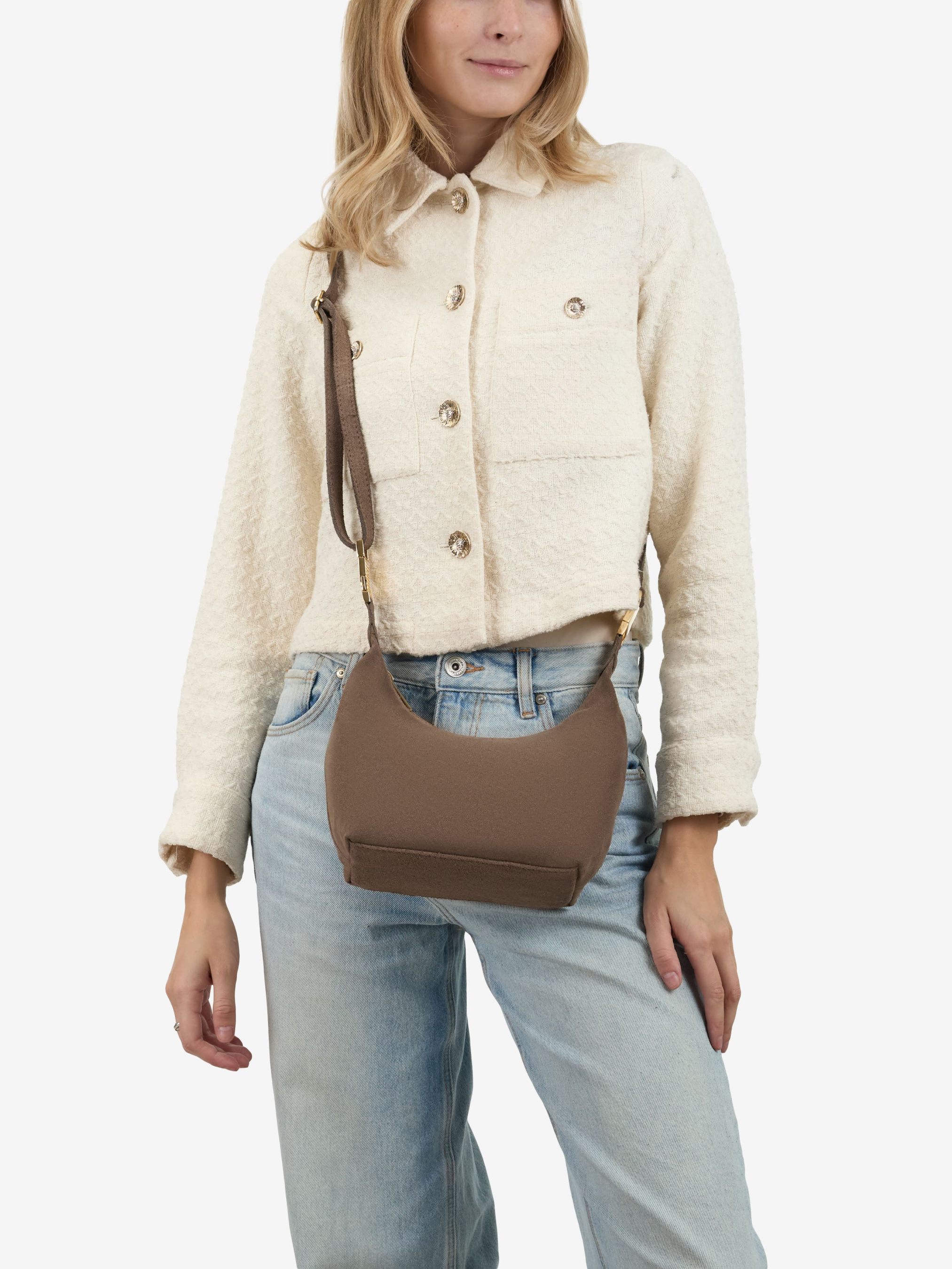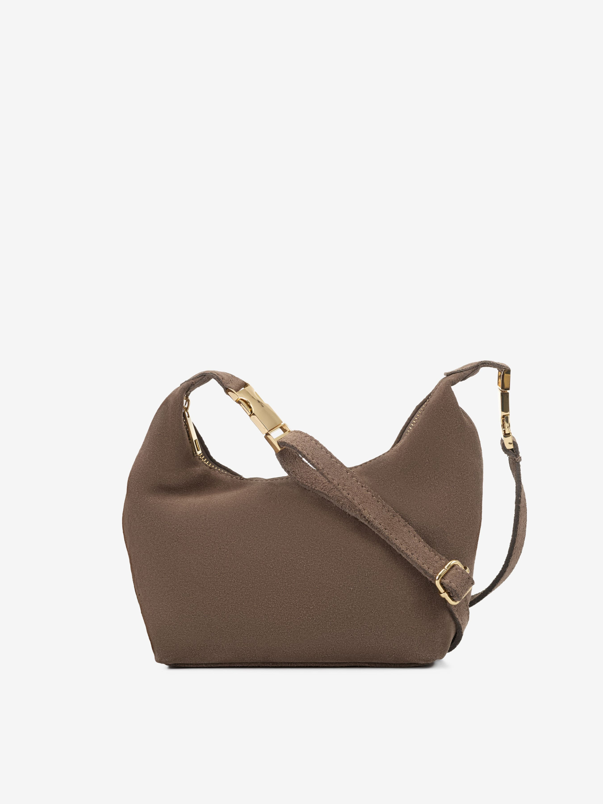 Детали: Материал: 100% натуральная замша Фурнитура золотистого цвета Размеры (Ш x В x Г) - 18 х 15 х 9 см Внутри 1 отделение, 1 карманчик для мелочей на молнии Подкладка: хлопок Застежка: молния Ремешок замшевый, съемный, регулируется, максимальная длина 110 см Высота ручек 8 см