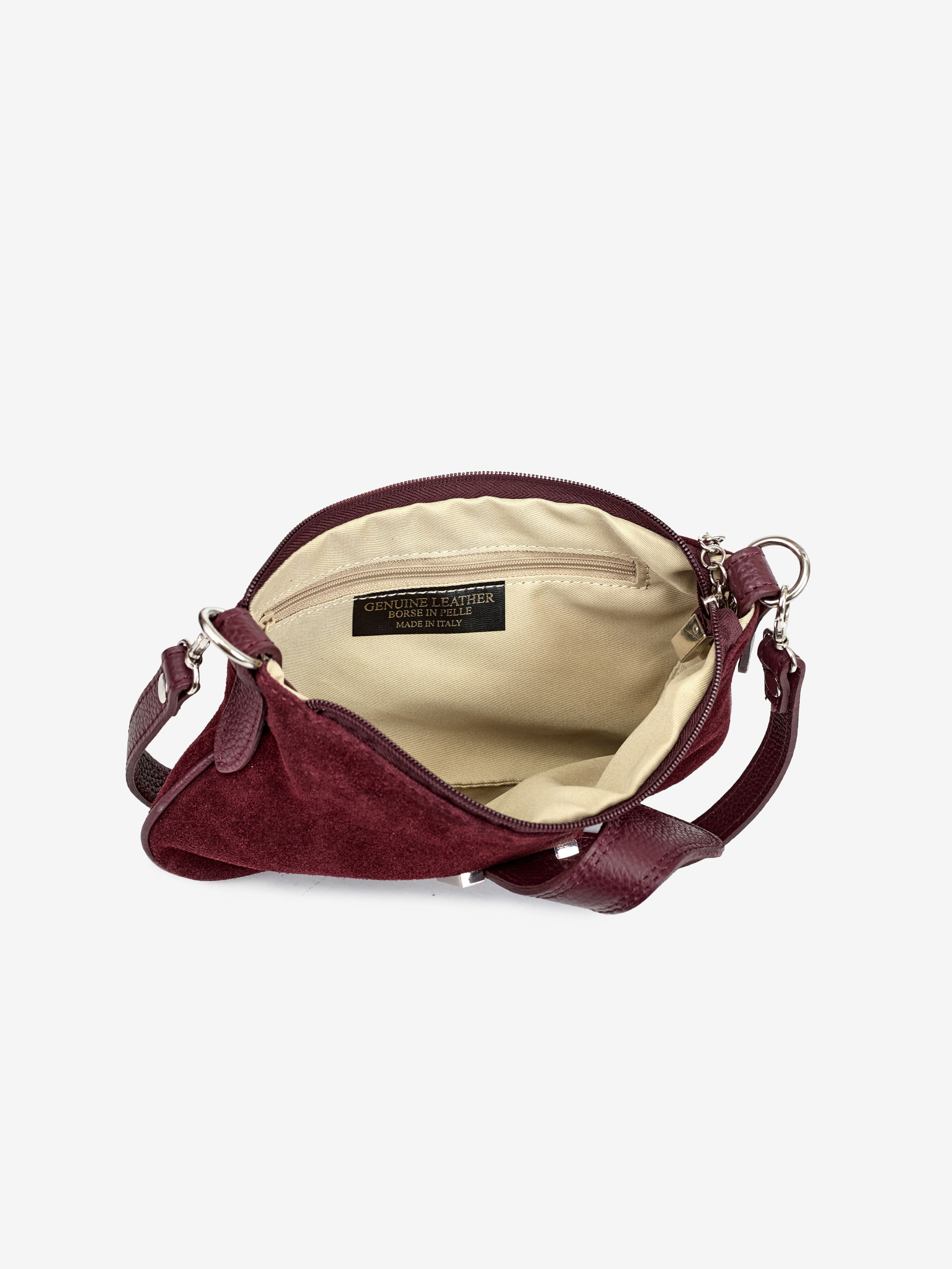 Детали: Материал: 100% натуральная замша Фурнитура серебристого цвета Размеры (Ш x В x Г) - 23 х 16 х 1 см Внутри 1 отделение, 1 карманчик на молнии для мелочей Подкладка: хлопок Застежка: молния , клапан на магните Ремешок кожаный, съемный, не регулируется, максимальная длина 115 см Высота ручки 25 см