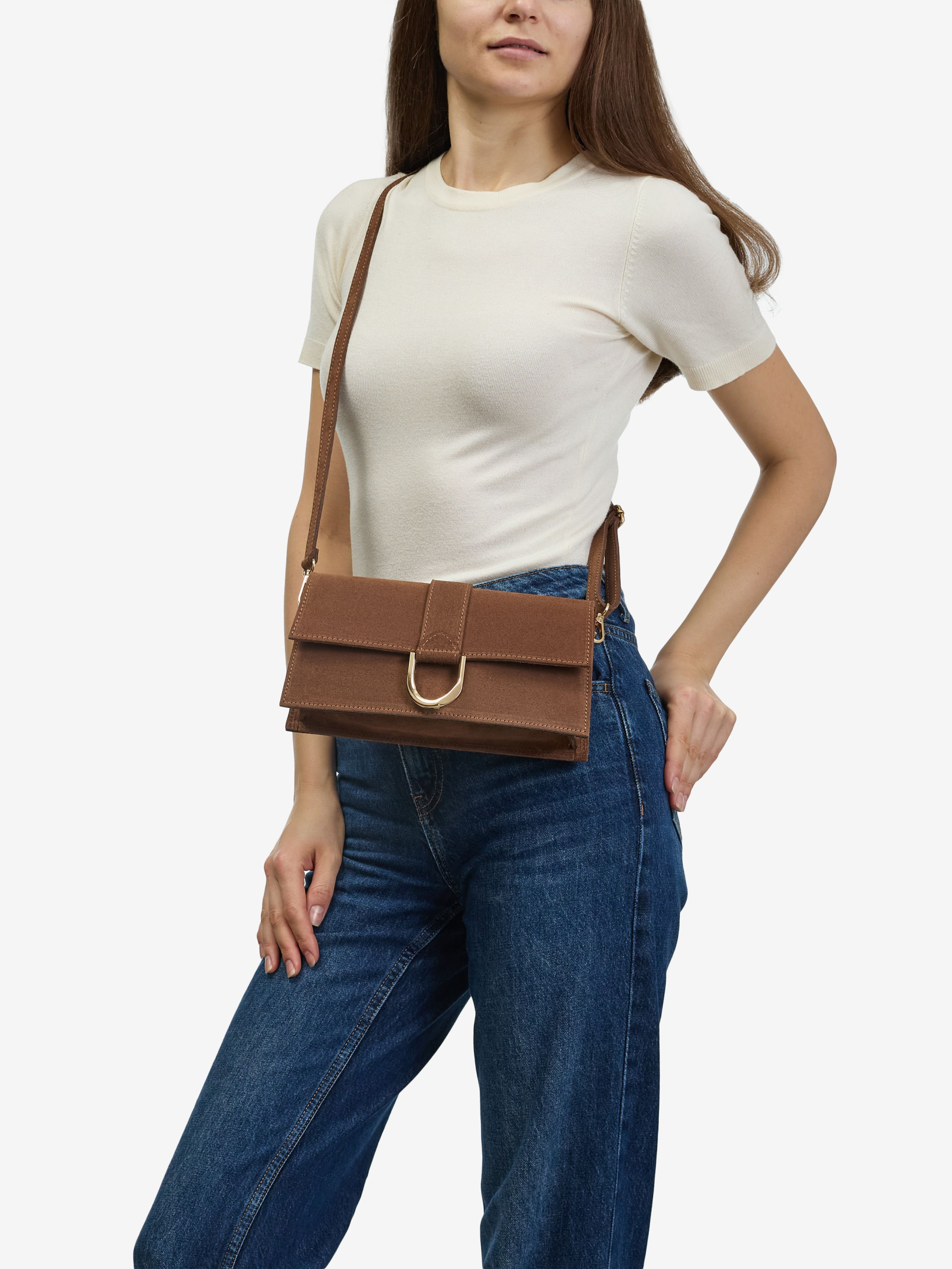 Детали: Материал: 100% натуральная замша Фурнитура золотистого цвета Размеры (Ш x В x Г) - 26 x 13 x 7 см Внутри 1 отделение , карманчик для мелочей без застежки Подкладка: отсутствует Застежка: клапан на магните Ремешок замшевый, съемный,регулируется, максимальная длина 120 см Высота ручки 20 см