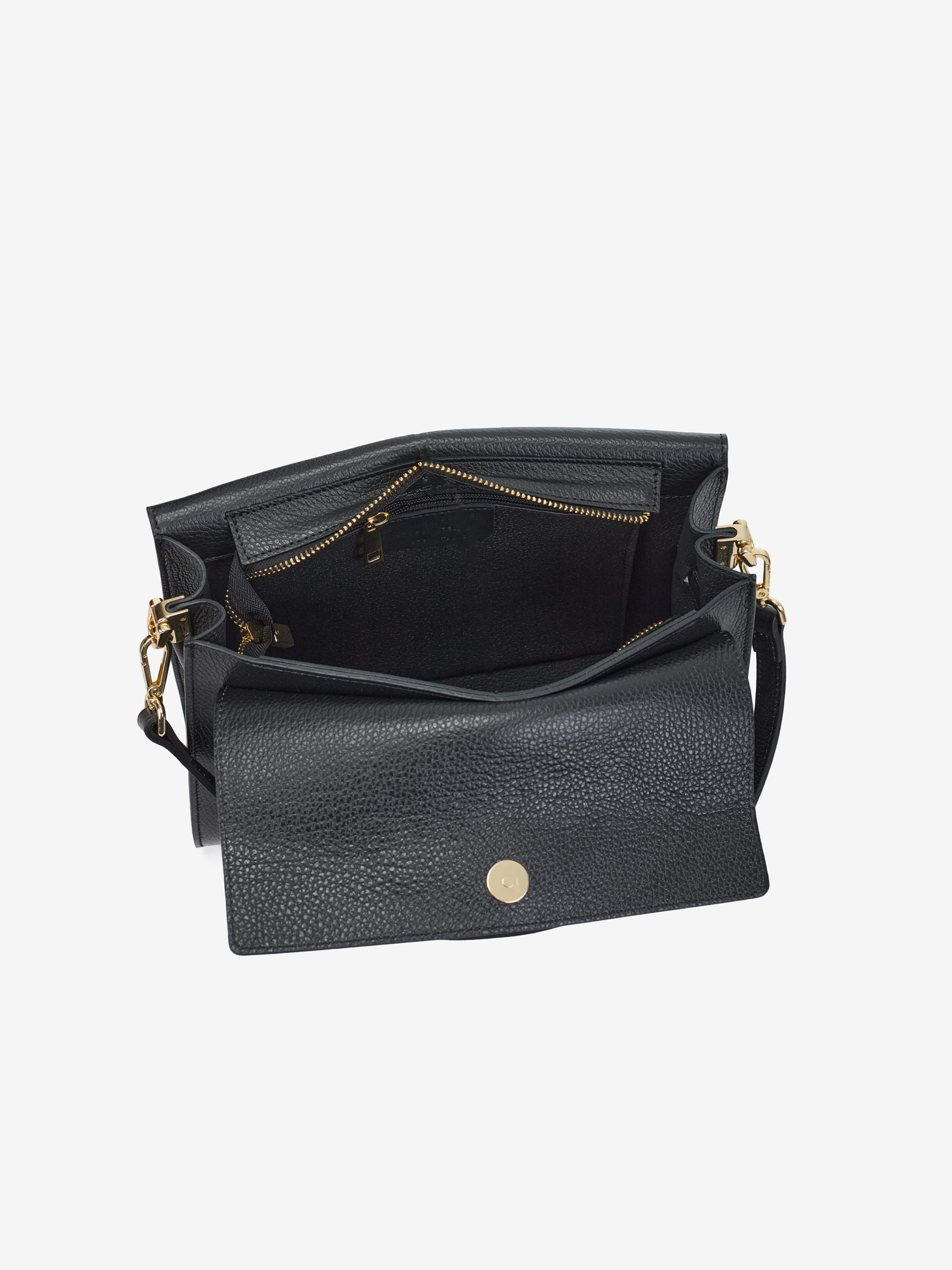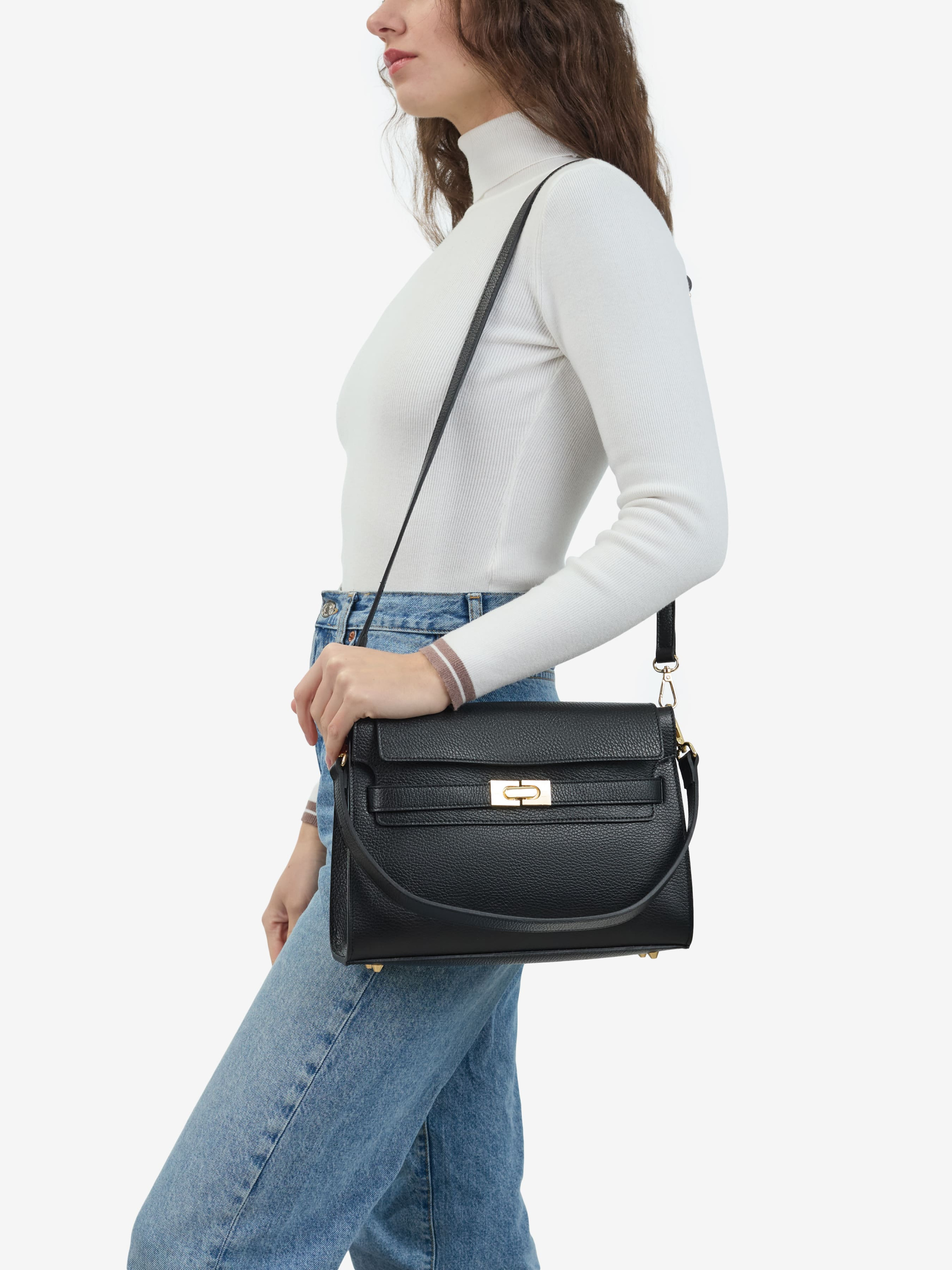Детали: Материал: 100% натуральная кожа флотар Фурнитура золотистого цвета Размеры (Ш x В x Г) - 29 x 20 x 9 см Внутри 1 отделение, 1 карманчик на молнии для мелочей Подкладка: нет Застежка: молния, клапан на магните Высота ручек 24 см Ремешок кожаный, регулируется, 105 см