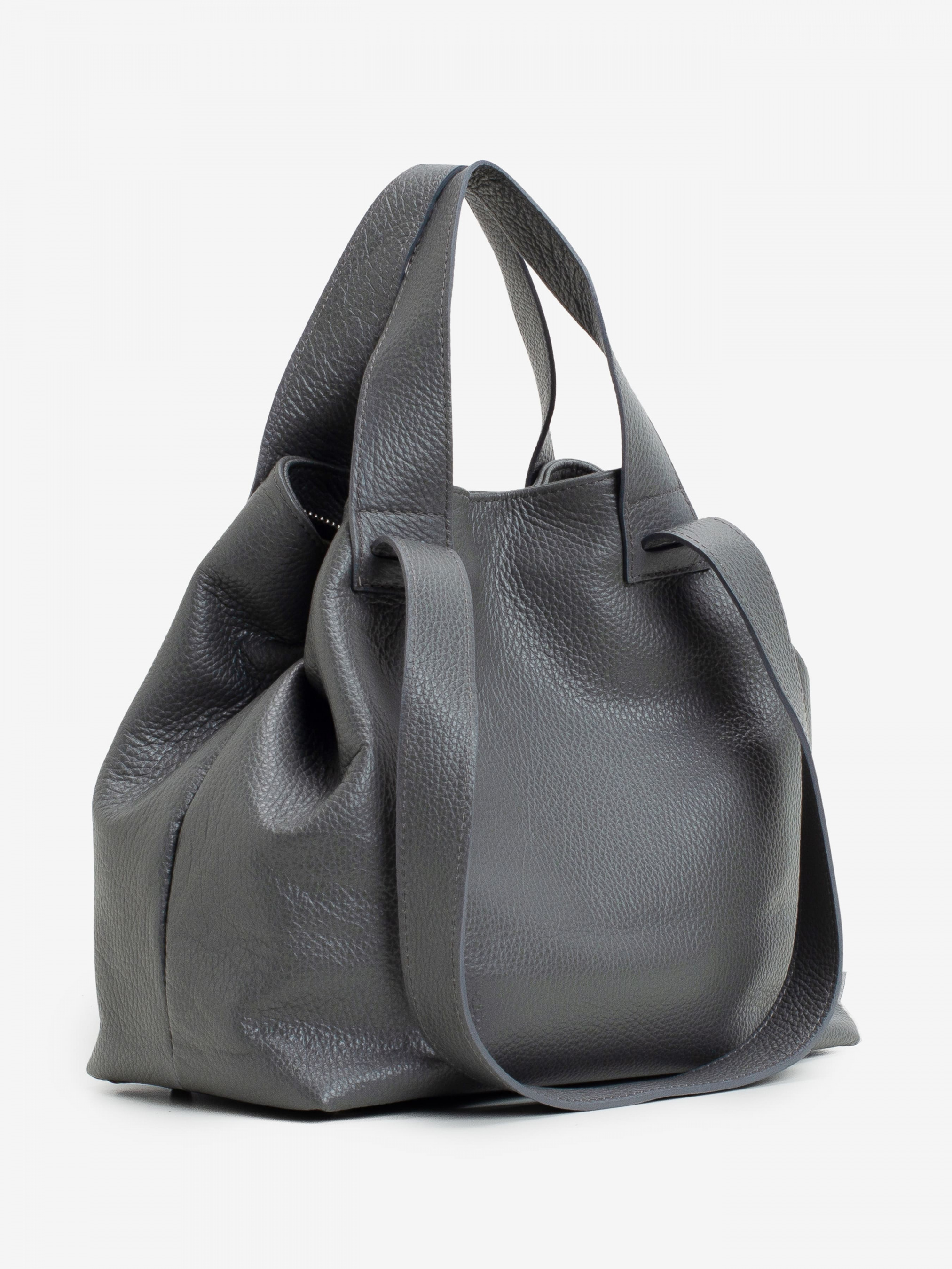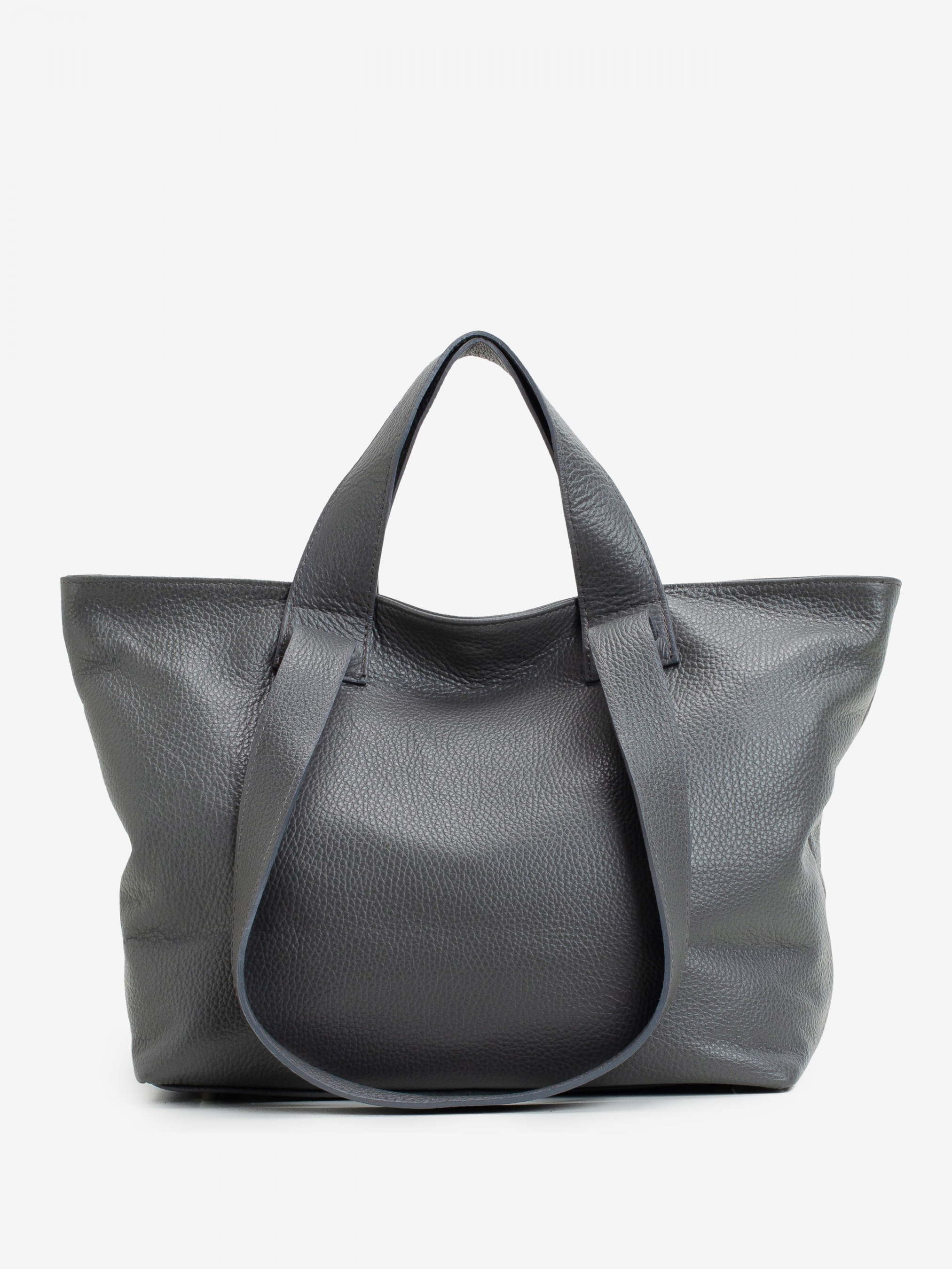 Детали: - Материал: 100% натуральная кожа - Кожа имеет фактуру флотар - Фурнитура серебристого цвета - Размеры (Ш x В x Г) - 31 x 26 x 13 см - Вмещает документы формата A4 - Внутри 2 отделения разделены карманом на молнии и 2 карманчика для мелочей - Подкладка: 100% хлопок - Застежка: молния - При помощи карабина можно менять форму и размер сумки