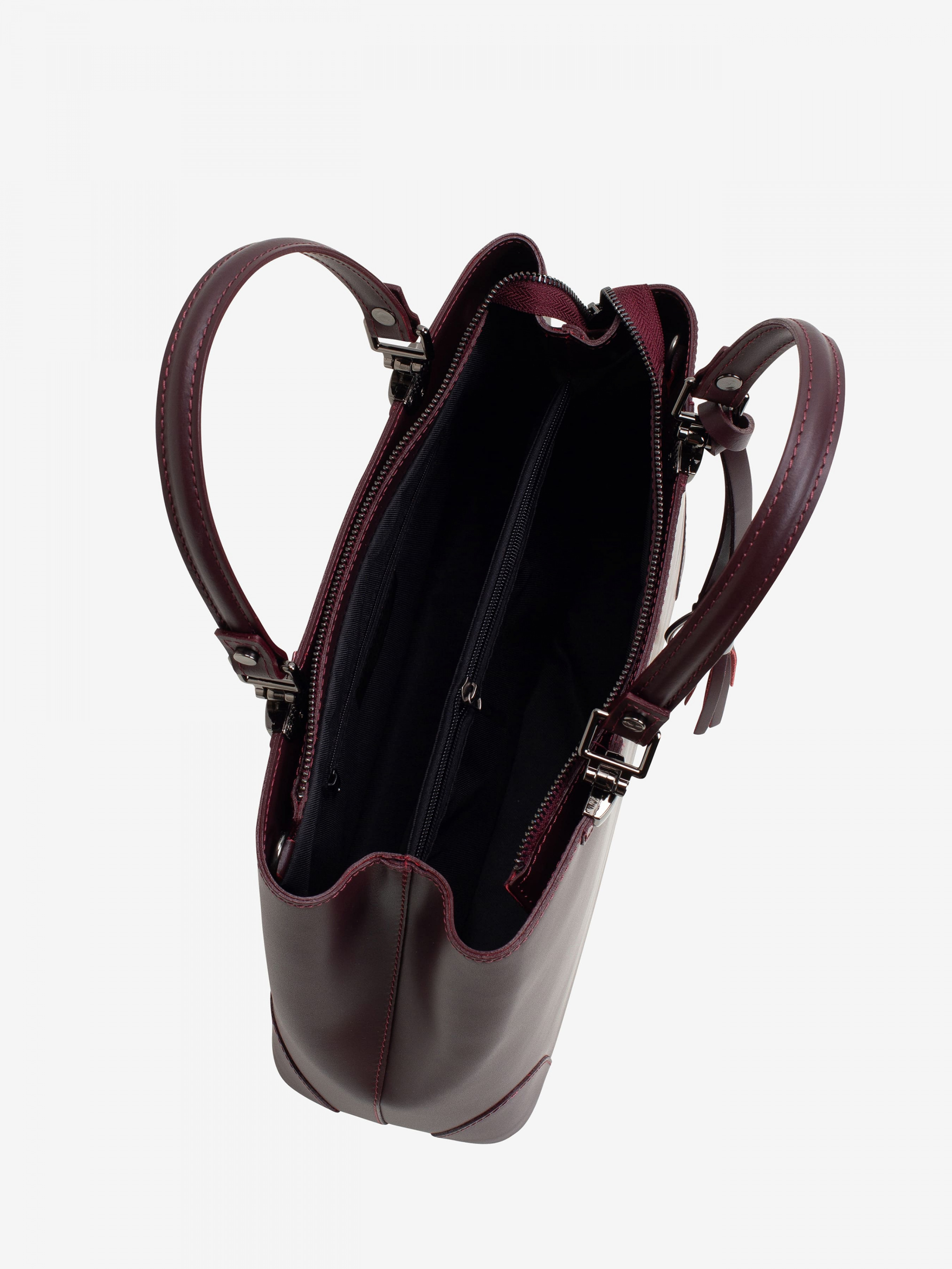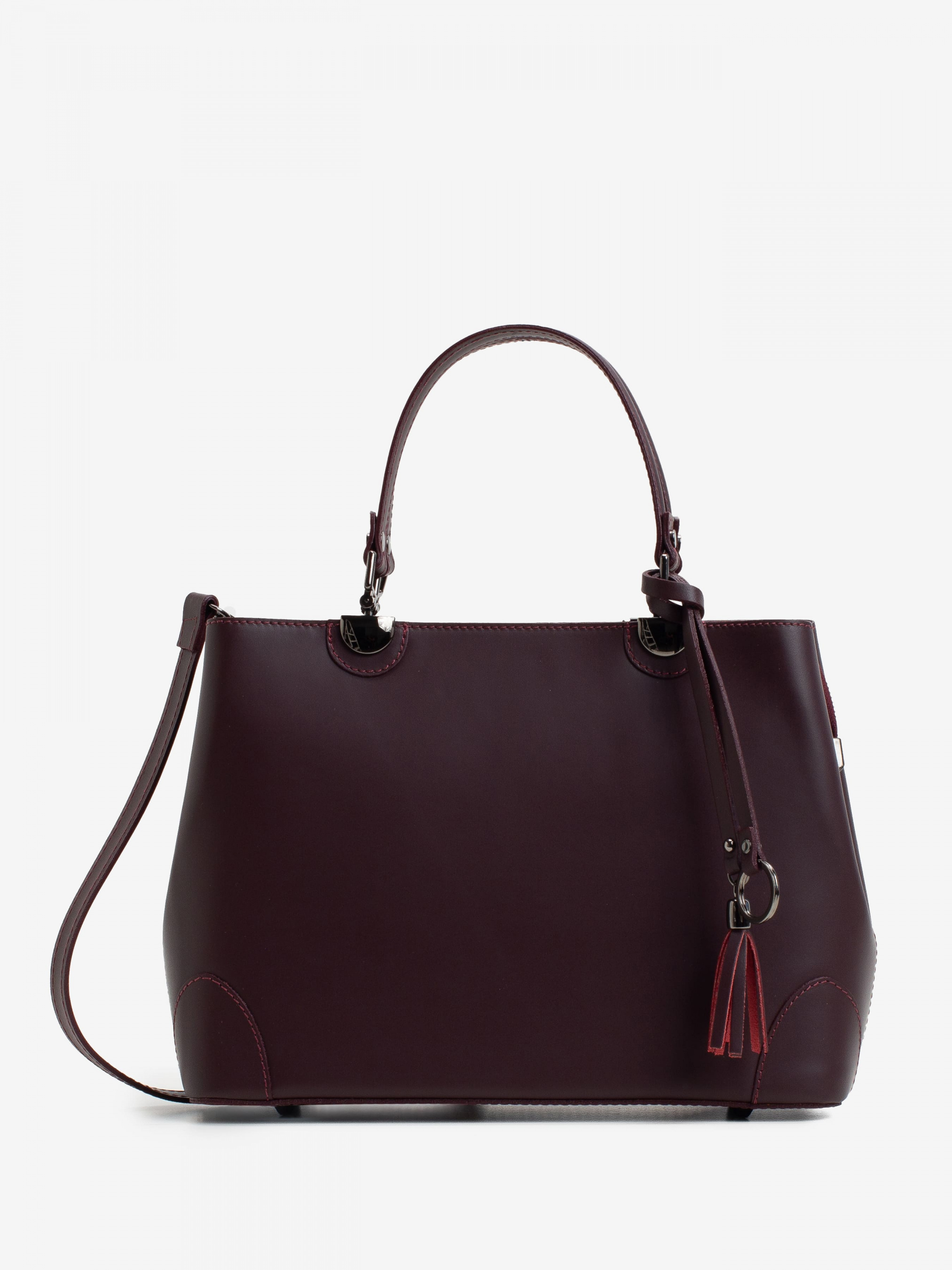 Детали: - Материал: 100% натуральная кожа - Кожа имеет гладкую фактуру - Фурнитура черного цвета - Размеры (Ш x В x Г) - 31 x 23 x 11 см - Внутри 2 отделения разделены карманом на молнии и 2 карманчика для мелочей - Подкладка: 100% хлопок - Застежка: молния - В комплекте ремешок для ношения на плече Дизайн: Сумка-тоут Regina Notte 8228 - находка для дам, которые ценят изысканные и одновременно практичные вещи. В нее очень удобно положить документы и разные женские "нужности". Они не помнутся и не вывалятся наружу, так как модель имеет жесткий каркас и надежную молнию. Две короткие ручки оригинально оформлены. Внизу изделия нашиты округлые "латки", которые делают его интереснее и защищают от повреждений наиболее уязвимые места - уголки. Есть украшение - полоска кожи с кисточкой и кольцом на концах.