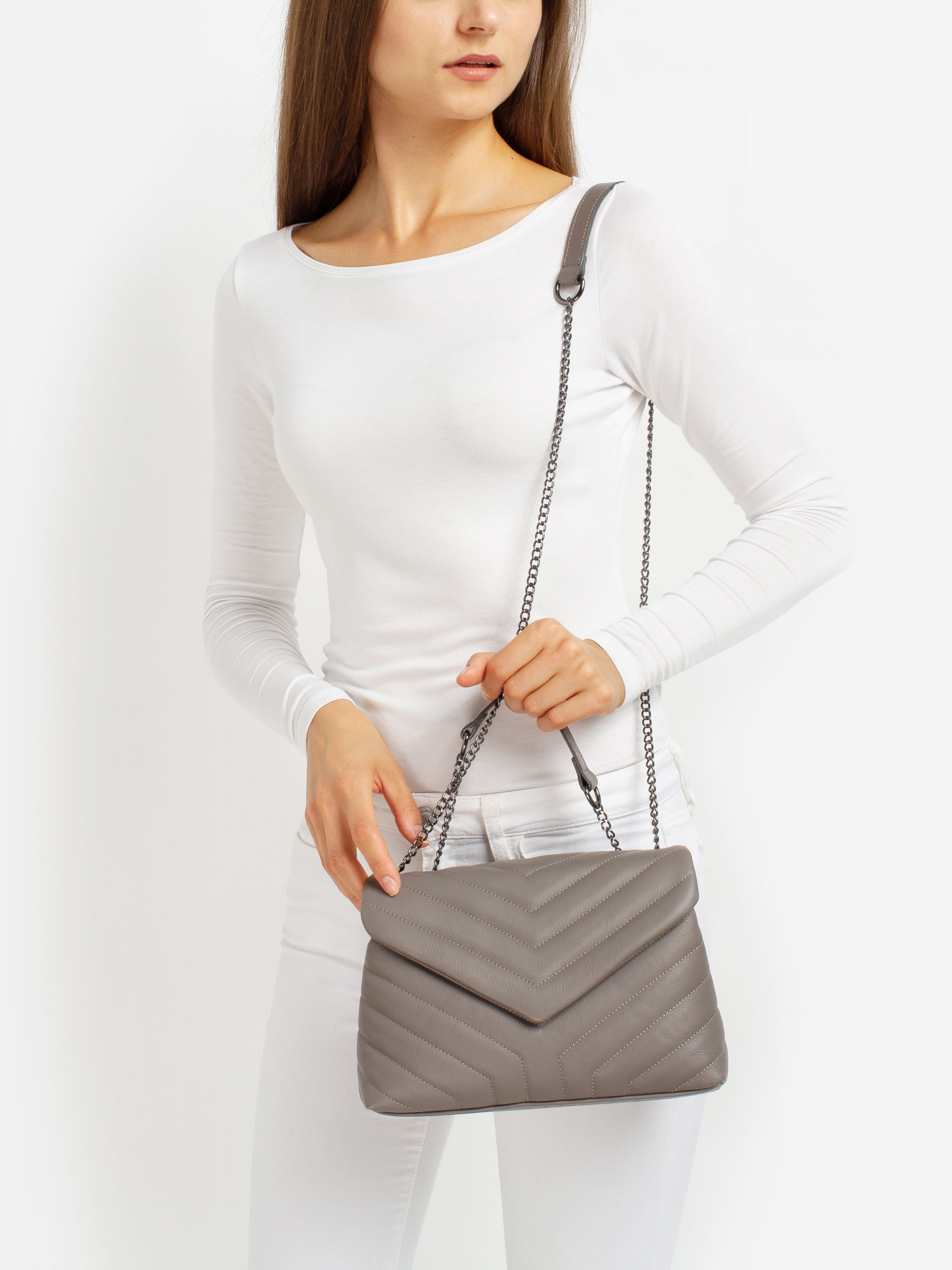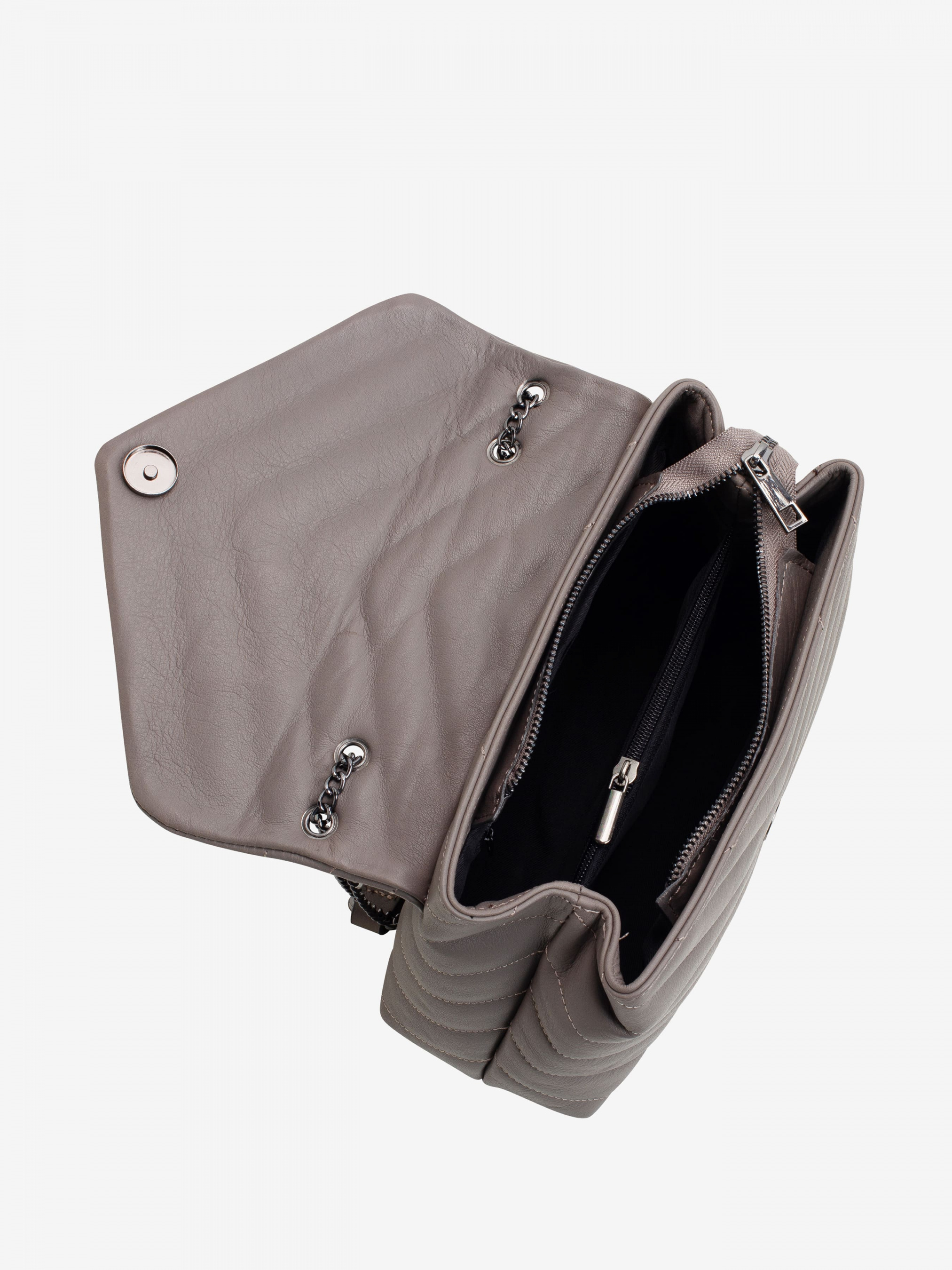 Детали: Материал: 100% натуральная кожа Кожа наппа стеганая Фурнитура черного цвета Размеры (Ш x В x Г) - 26 x 17 x 8 см Внутри 2 отделения разделены карманом на молнии Подкладка: 100% хлопок Застежка: молния Можно менять длину цепочки и носить как на коротких ручках так и через плечо Дизайн: Кросс-боди Regina Notte 3023 из стеганой мягкой кожи наппа с чистыми линиями - идеальный вариант для повседневного или вечернего выхода. Регулируемый ремешок-цепочка превращает этот стиль в форму через плечо, а внутреннее функциональное пространство позволит без труда хранить ваш телефон, кошелек и ключи.