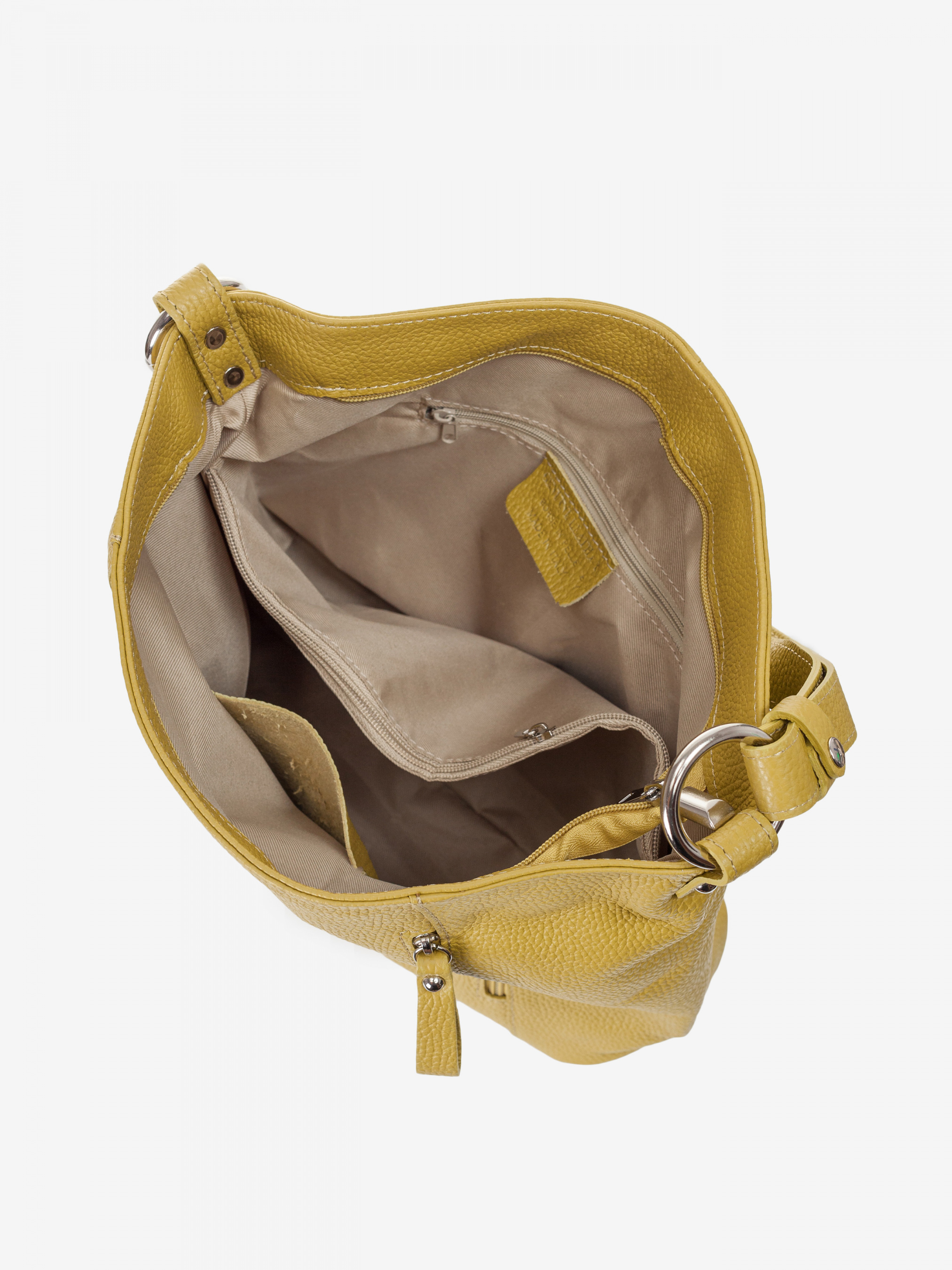 Детали: - Материал: 100% натуральная кожа - Кожа имеет фактуру флотар - Фурнитура серебристого цвета - Размеры (Ш x В x Г) - 35 x 28 x 11 см - Внутри 2 отделения разделены карманом на молнии и 2 карманчика для мелочей один на молнии и один без застежки - Спереди вертикальный карманчик на молнии - Сзади карманчик на молнии - Вмещает документы формата A4 - Подкладка: 100% хлопок - Ремешок несъемный регулируется, складывается в одну ручкувысотой 23 см, максимальная высота в виде ремешка 46 см - Застежка: молния
