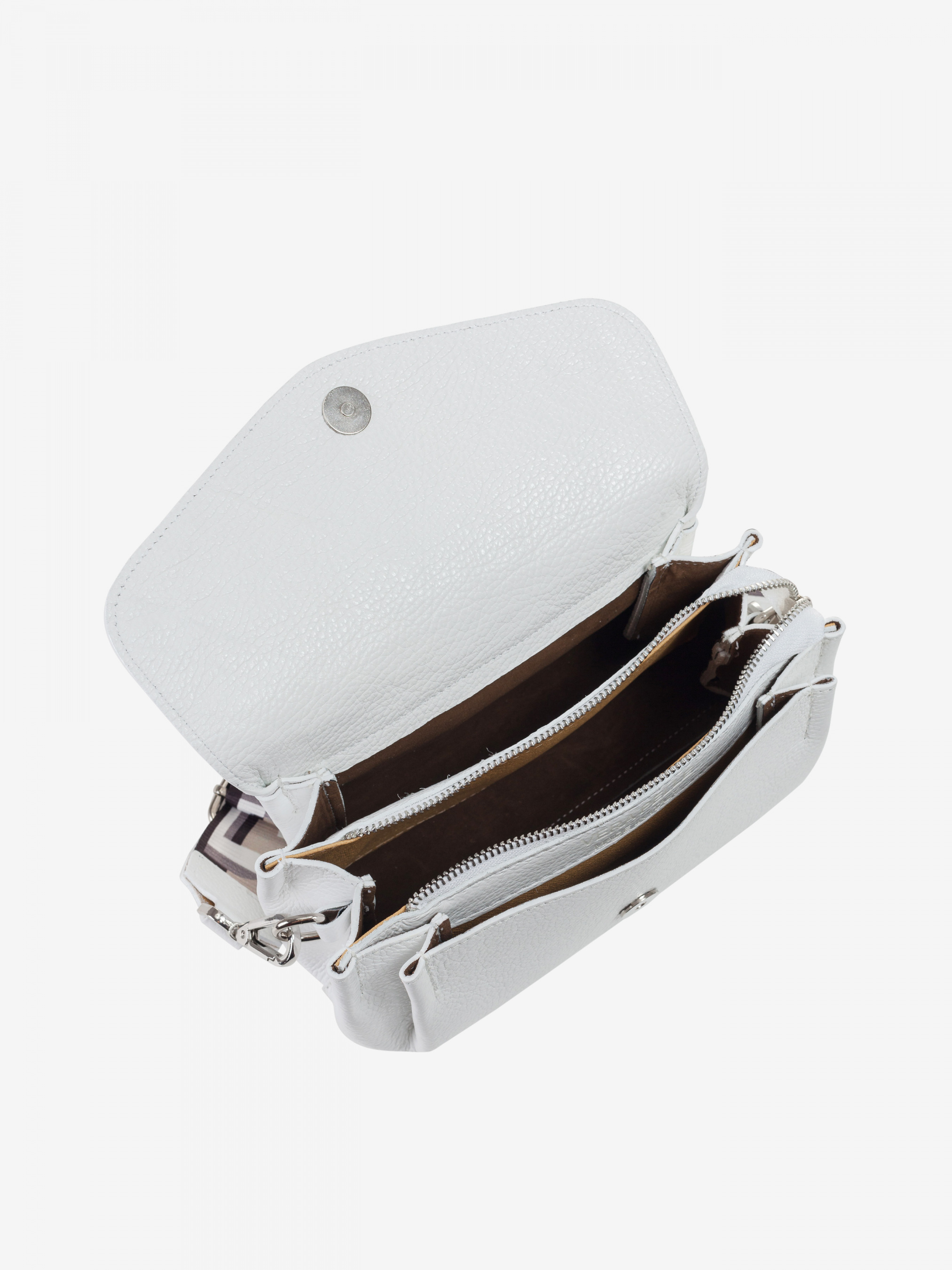 Детали: - Материал: 100% натуральная кожа - Кожа имеет фактуру флотар - Фурнитура серебристого цвета - Размеры (Ш x В x Г) - 22 x 14 x 10 см - Внутри 2 отделения разделены карманом на молнии - Застежка: магнит - В комплекте ремешок для ношения на плече