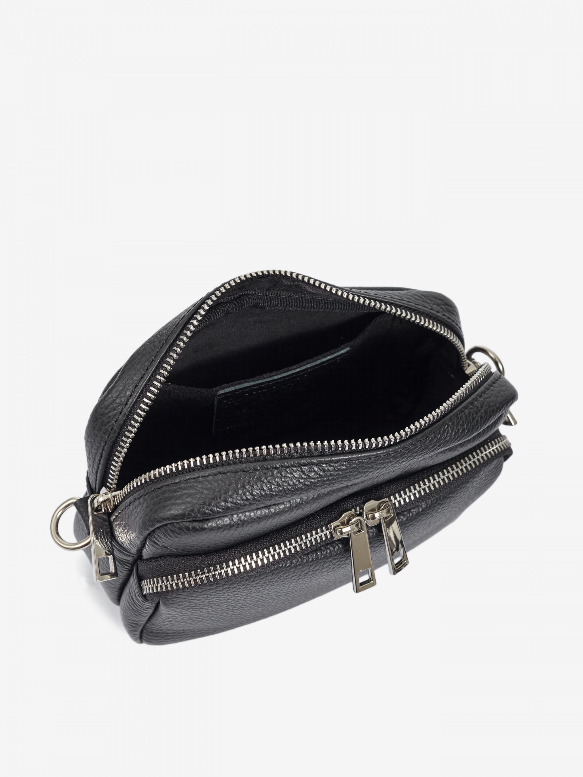 Детали: Материал: 100% натуральная кожа Кожа имеет фактуру флотар Фурнитура серебристого цвета Размеры (Ш x В x Г) - 20 х 14 х 8 см Внутри 1 отделение и 1 карманчик для мелочей без застежки, впереди карманчик на молнии Подкладка: хлопок Застежка: молния В комплекте ремешок для ношения на плече (текстильный съемный на карабинах, регулируется, максимальная длина 140 см)