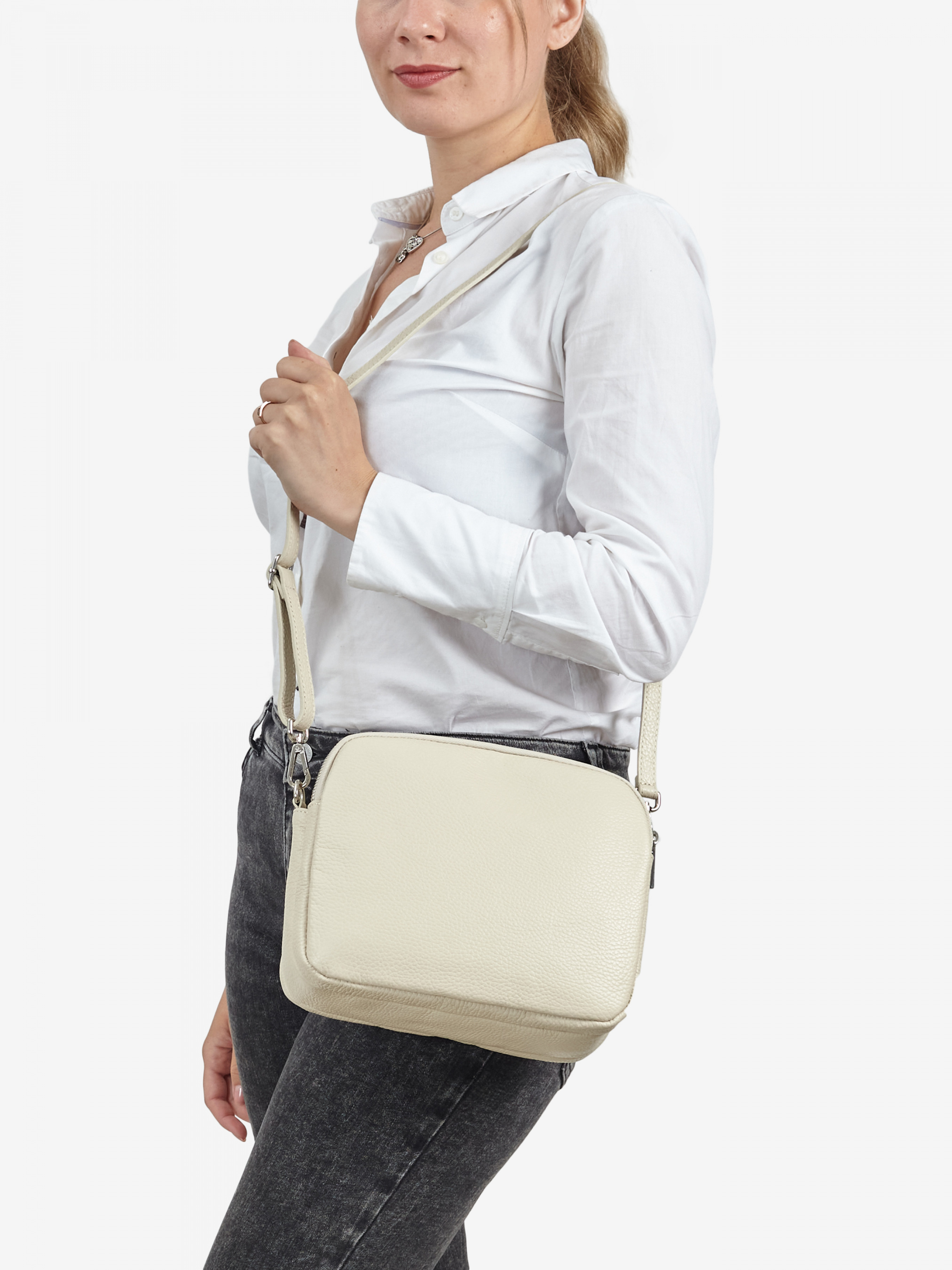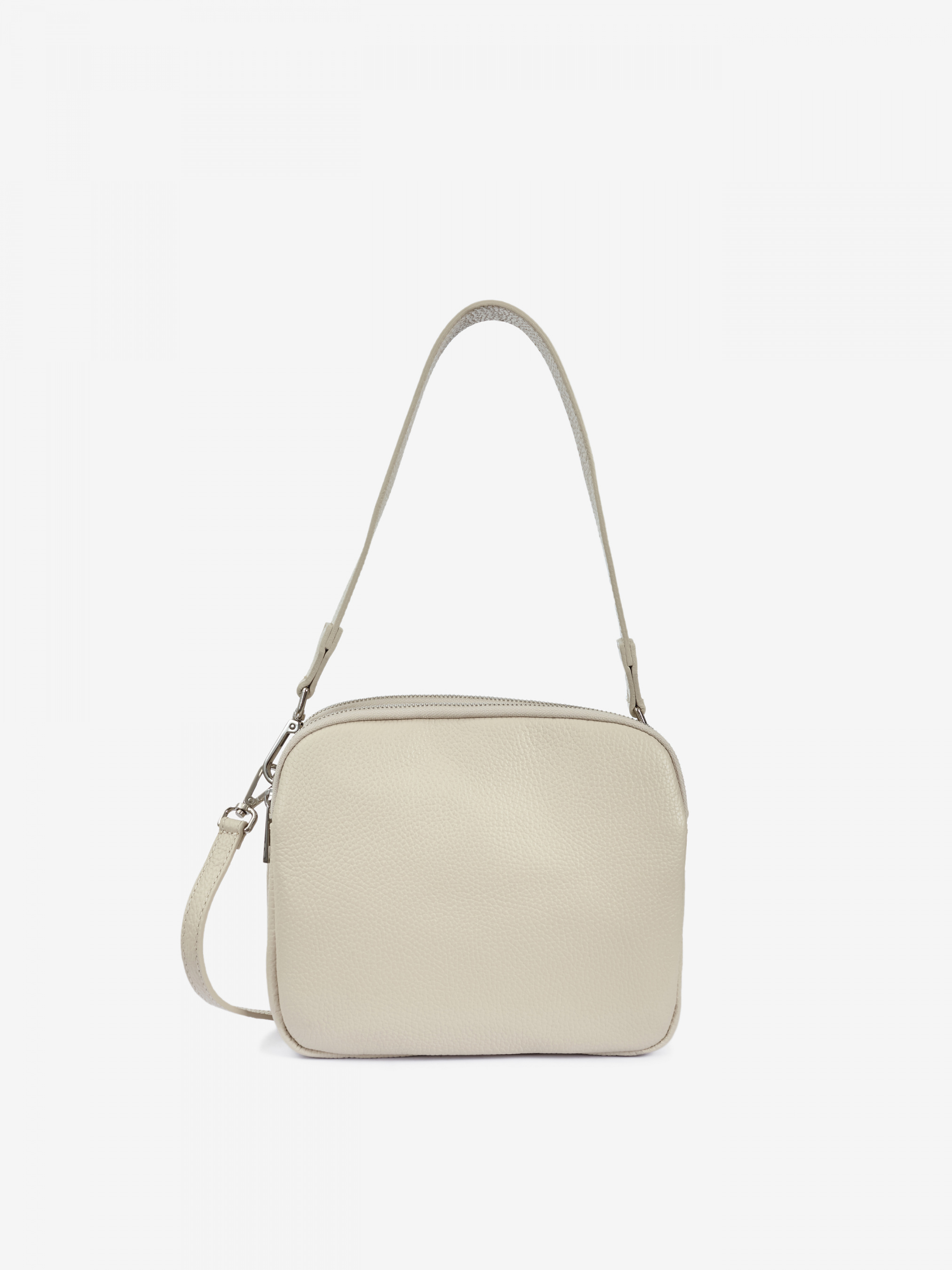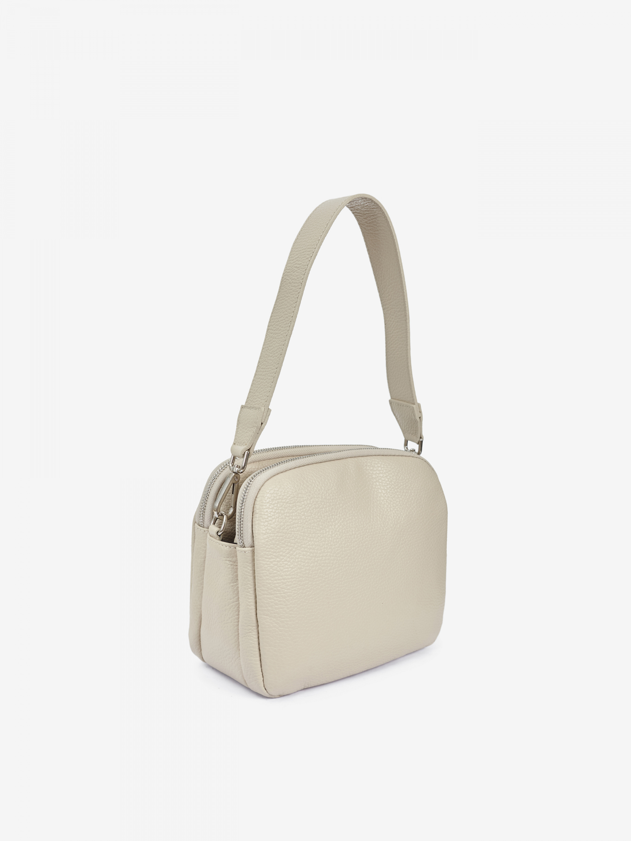 Детали: - Материал: 100% натуральная кожа - Кожа имеет фактуру флотар - Фурнитура серебристого цвета - Размеры (Ш x В x Г) - 23 x 18 x 10 см - Внутри 3 раздельных отделения, 2 на молнии и одно на магните - Подкладка: 100% хлопок - Застежка: молния и магнит - В комплекте ремешок для ношения на плече