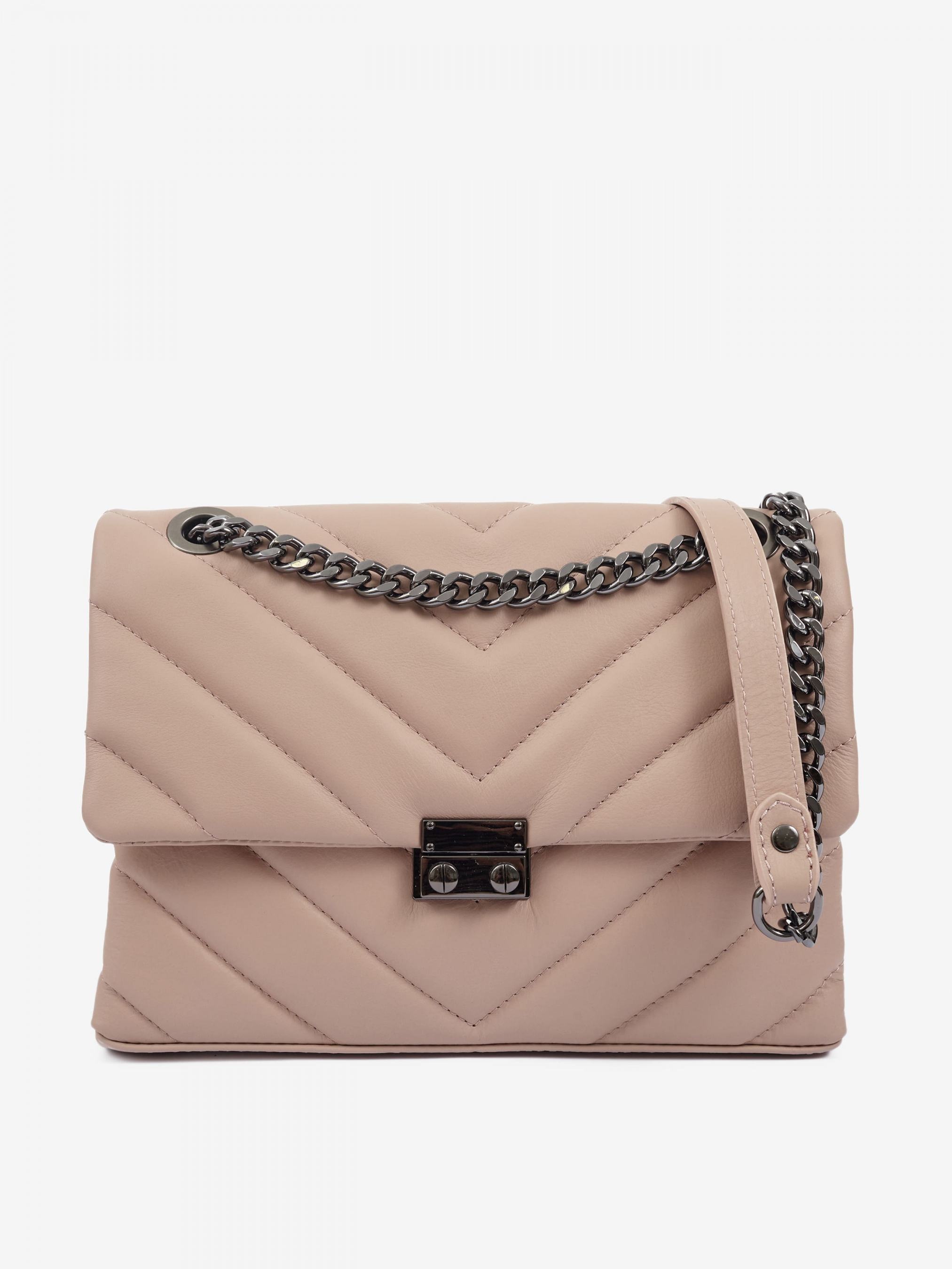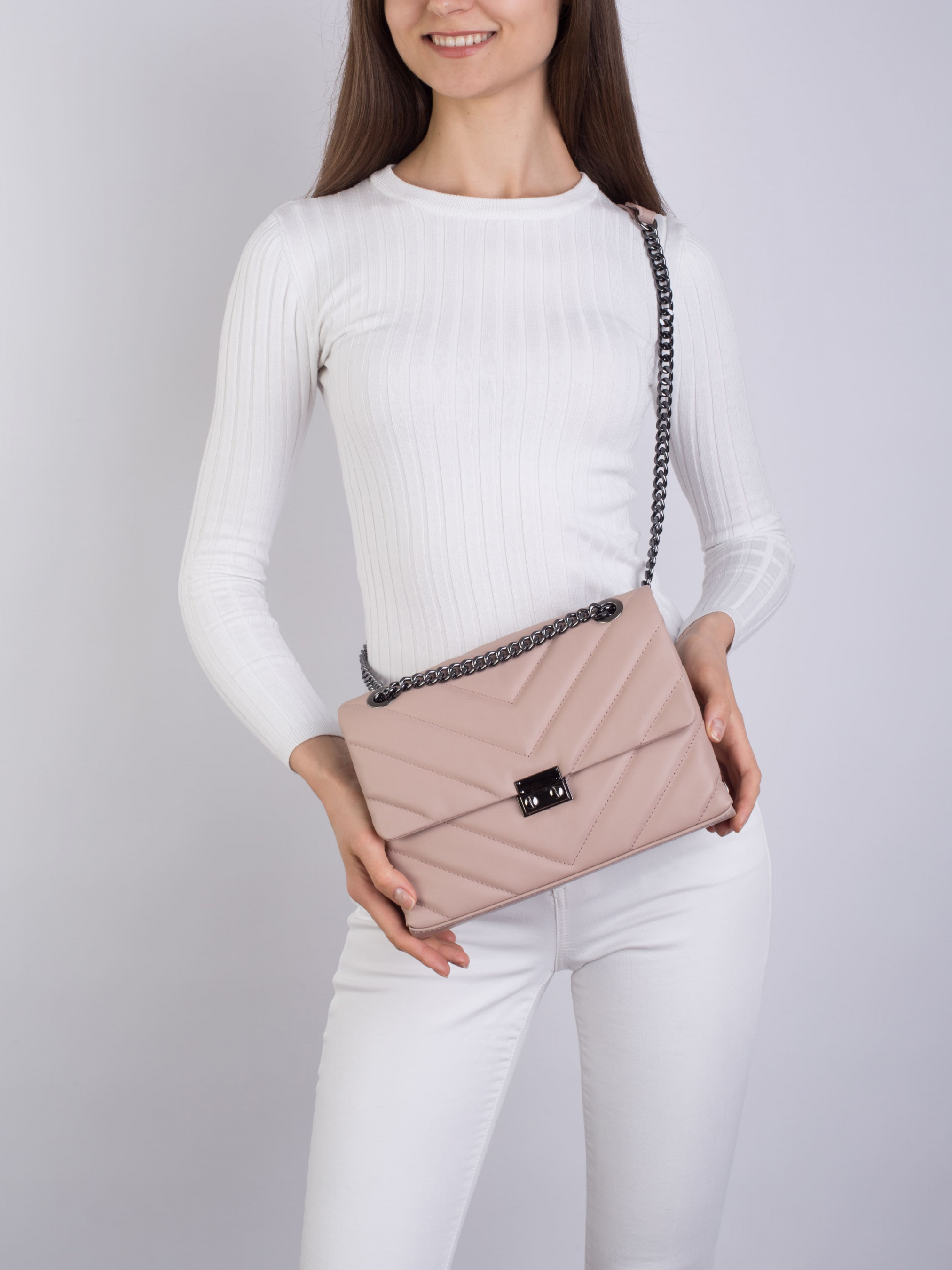 Детали: Материал: 100% натуральная кожа Кожа наппа стеганая Фурнитура черного цвета Размеры (Ш x В x Г) - 26 x 18 x 10 см Внутри 2 раздельных отделения без застежки и 1 карманчик для мелочей на молнии Застежка: портфельная Подкладка: 100% хлопок Цепочка регулируется по длине (максимальная высота 53 см)