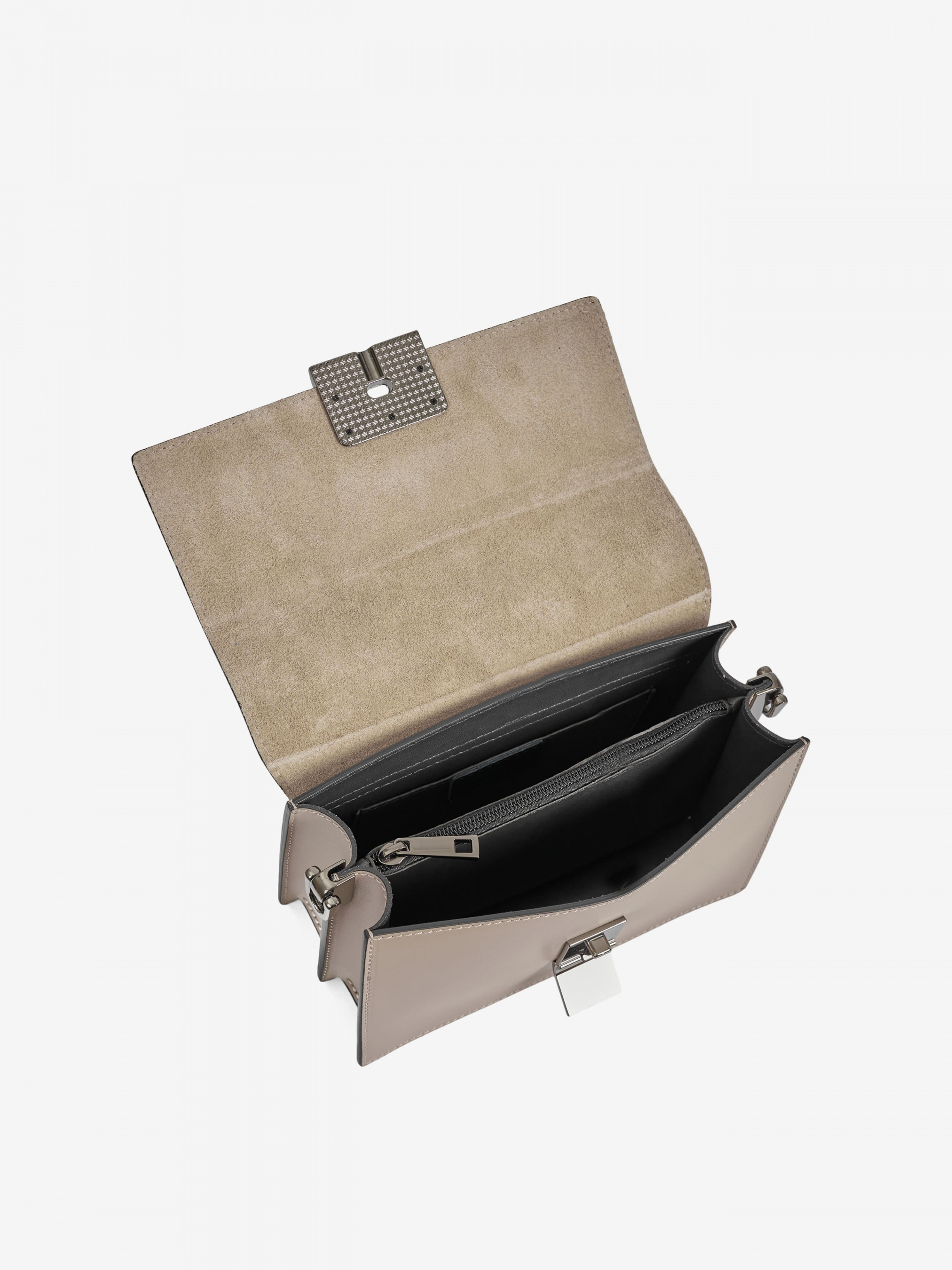 Детали: - Материал: 100% натуральная кожа - Кожа имеет гладкую фактуру - Фурнитура черного цвета - Размеры (Ш x В x Г) - 21 x 15 x 8 см - Внутри 2 отделения разделены карманом на молнии - Застежка: молния и клапан на клипсе - В комплекте ремешок для ношения на плече