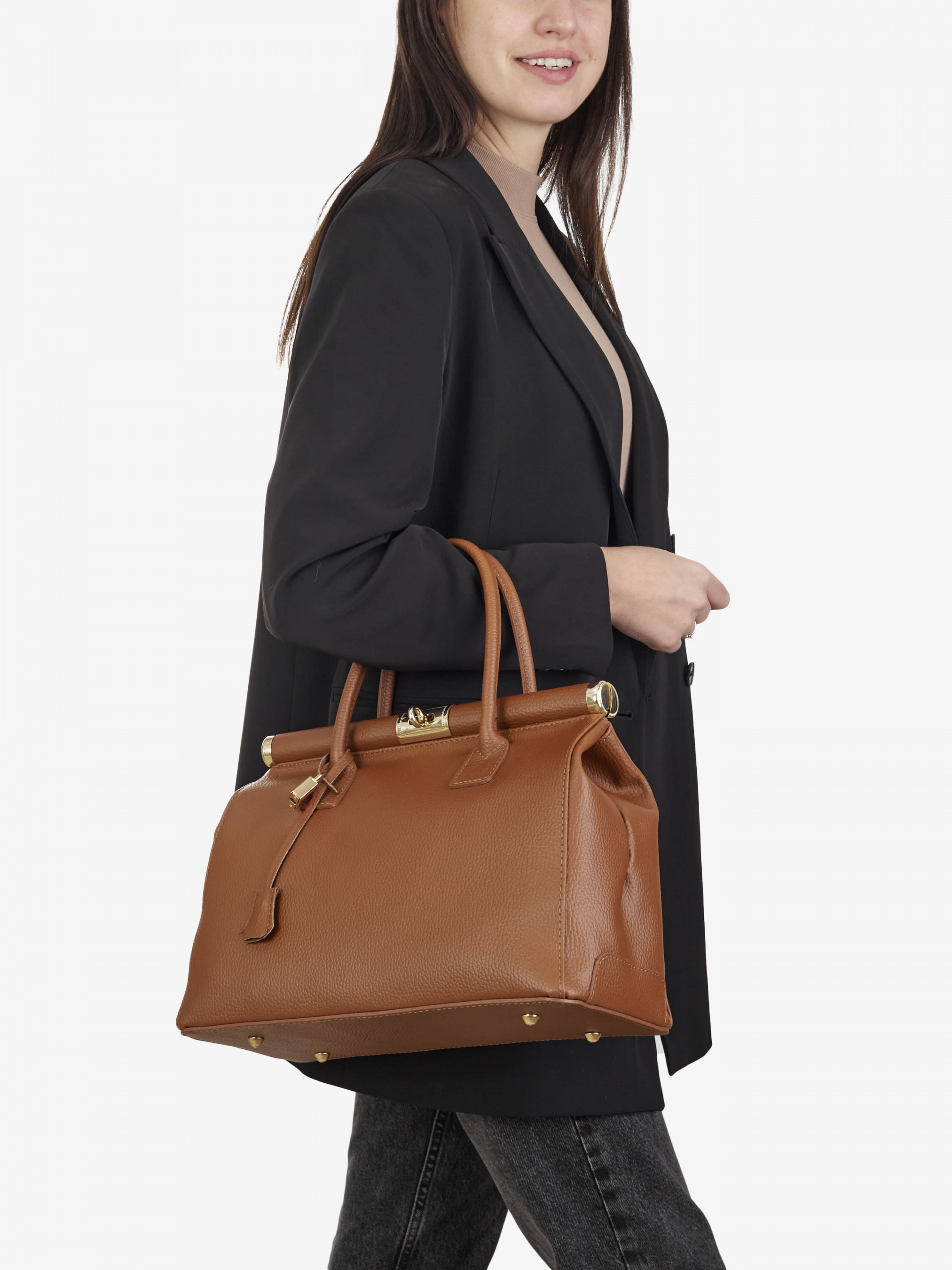 Детали: Материал: 100% натуральная кожа Кожа имеет фактуру флотар Фурнитура золотистого цвета Размеры (Ш x В x Г) - 35 x 24 x 15 см Внутри 2 отделения разделены карманом на молнии и карманчик для мелочей Подкладка: 100% хлопок Застежка: поворотный замок Высота ручек 10 см В комплекте ремешок для ношения на плече (съемный на карабинах не регулируется, максимальная длина 100 см)