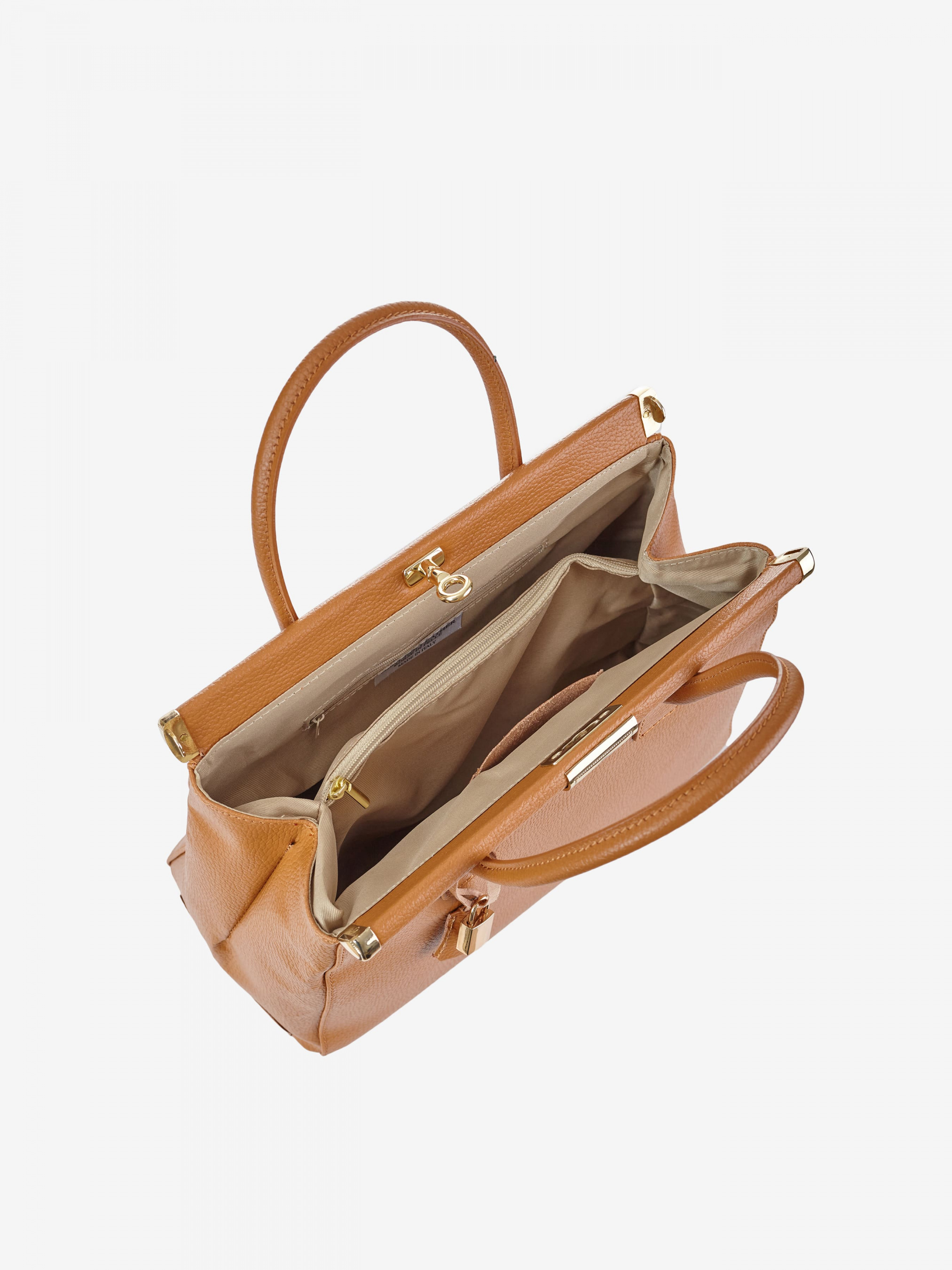 Детали: Материал: 100% натуральная кожа Кожа имеет фактуру флотар Фурнитура золотистого цвета Размеры (Ш x В x Г) - 35 x 24 x 15 см Внутри 2 отделения разделены карманом на молнии и карманчик для мелочей Подкладка: 100% хлопок Застежка: поворотный замок Высота ручек 10 см В комплекте ремешок для ношения на плече (съемный на карабинах не регулируется, максимальная длина 100 см)