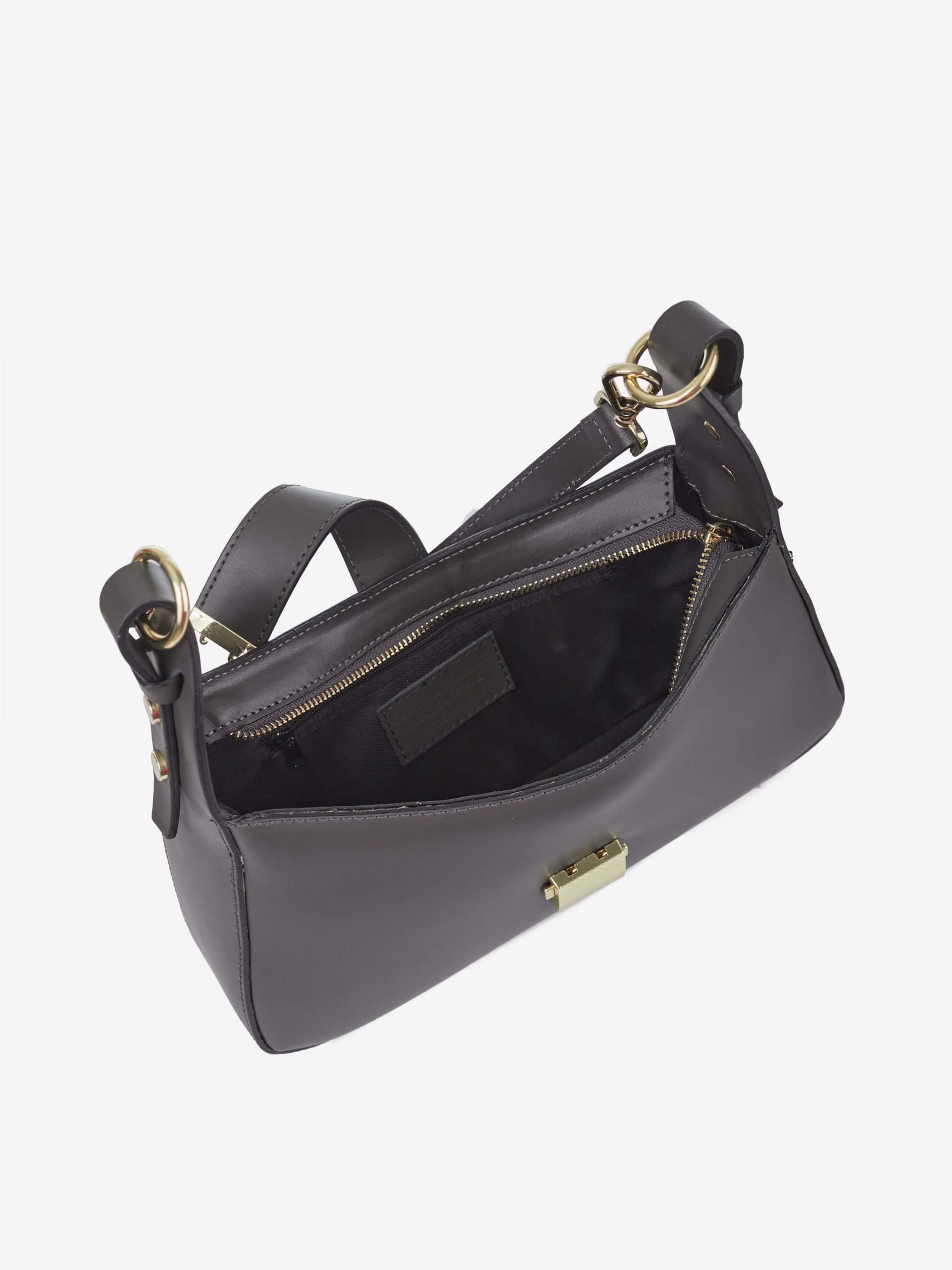 Детали: Материал: 100% натуральная кожа Кожа гладкая Фурнитура золотистого цвета Размеры (Ш x В x Г) - 29 x 16 x 7 см Внутри 1 отделение и 1 карманчик для мелочей на молнии Подкладка: 100% хлопок Застежка: молния, хлястик на механическом замке Ремешок текстильный регулируется, съемный, на карабинах, максимальная длинна 125 см Высота ручки 30 см, съемная на карабинах