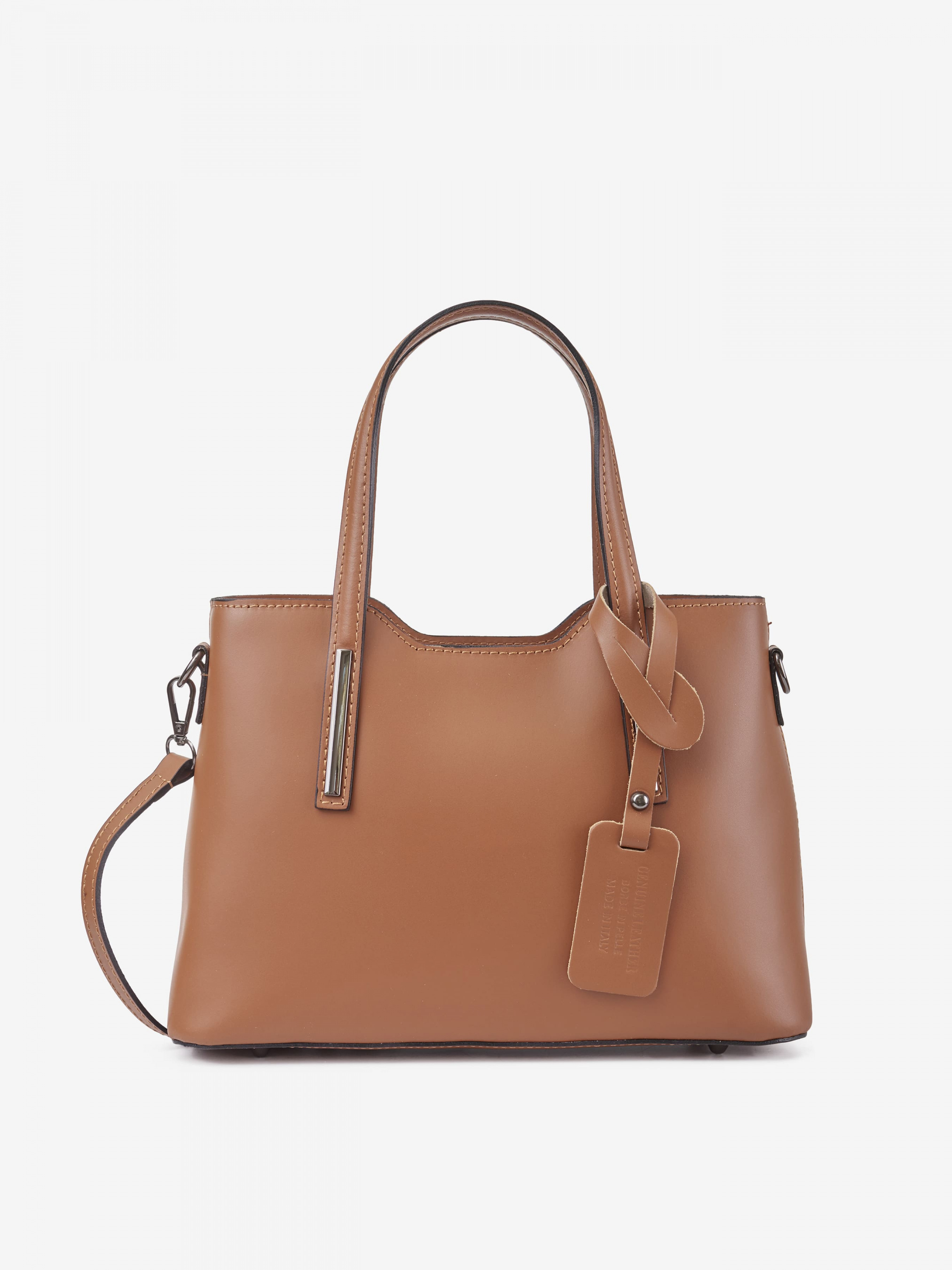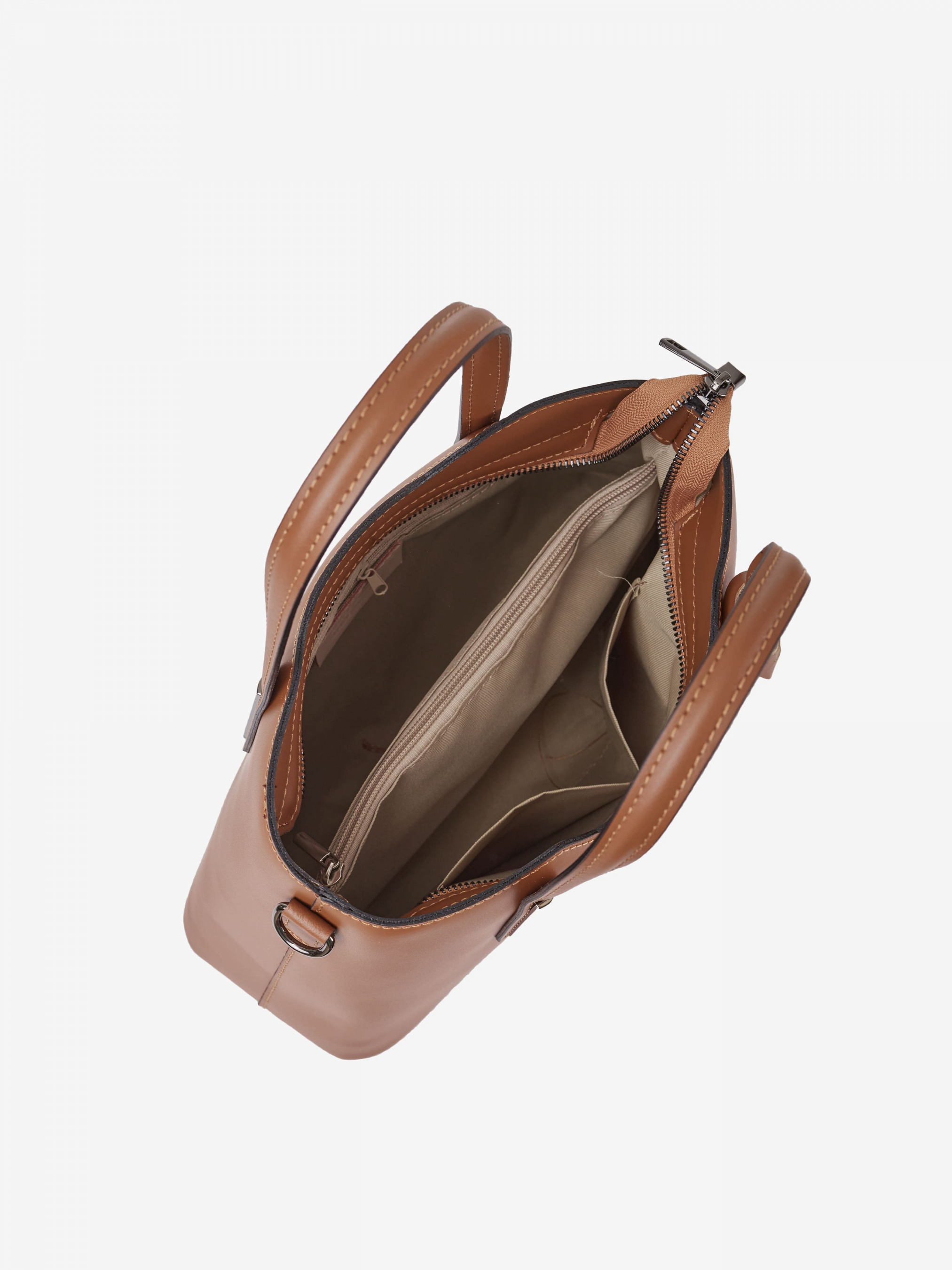 Детали: Материал: 100% натуральная кожа Кожа имеет гладкую фактуру Фурнитура черного цвета Размеры (Ш x В x Г) - 30 х 22 х 12 см Внутри 2 отделения разделены карманом на молнии и 3 карманчика для мелочей, один из них на молнии Застежка: молния Подкладка: 100% хлопок Ремешок кожаный, нерегулируется, съемный, максимальная длина 95 см. Высота ручек 17 см